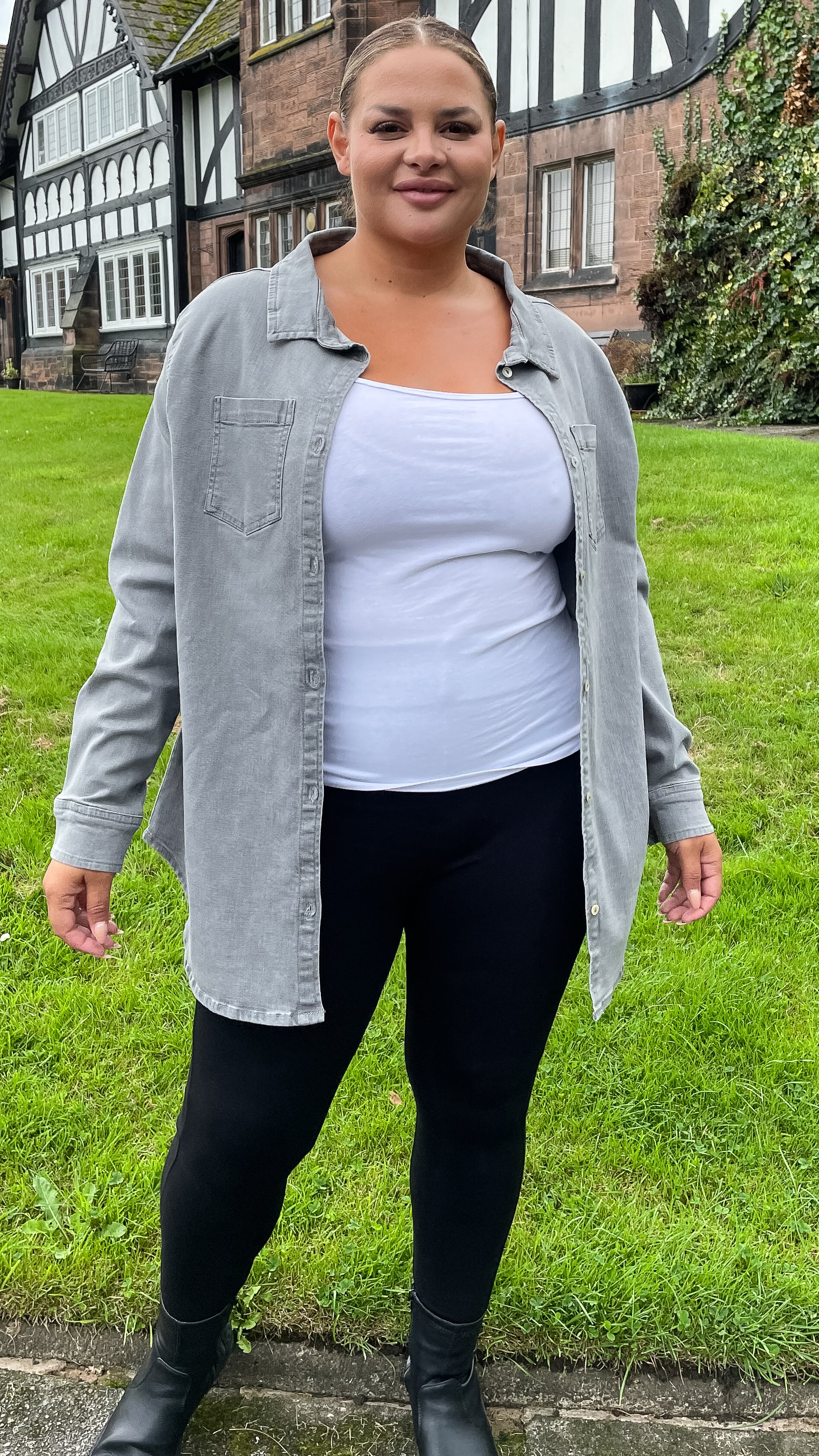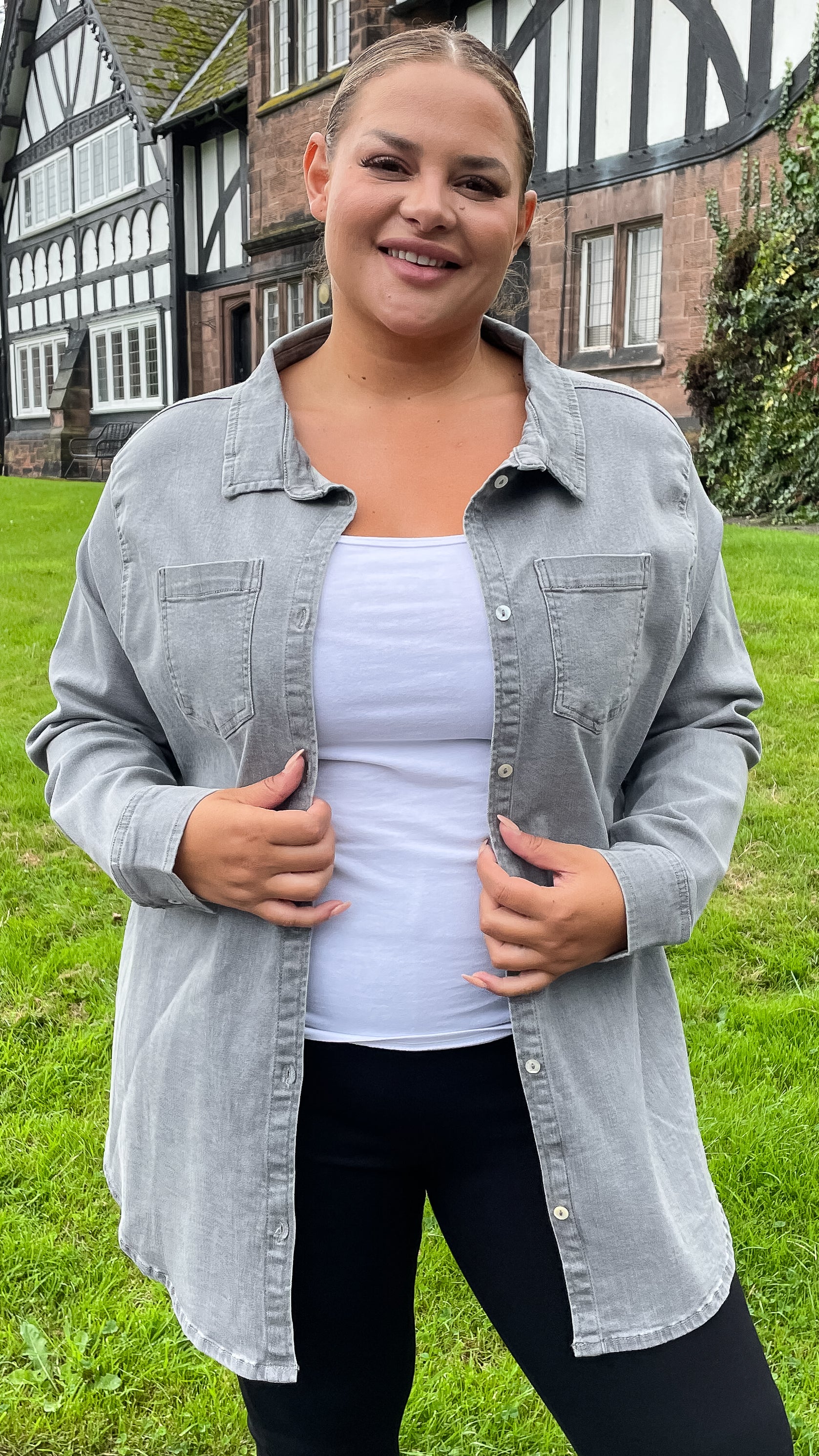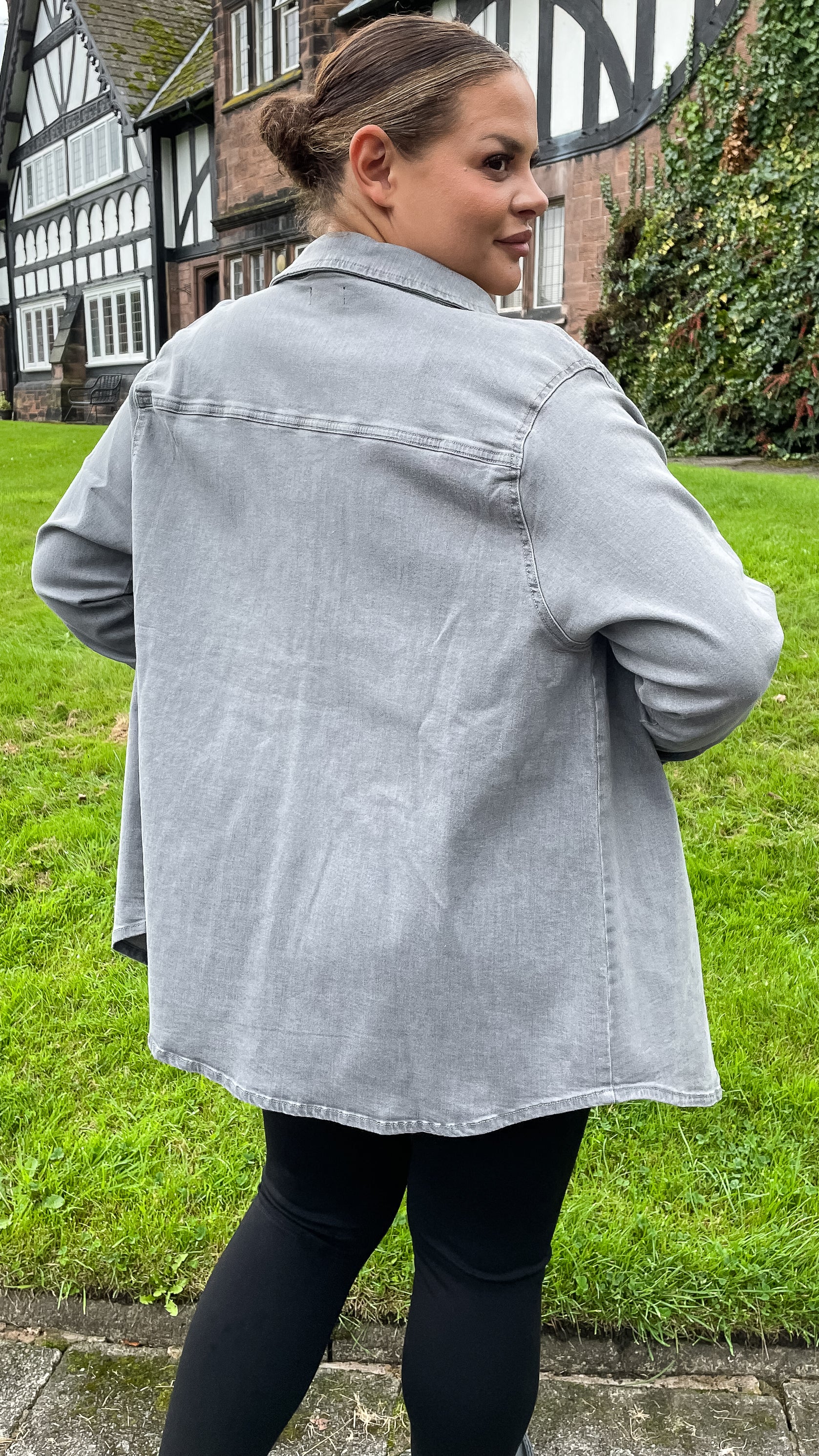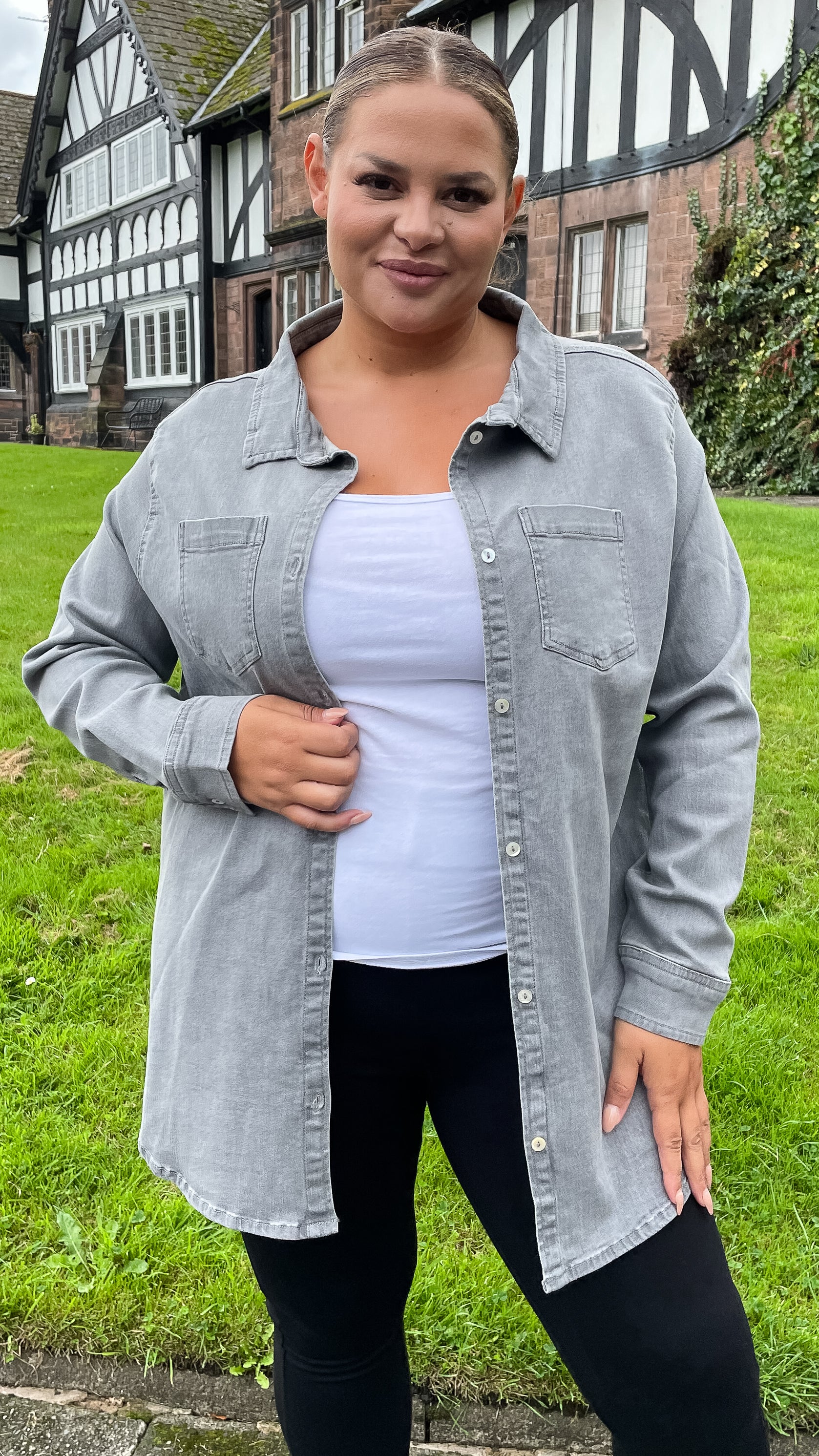 CurveWow Denim Oversized Shirt Charcoal Grey