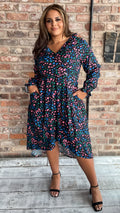 CurveWow Dip Hem Frill Neck Dress Multi Animal