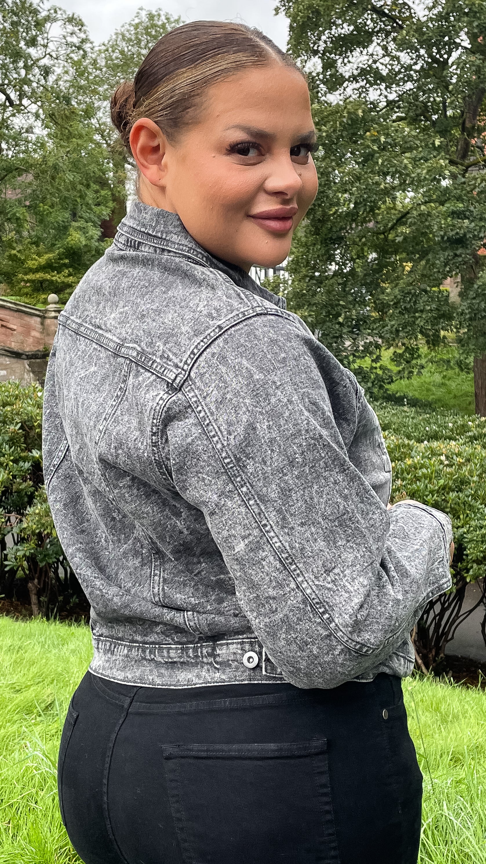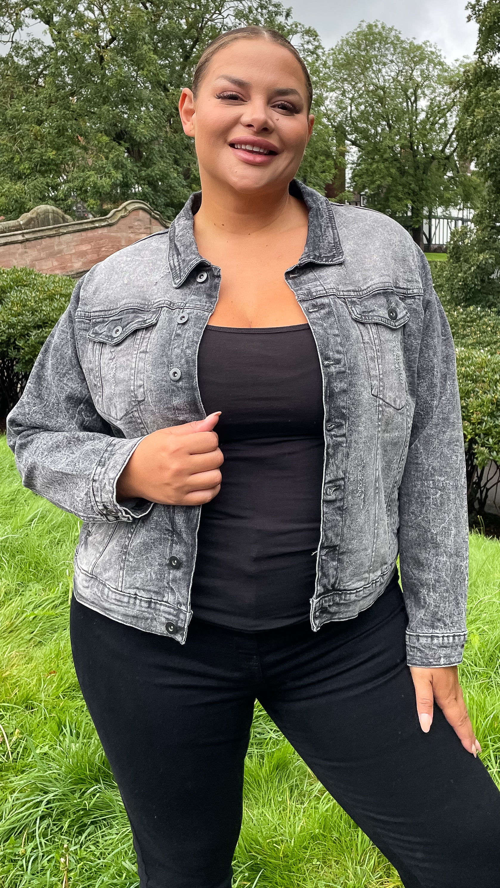 CurveWow Distressed Denim Jacket Grey Acid Wash
