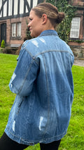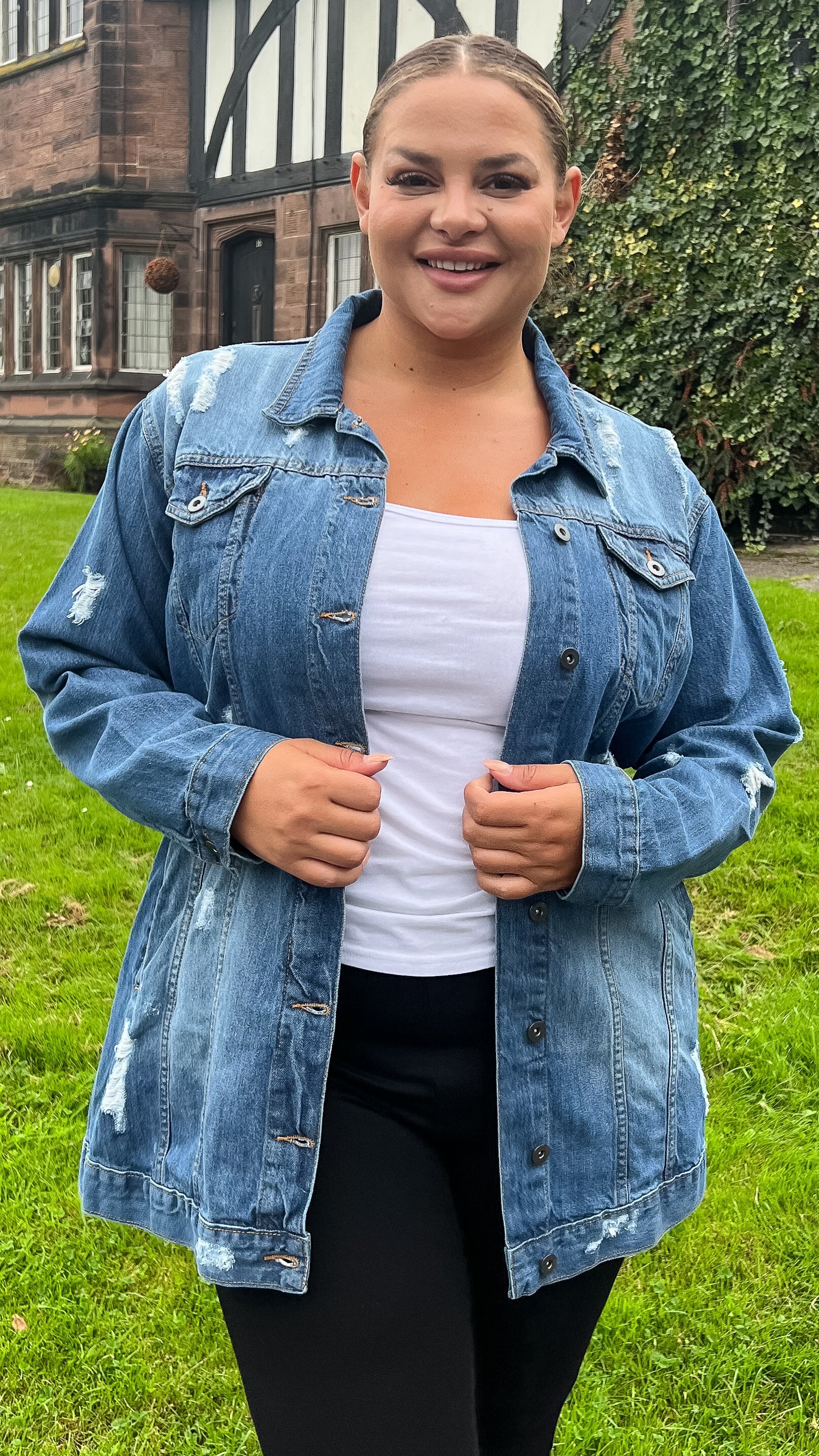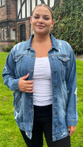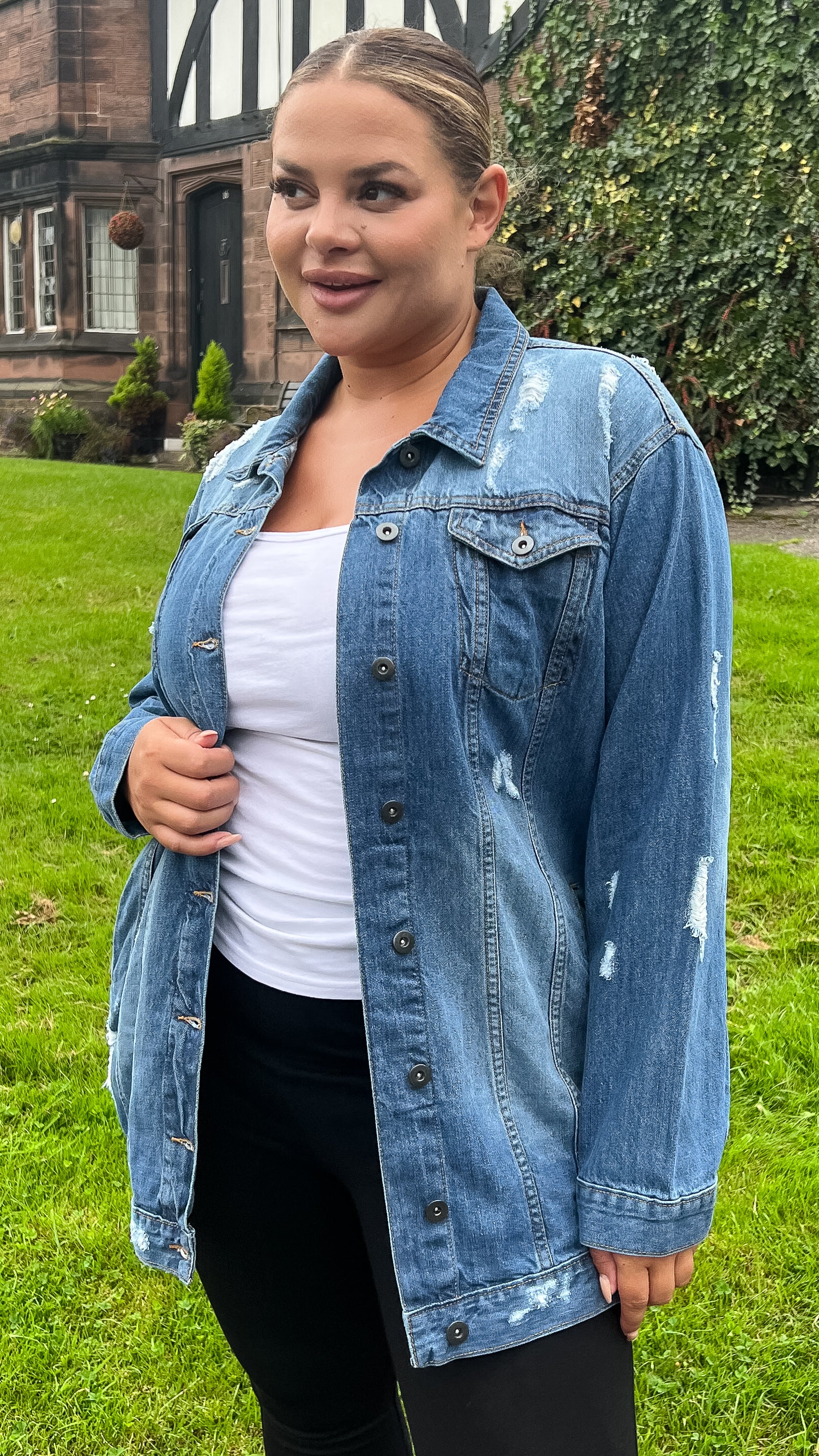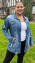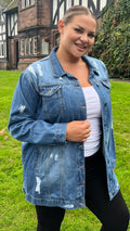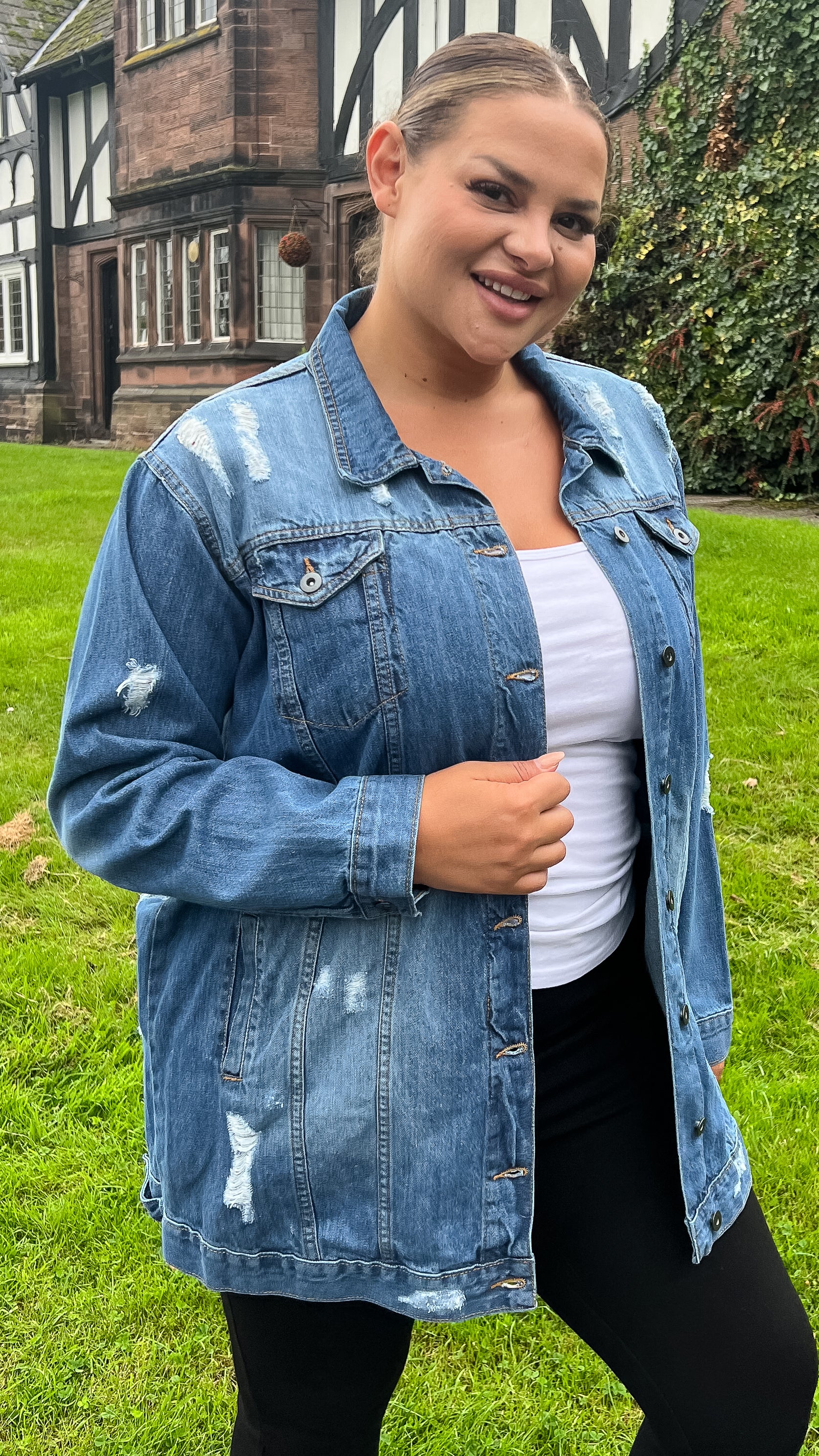 CurveWow Distressed Oversized Denim Jacket Mid Blue Wash