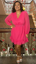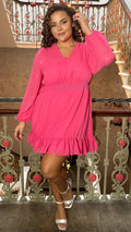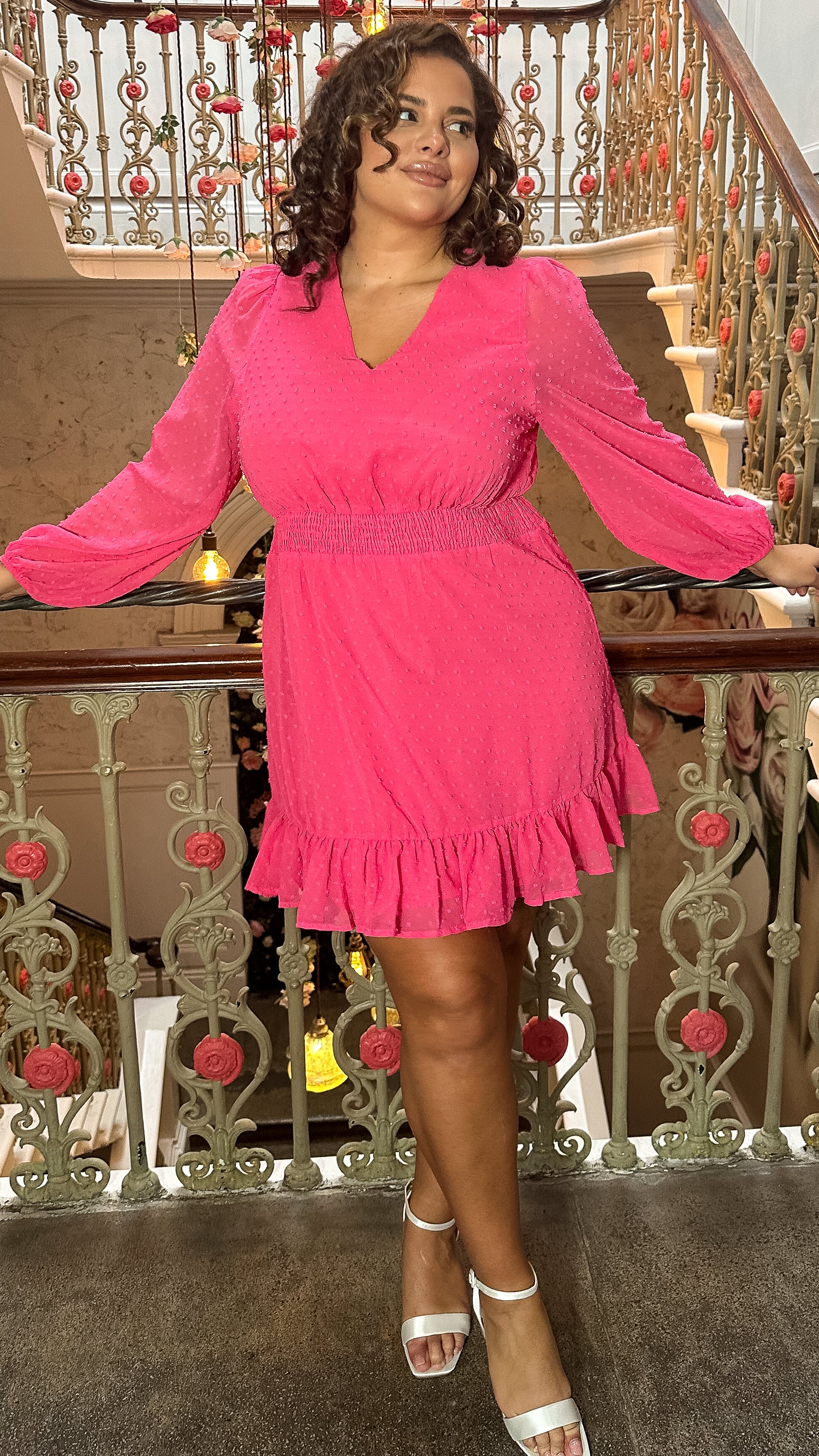 CurveWow Dobby Mesh Tiered Hem Skater Dress Pink