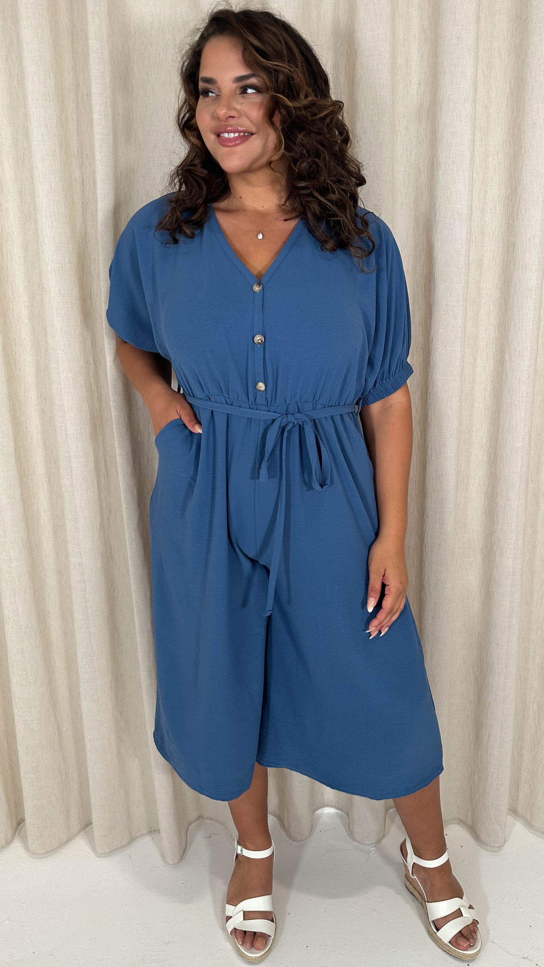 CurveWow Elasticated Cuff Culotte Jumpsuit Indigo