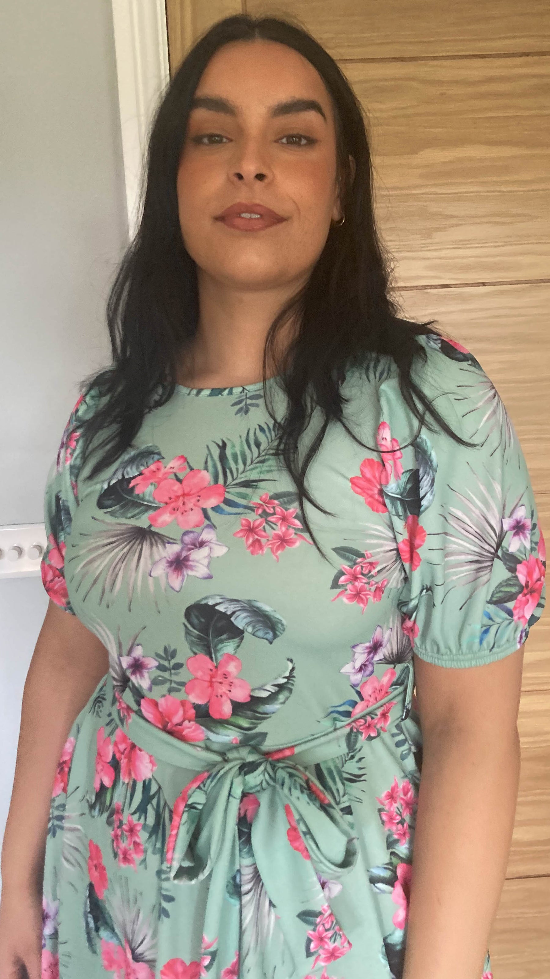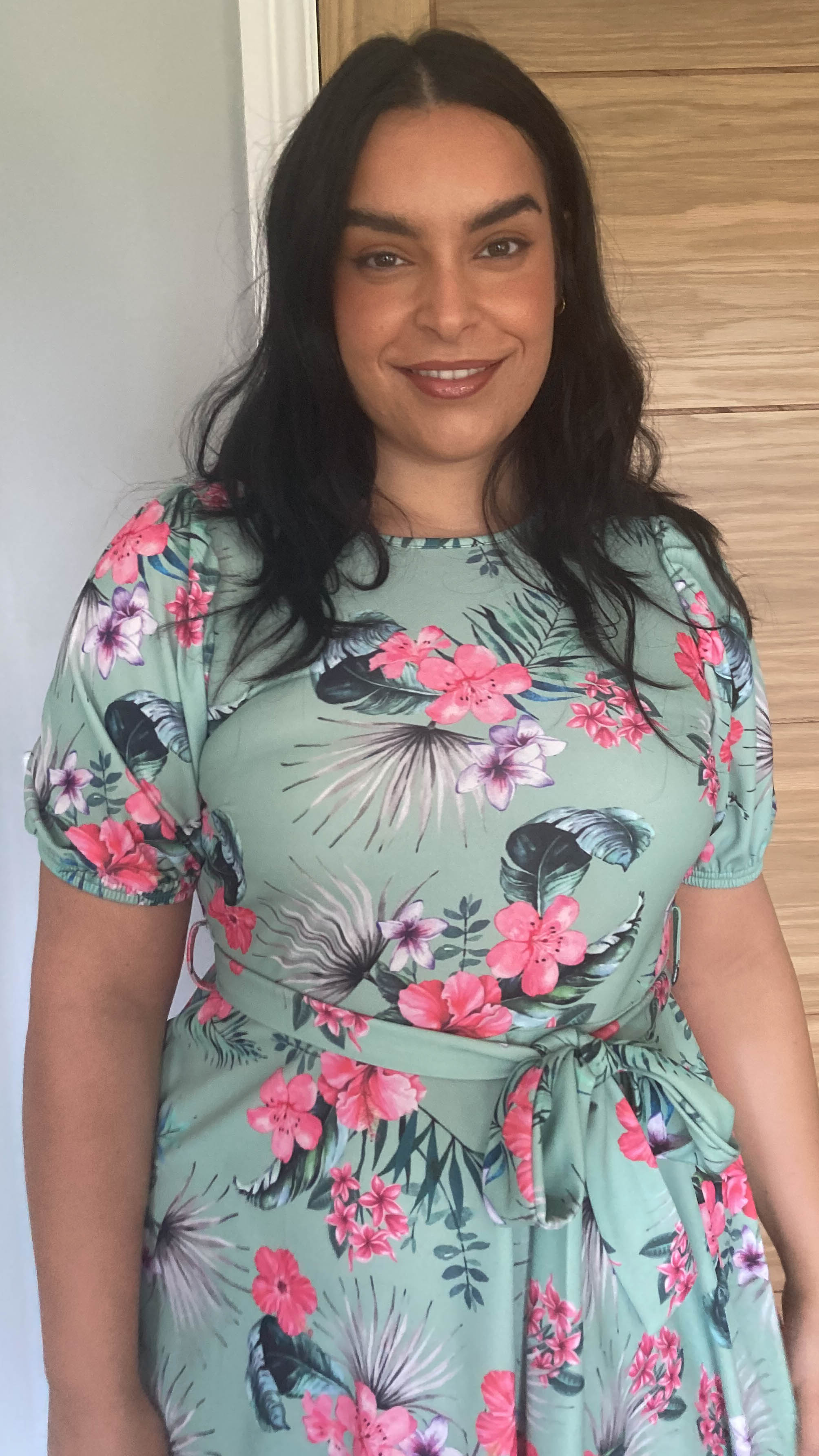 CurveWow V Neck Split Front Midaxi Dress Multi