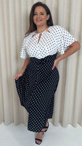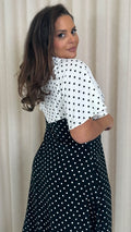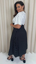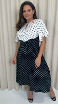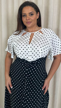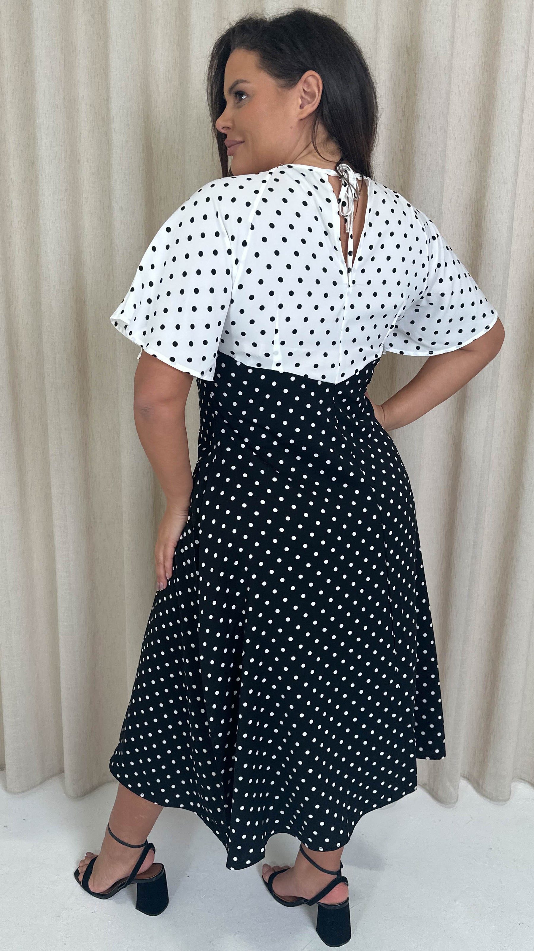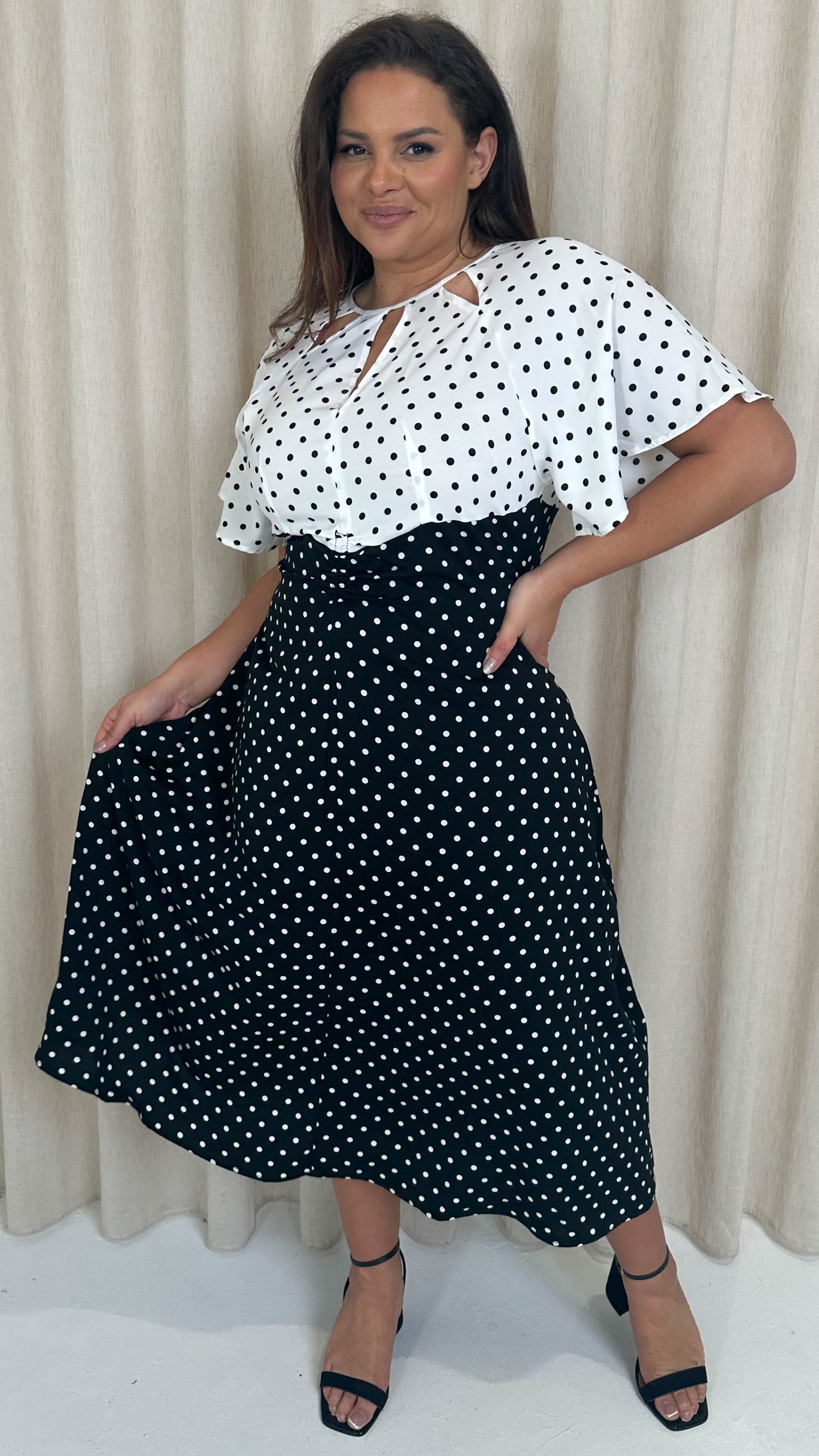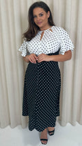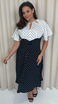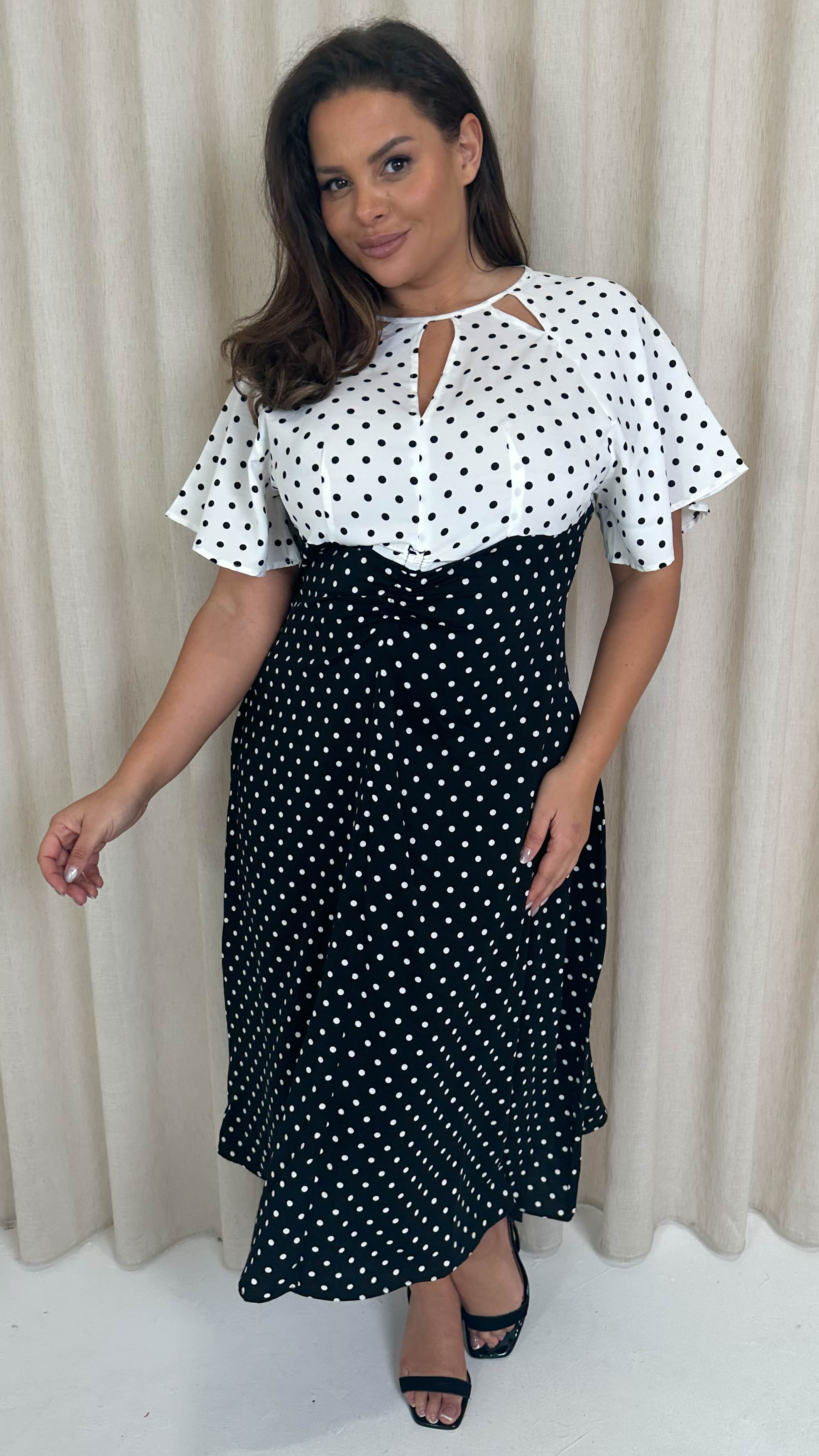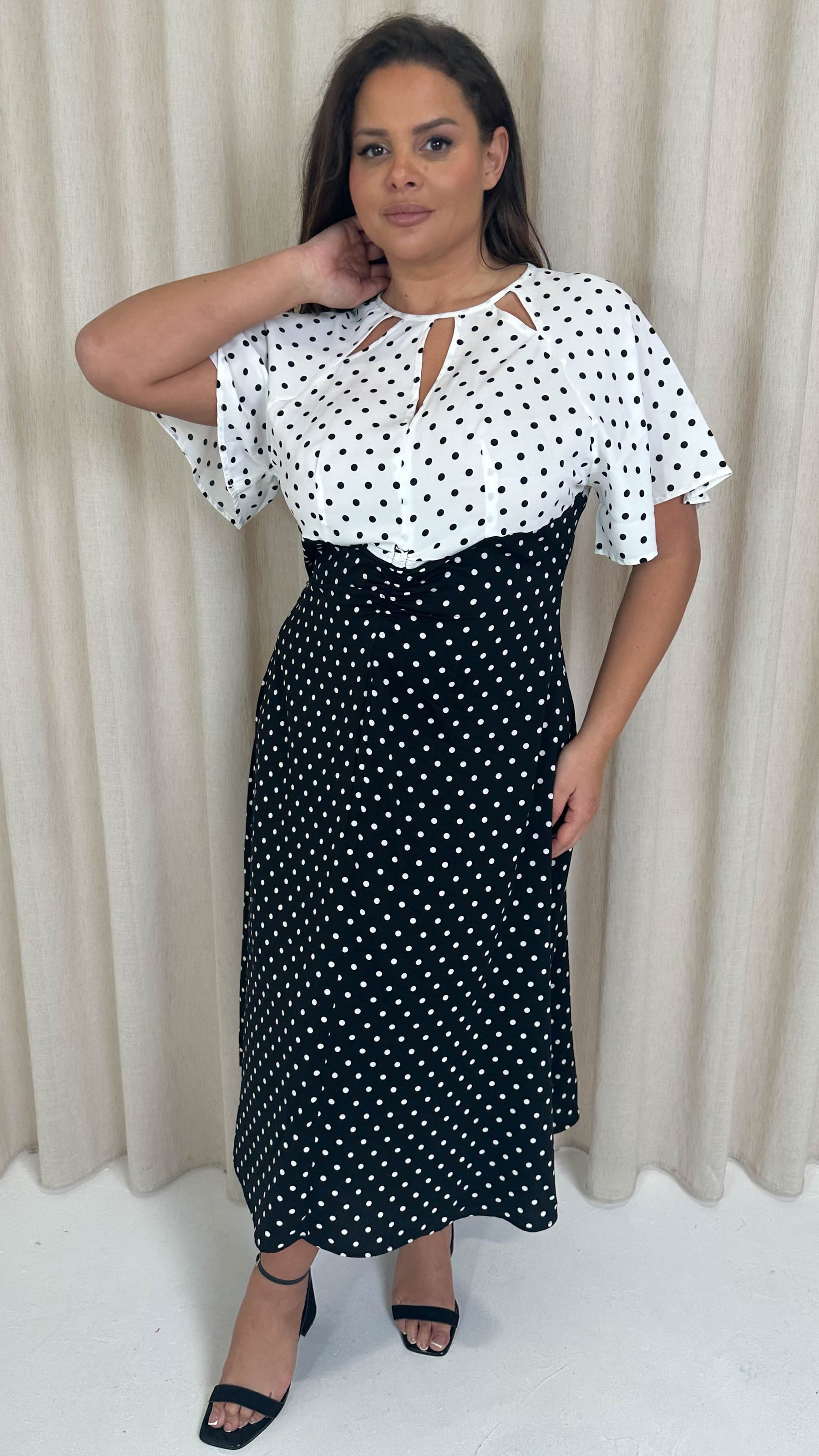 CurveWow Cut Out Midi Dress Black/White Polka Dots