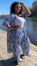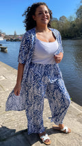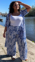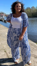 CurveWow Floral Printed Trousers Royal Blue