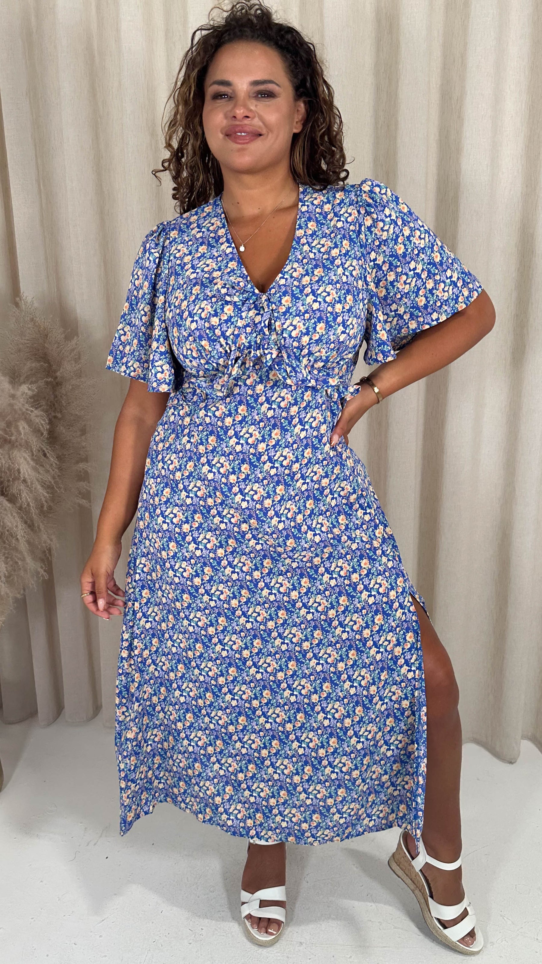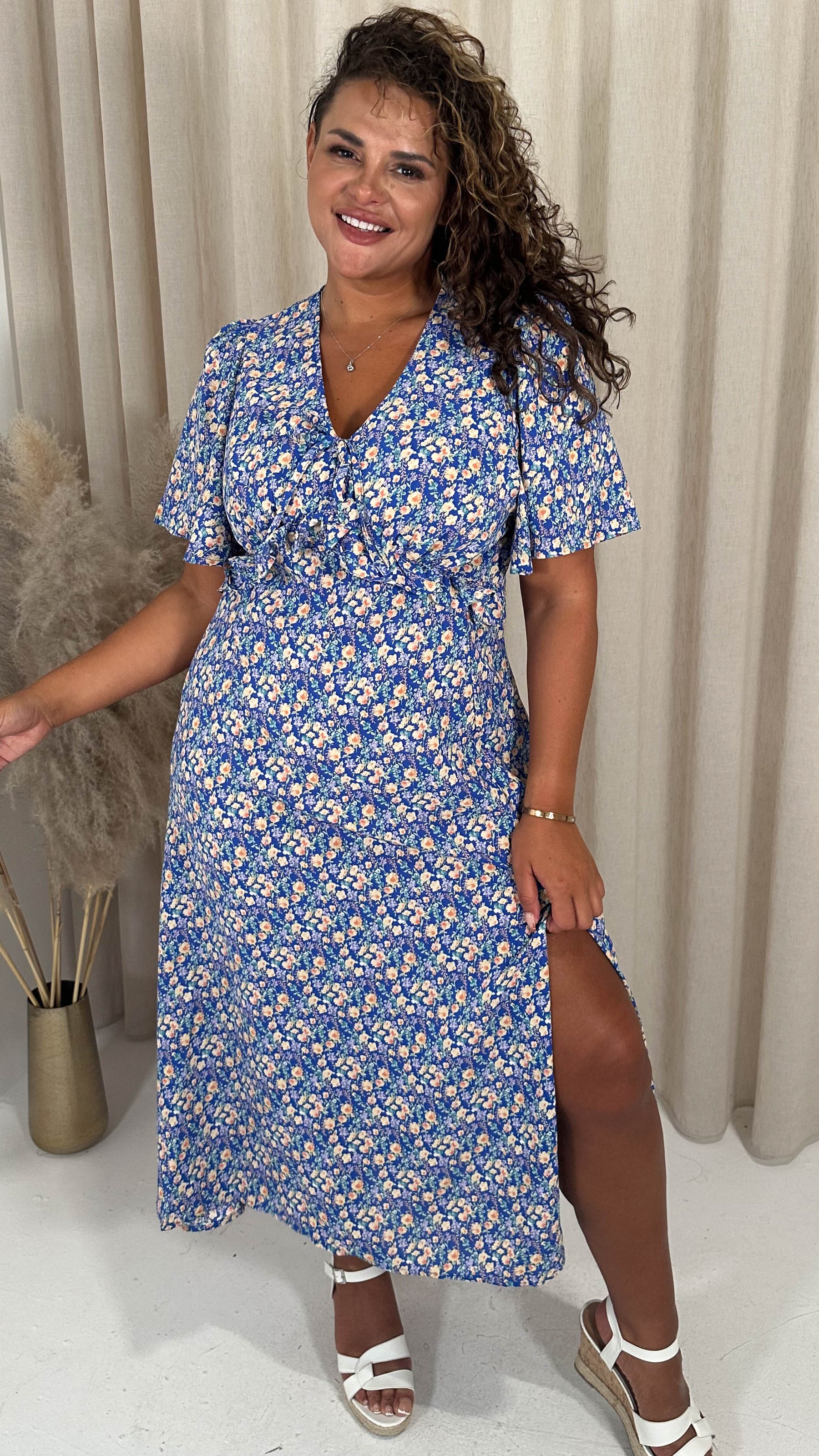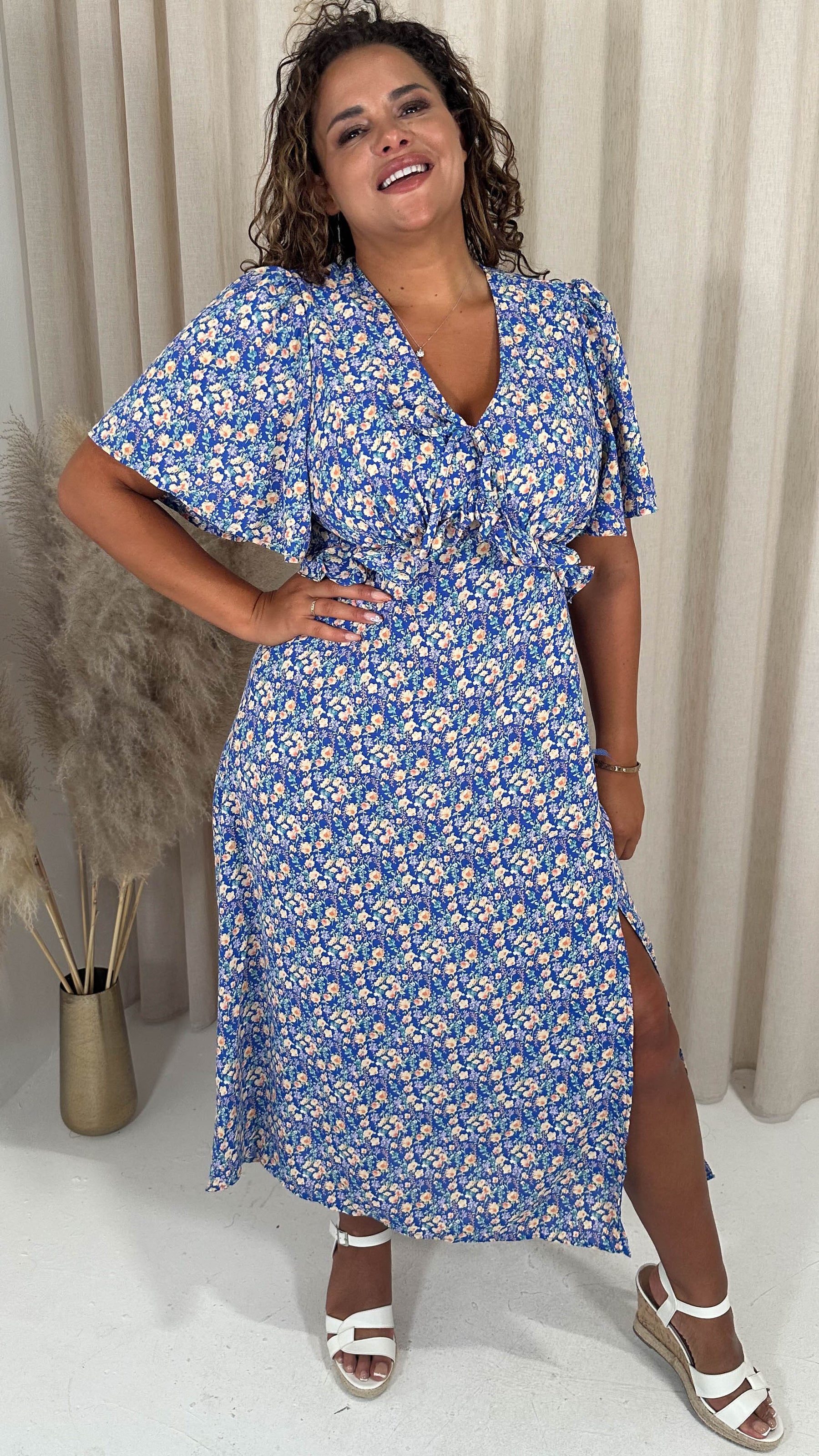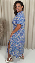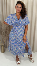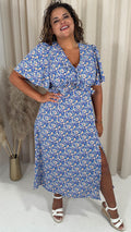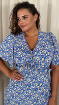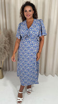 CurveWow Frill Bust Vneck Tea Dress Blue Floral