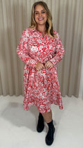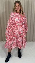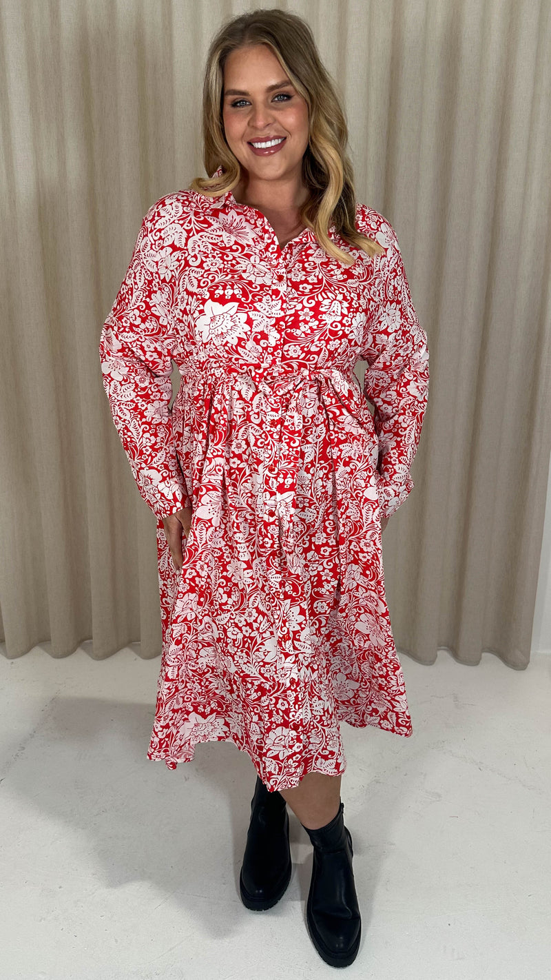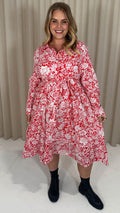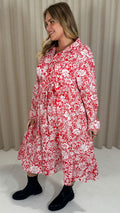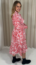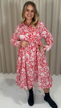 CurveWow Frill Hem Tie Waist Shirt Dress Red Floral