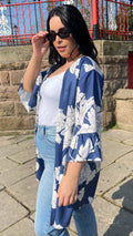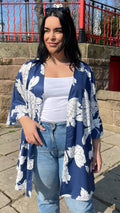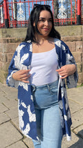 CurveWow Frill Sleeve Blue Floral Print Kimono