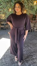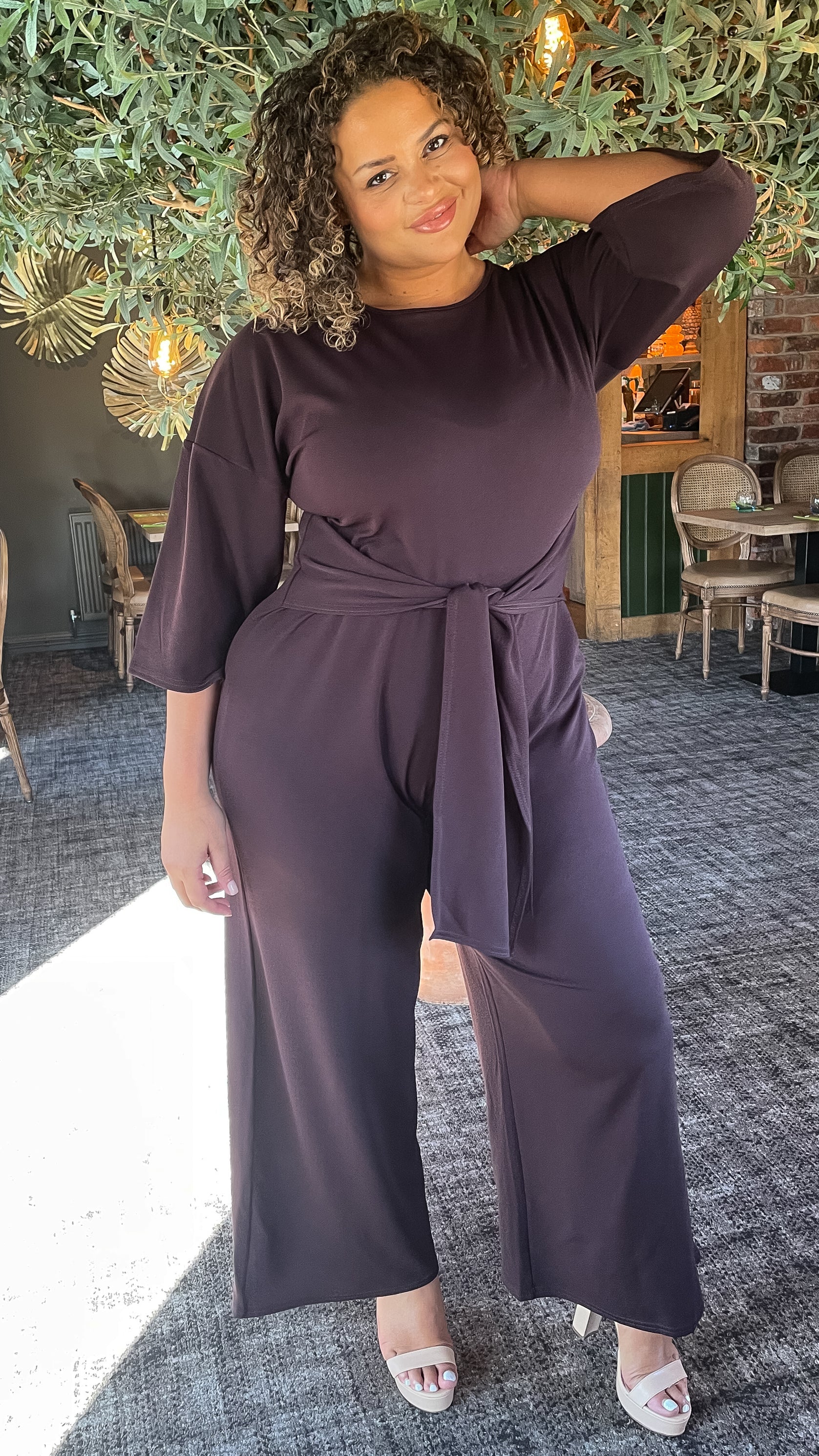 CurveWow Kimono Sleeve Jumpsuit Chocolate