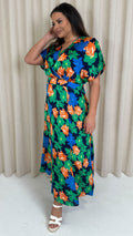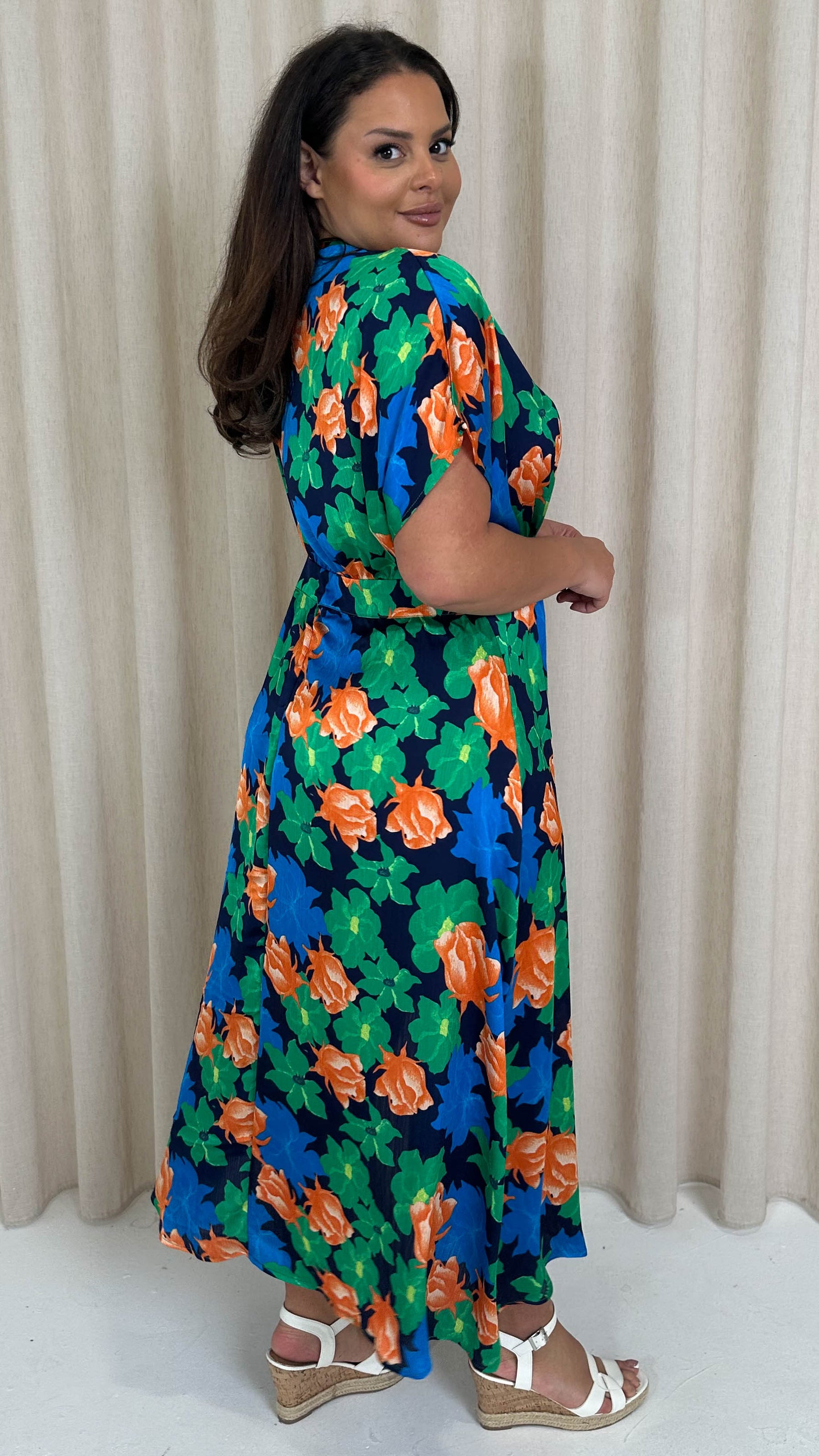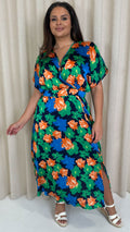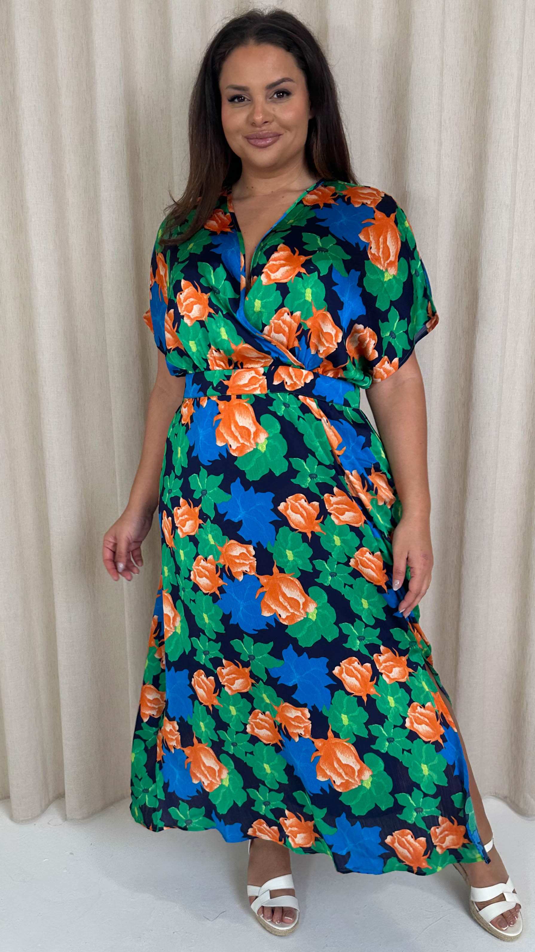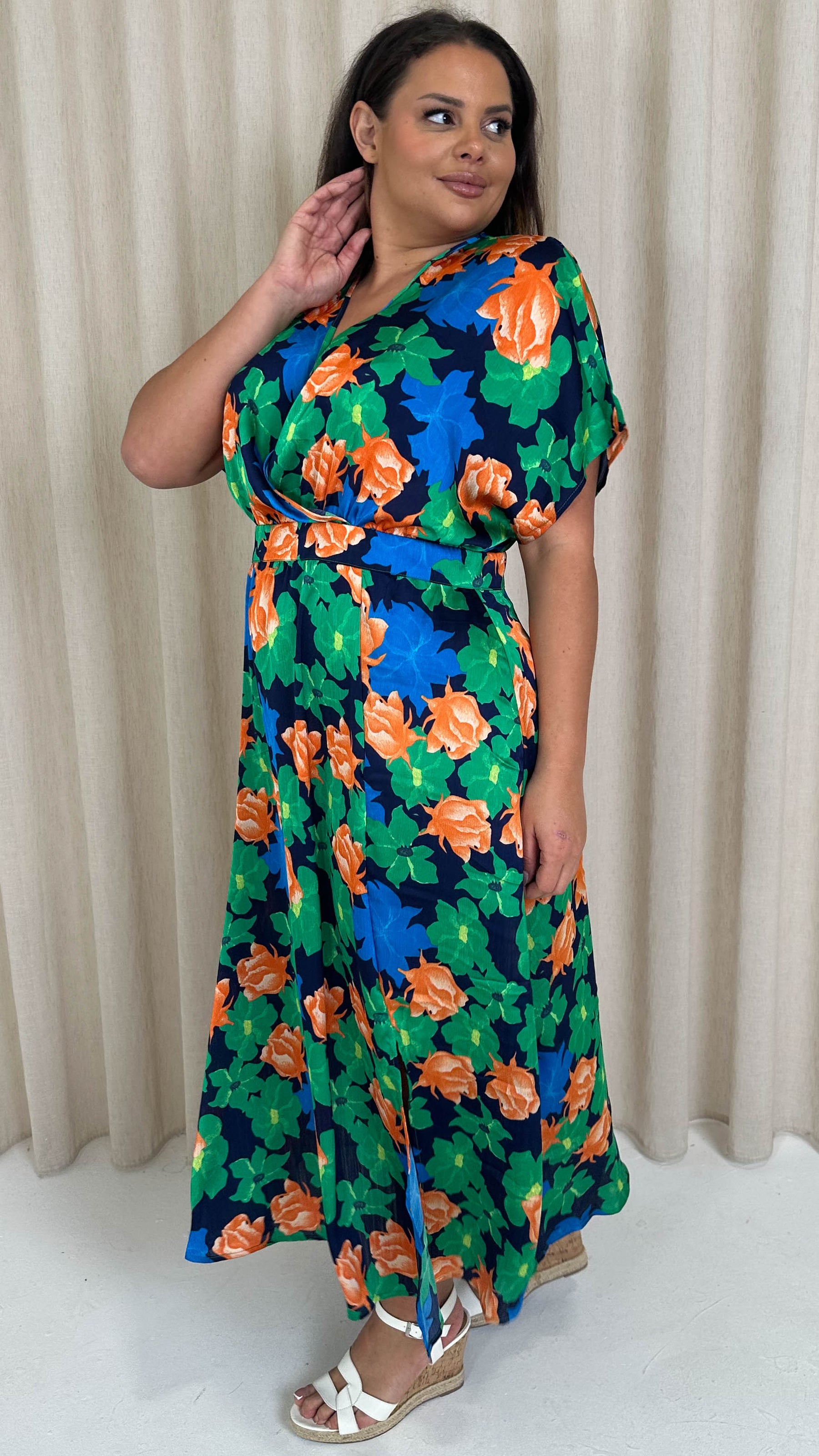 CurveWow Kimono Split Leg Maxi Dress Multi Floral