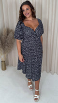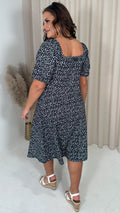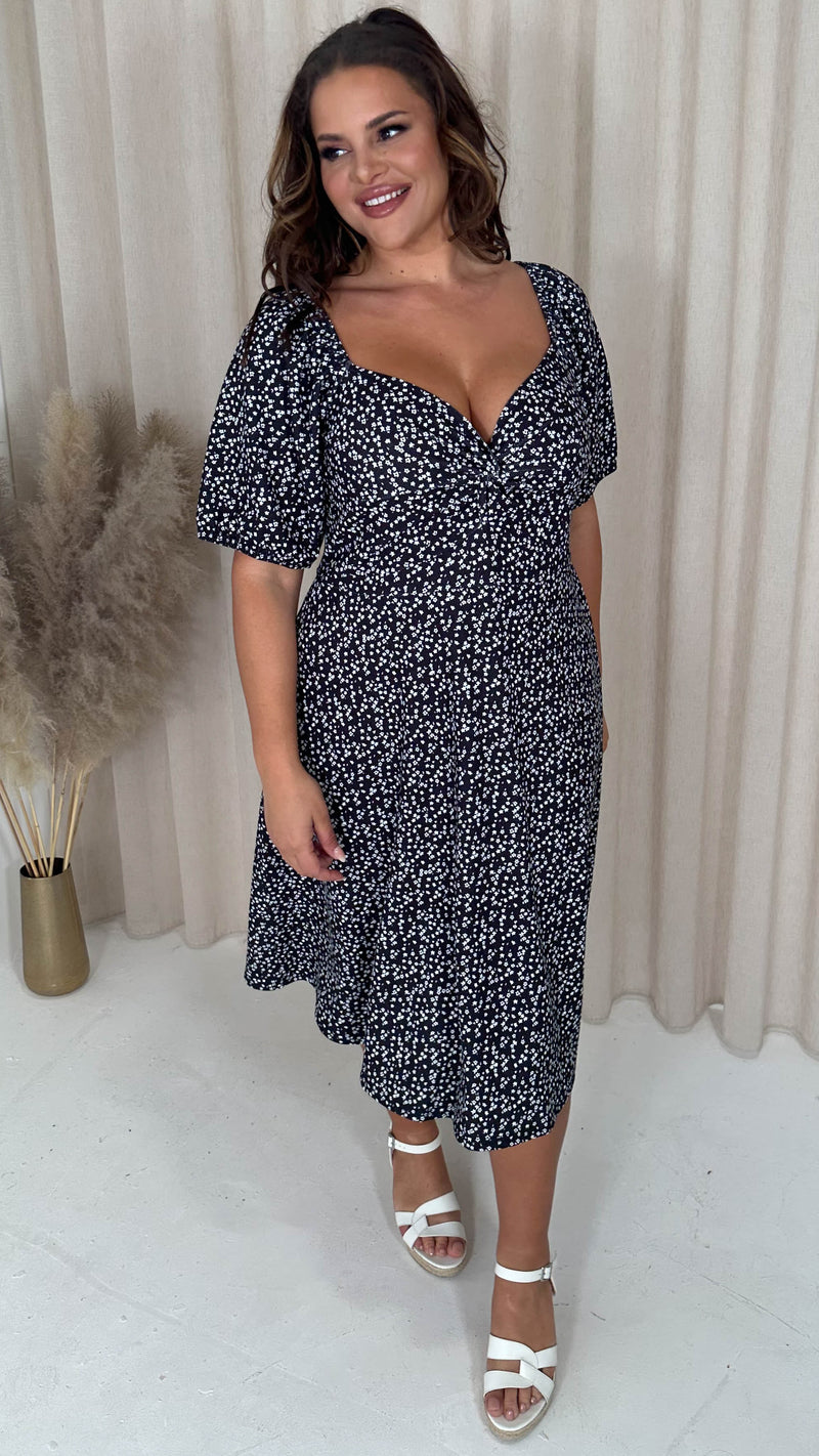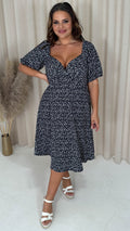 CurveWow Knot Front Milkmaid Skater Dress Mono Ditsy