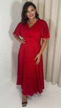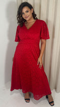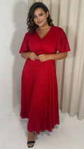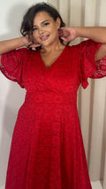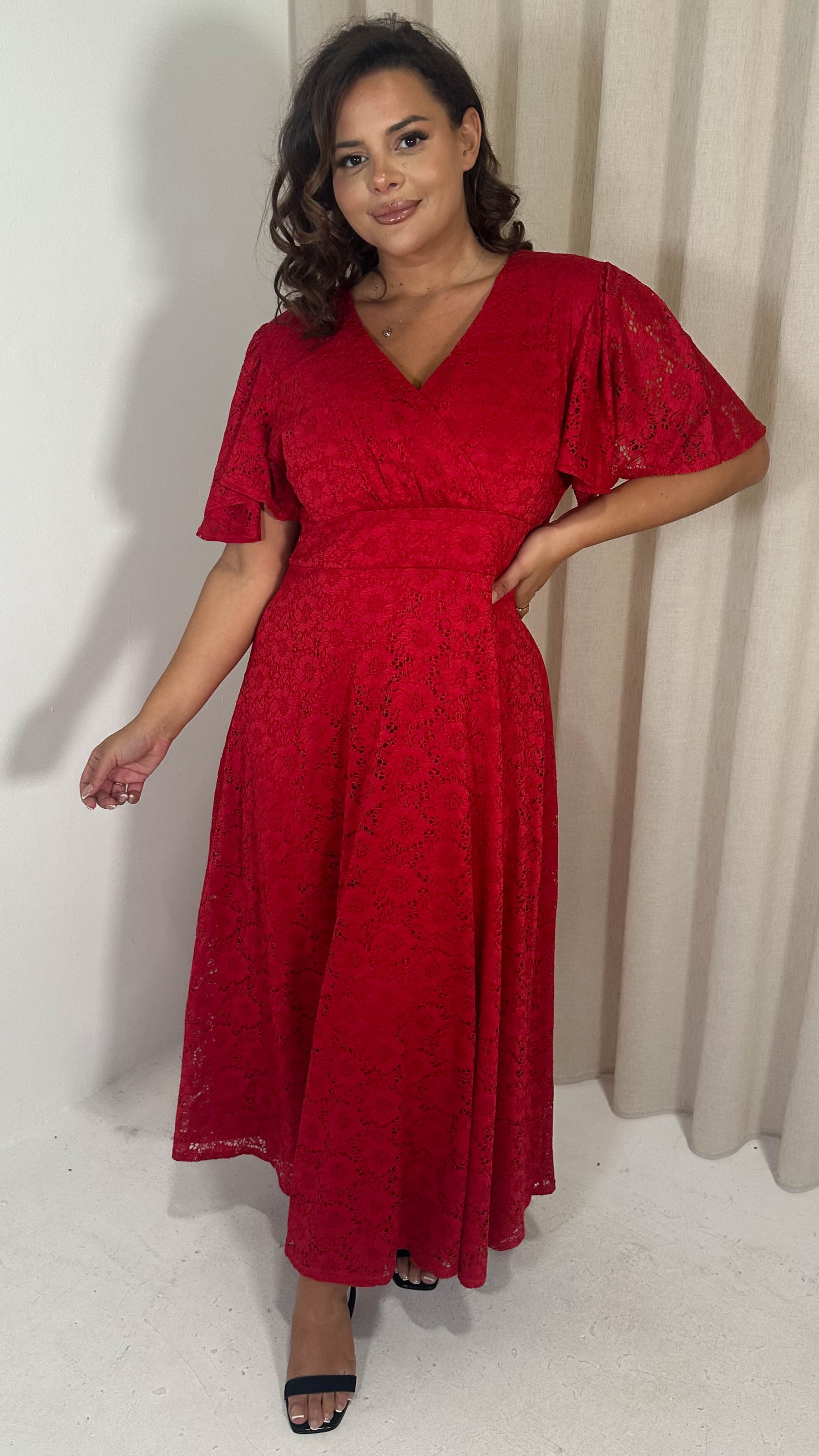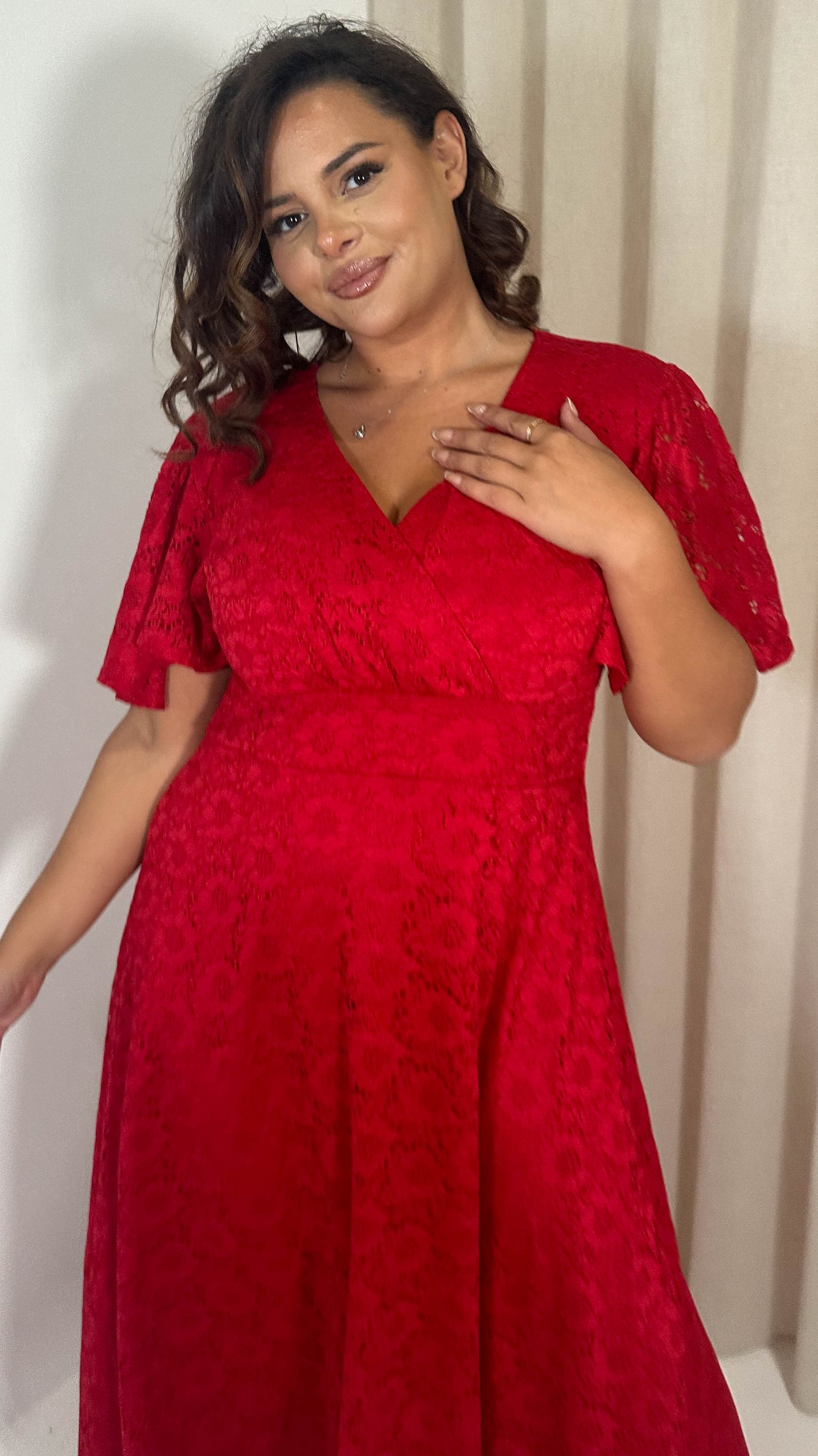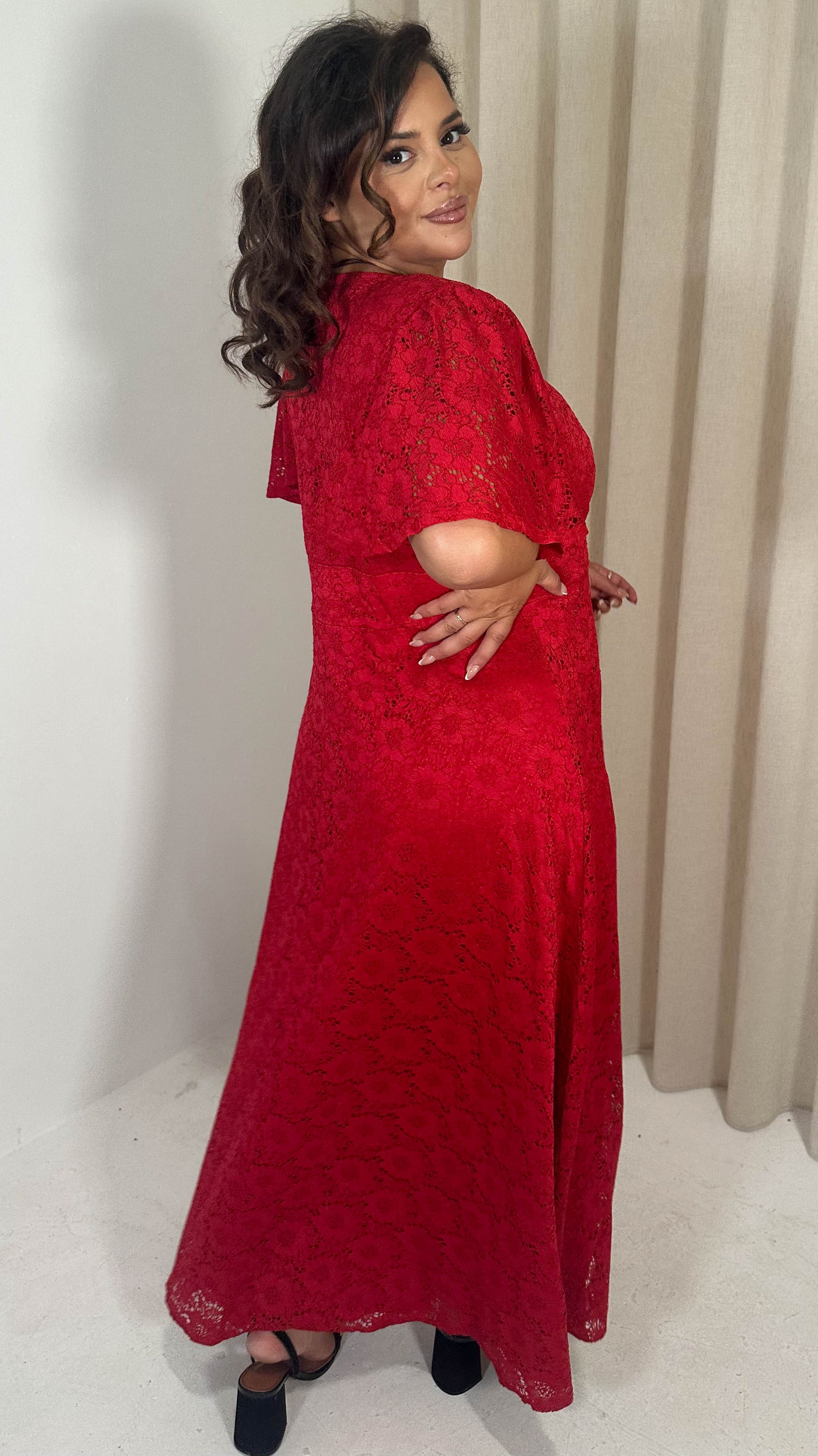 CurveWow Lace Angel Sleeve Maxi Dress Red