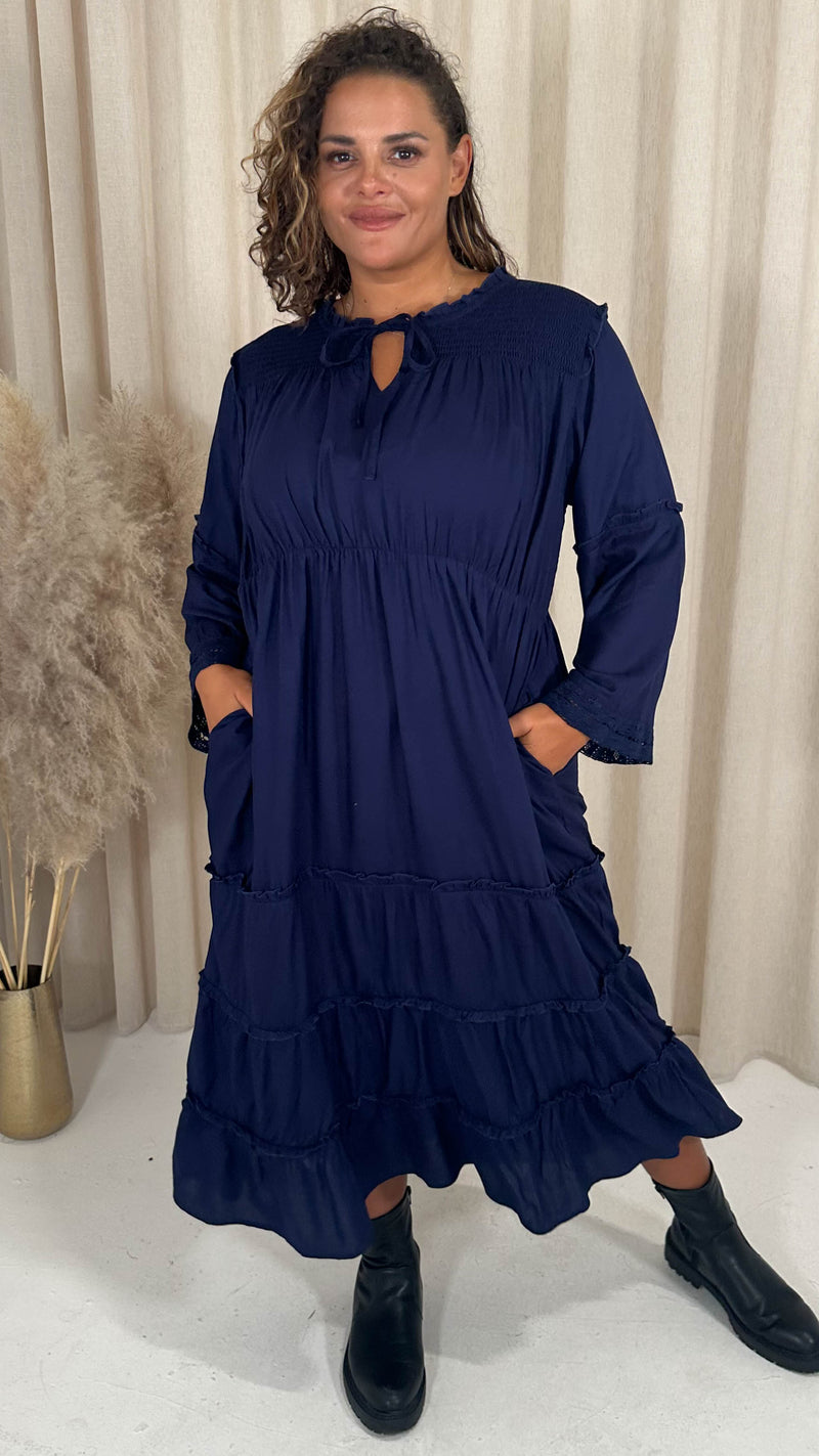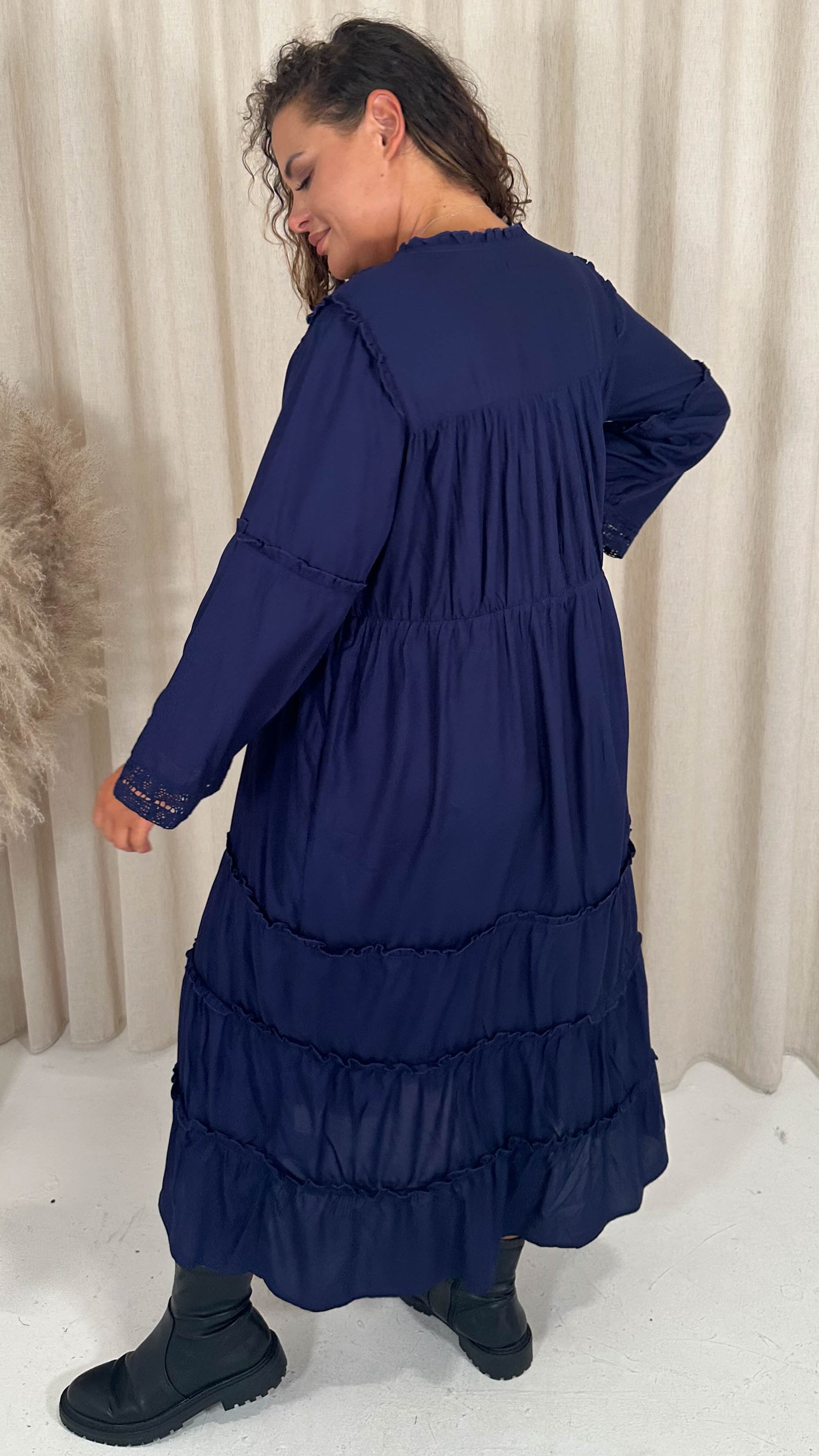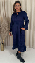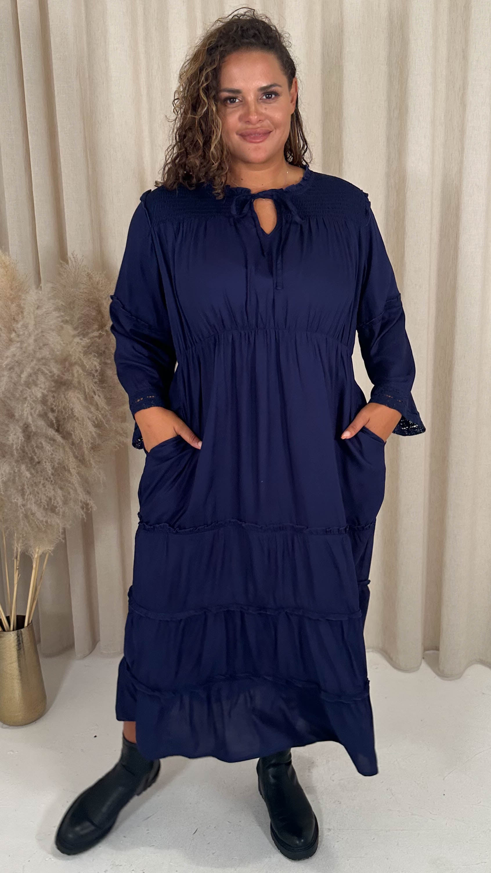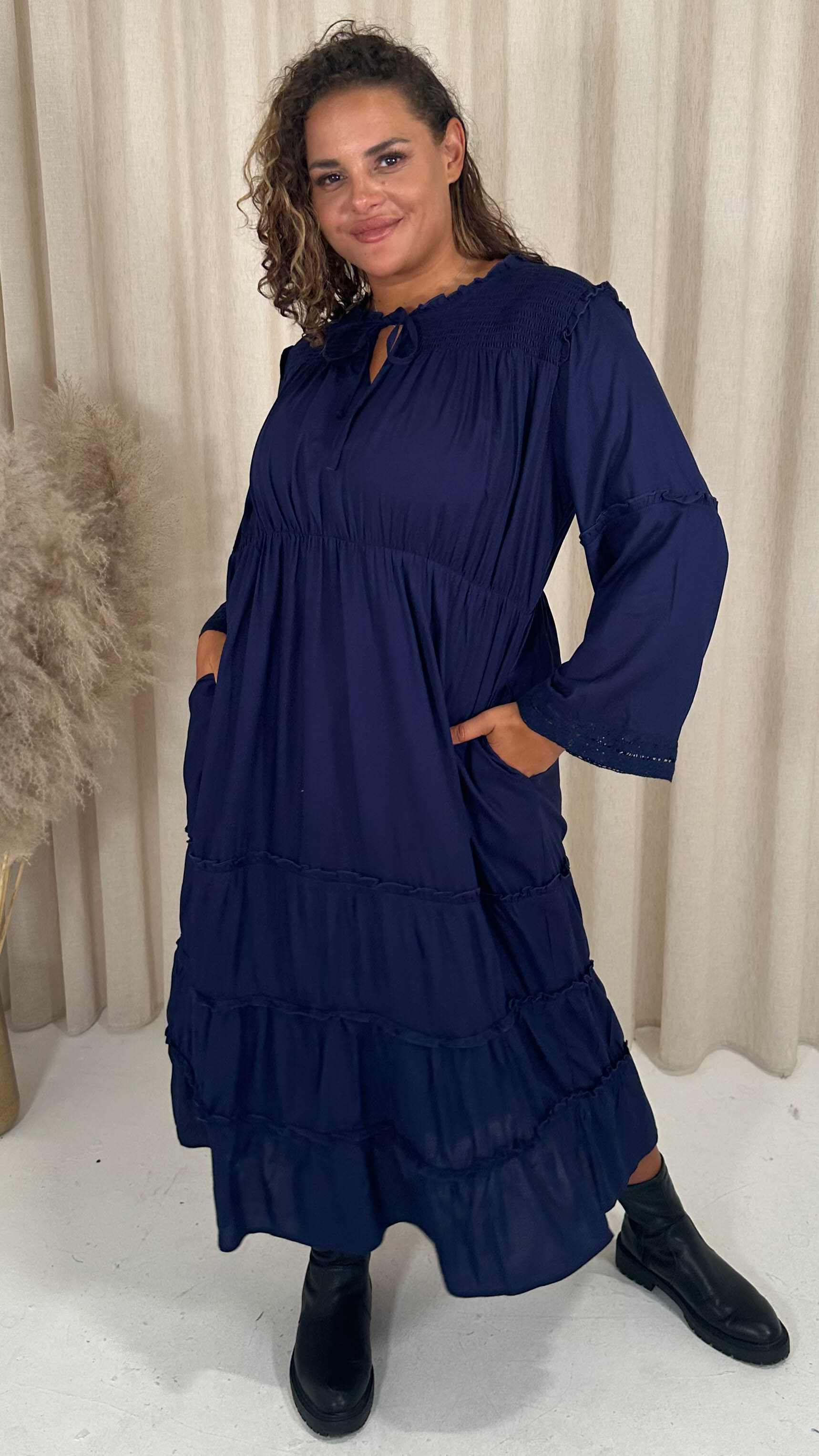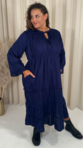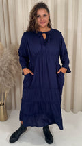 CurveWow Tie Front Tiered Maxi Dress Navy