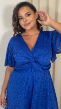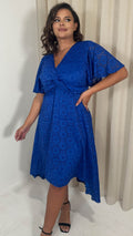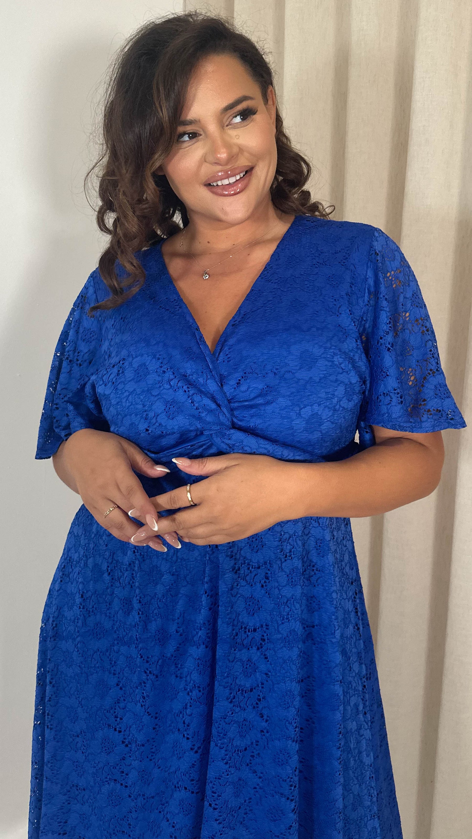 CurveWow Lace Dipped Hem Knot Front Dress Blue