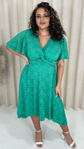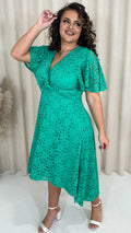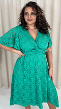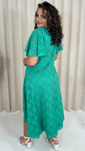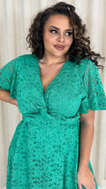 CurveWow Lace Dipped Hem Knot Front Dress Green