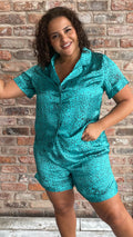 CurveWow Green Leopard Print Satin Pyjama Short Set