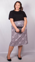 CurveWow Lilac Animal Print Midi Skirt
