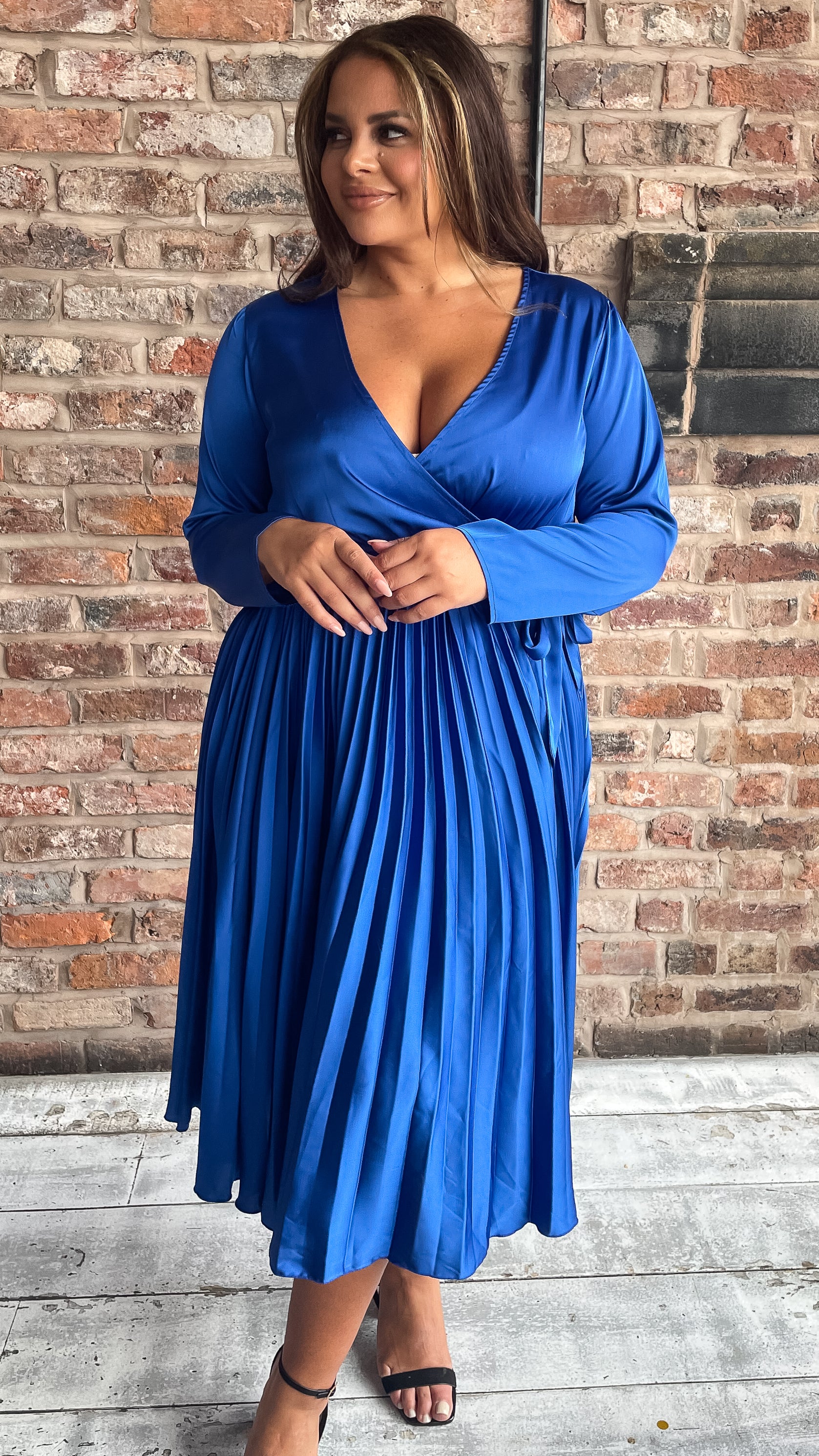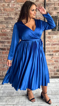 CurveWow Long Sleeve Pleated Wrap Dress Cobalt Blue
