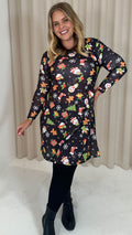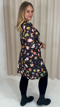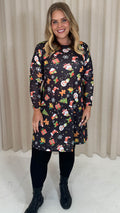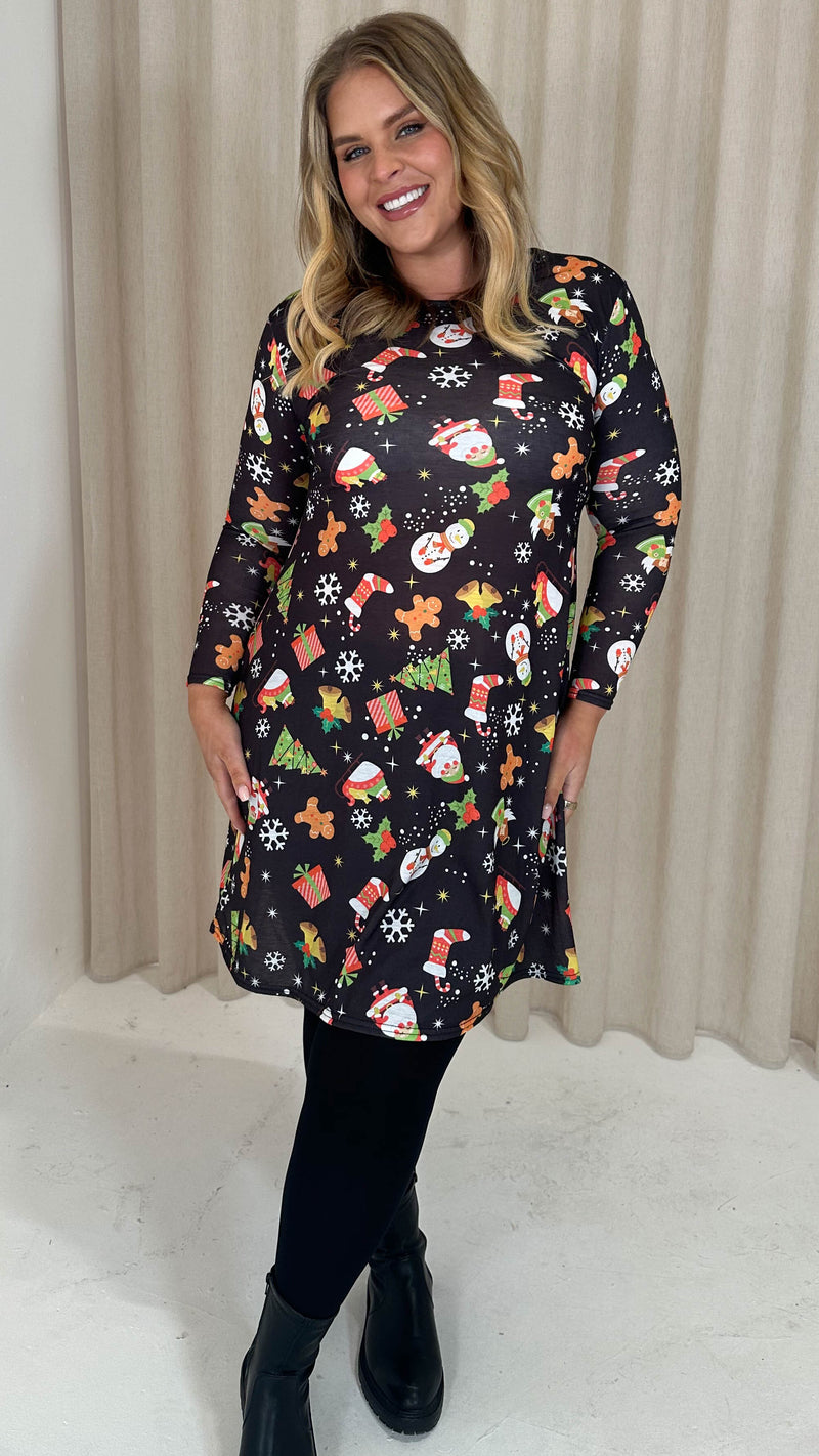 CurveWow Long Sleeve Swing Dress Black Christmas Print