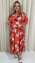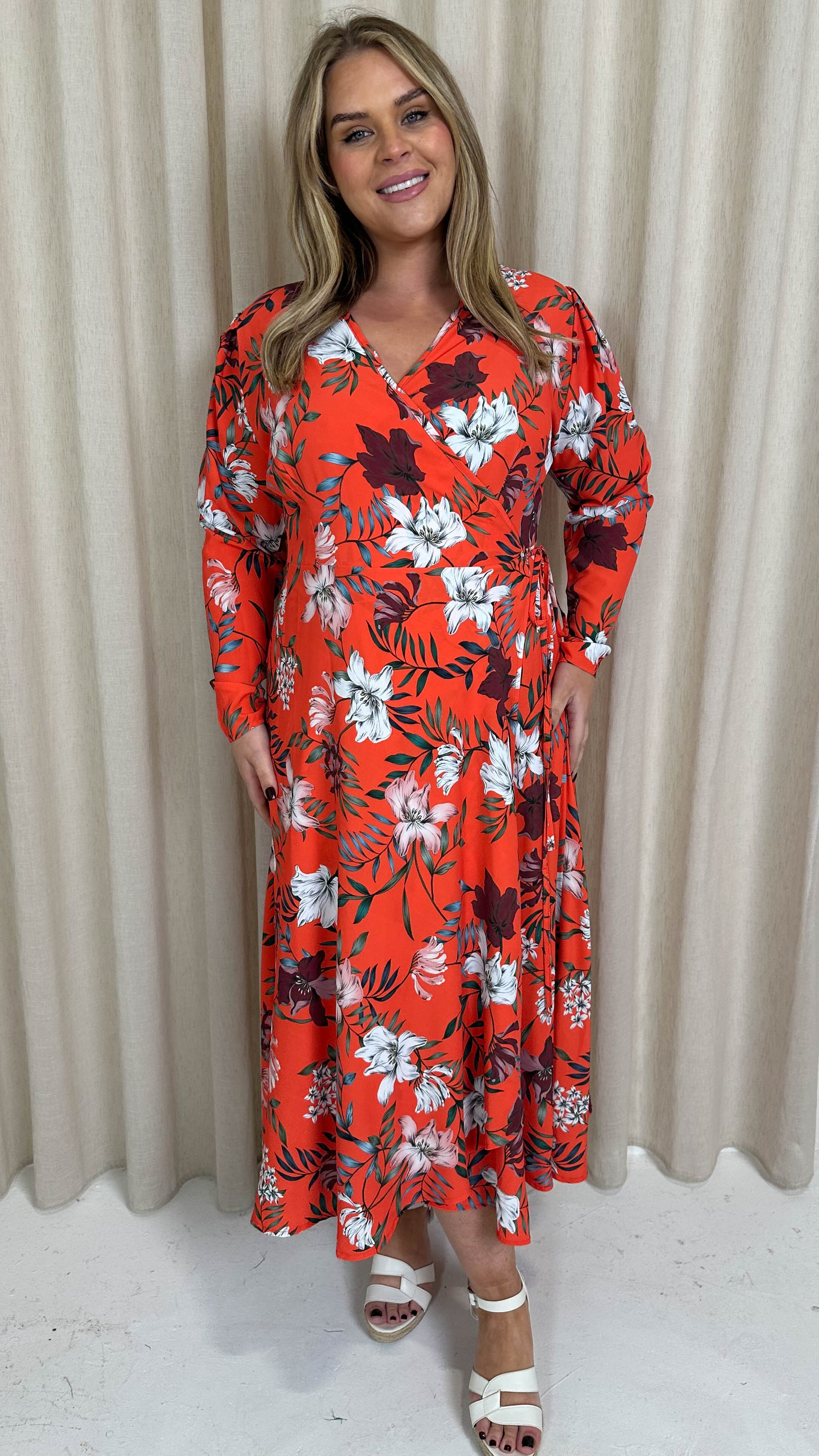 CurveWow Long Sleeve Wrap Dress Red Floral