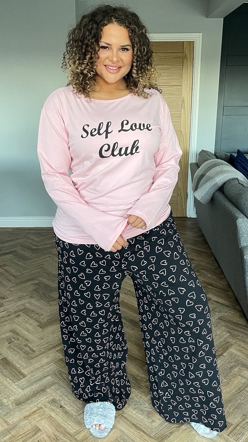 CurveWow Pink Long Sleeved Slogan PJ Set