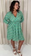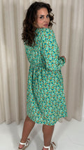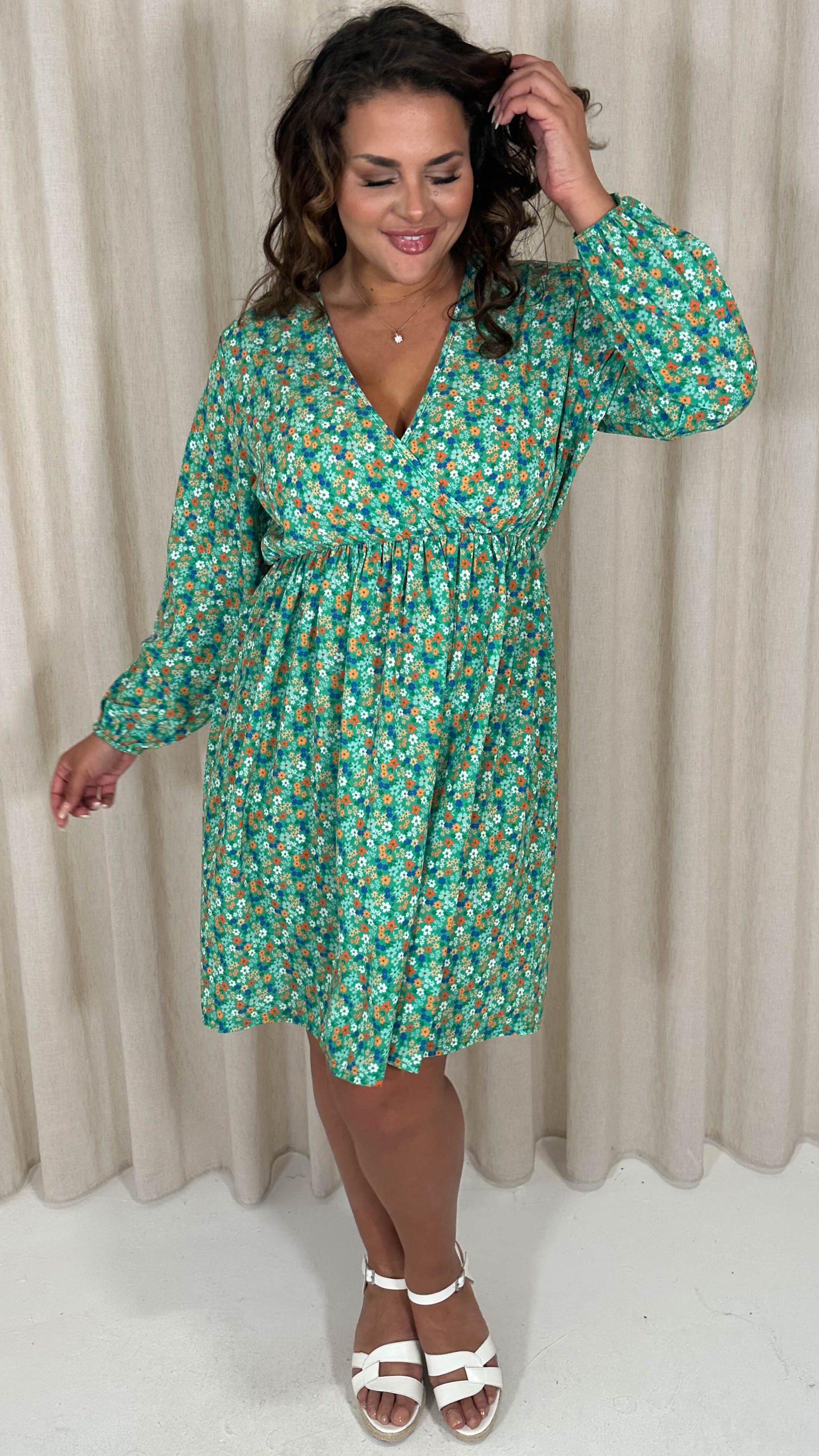 CurveWow Long Sleeve Wrap Mini Dress Green Ditsy Floral