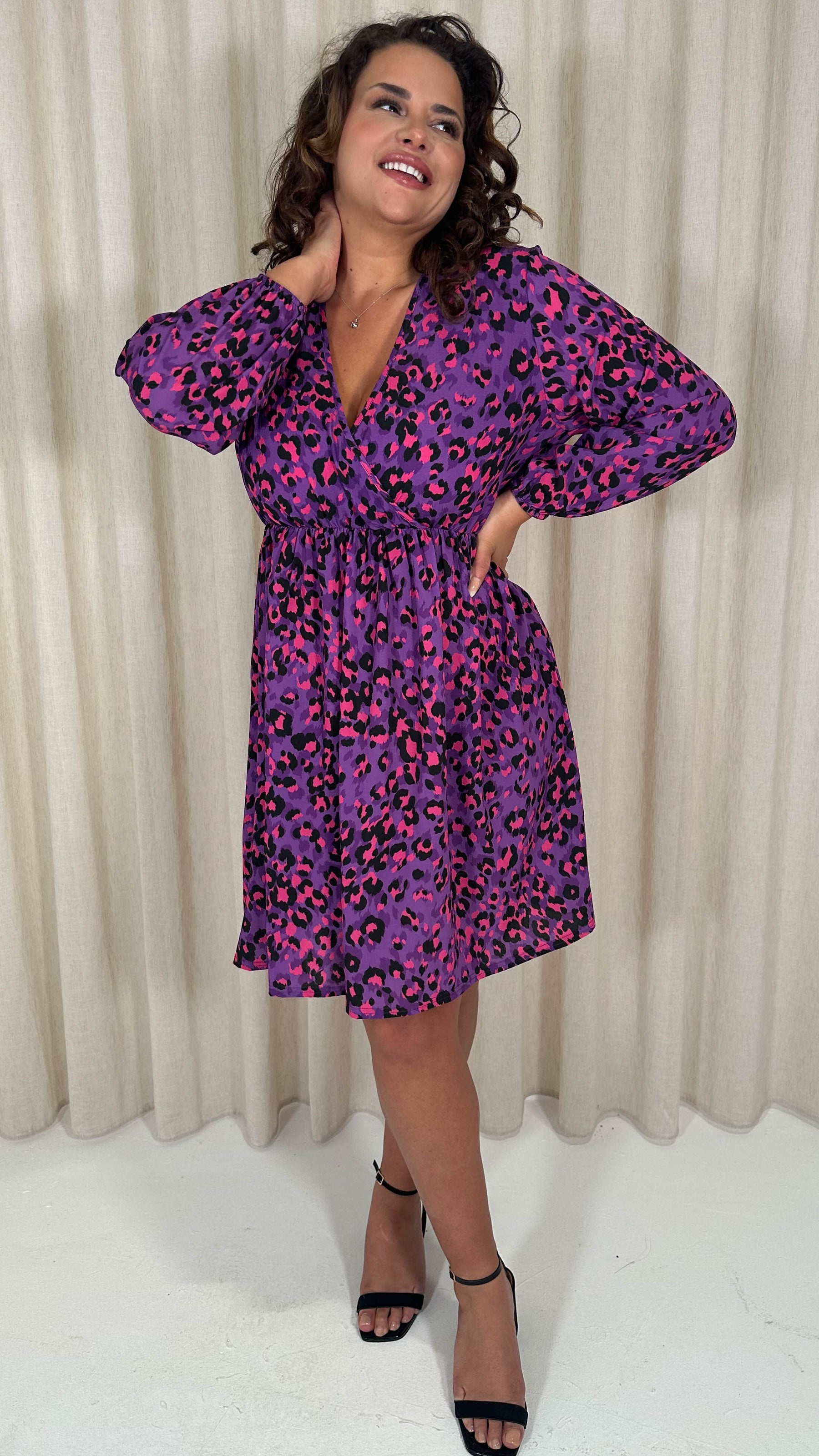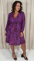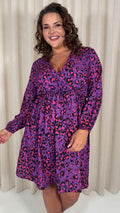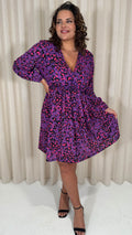 CurveWow Long Sleeve Wrap Mini Dress Purple Animal
