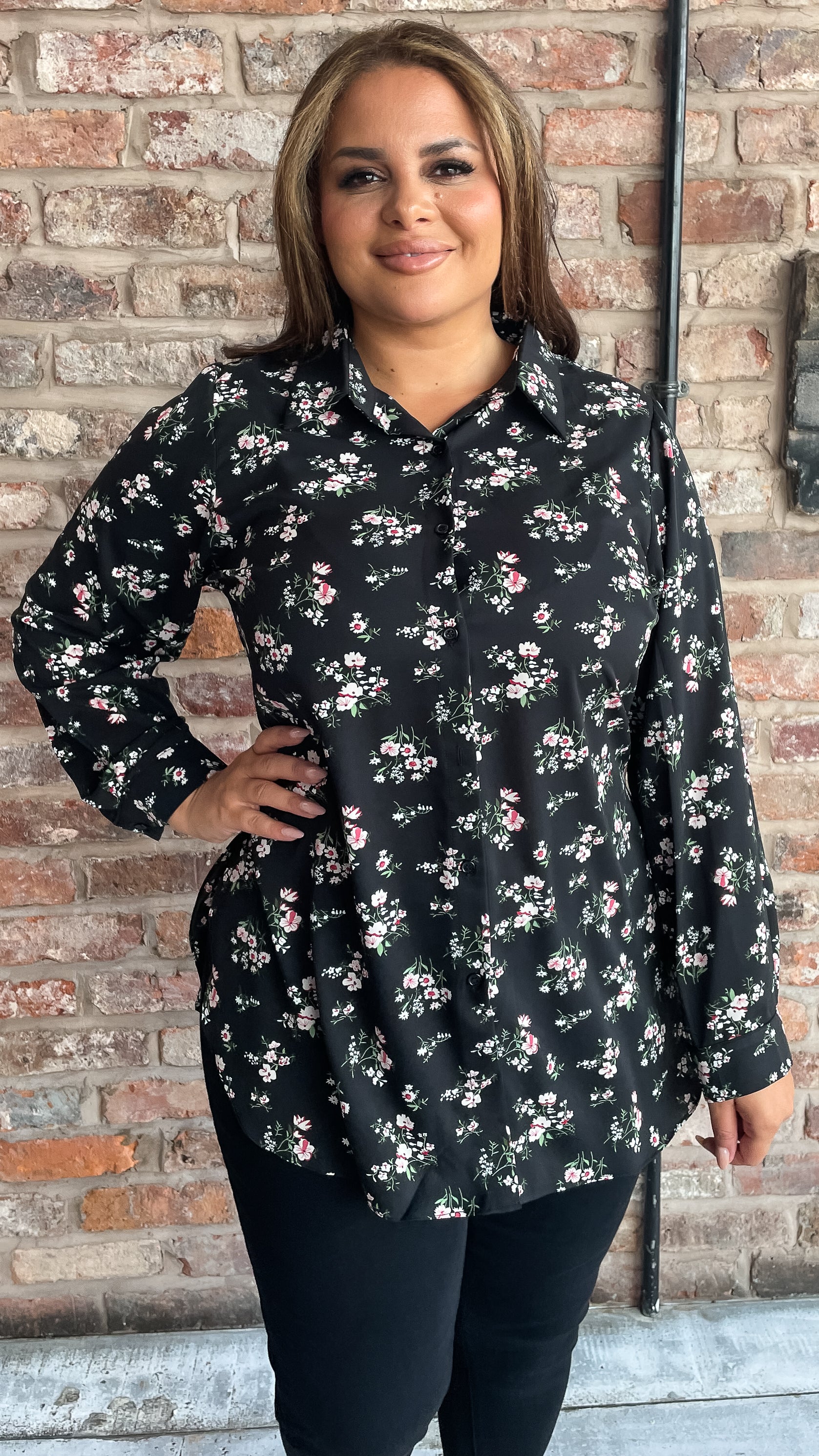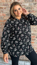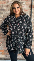 CurveWow Longline Shirt Floral Print Black