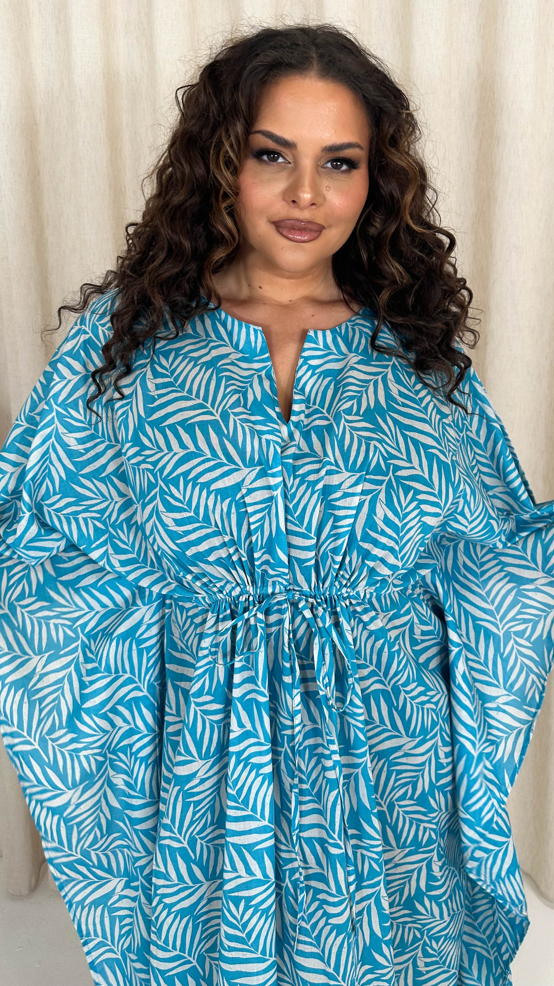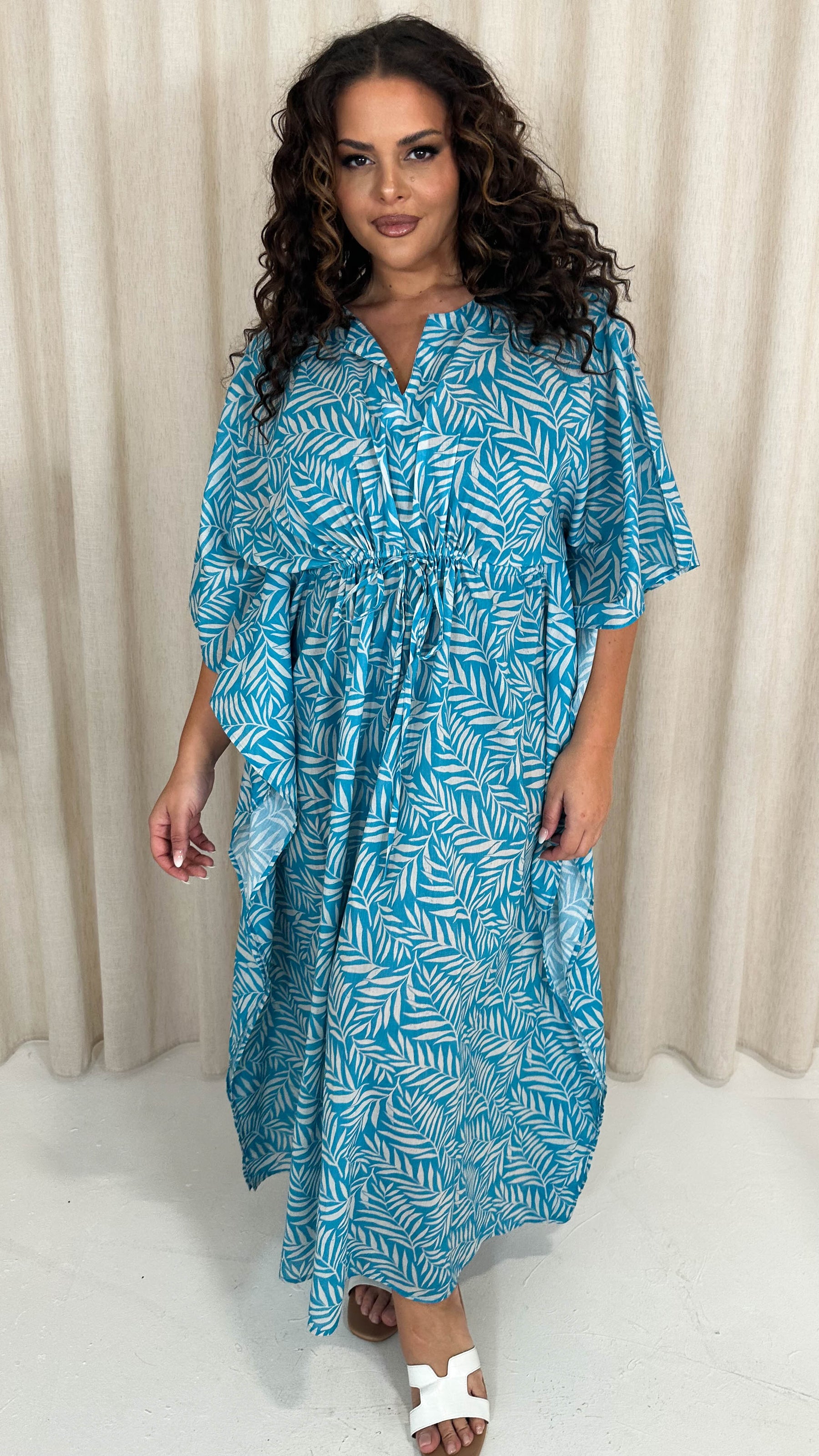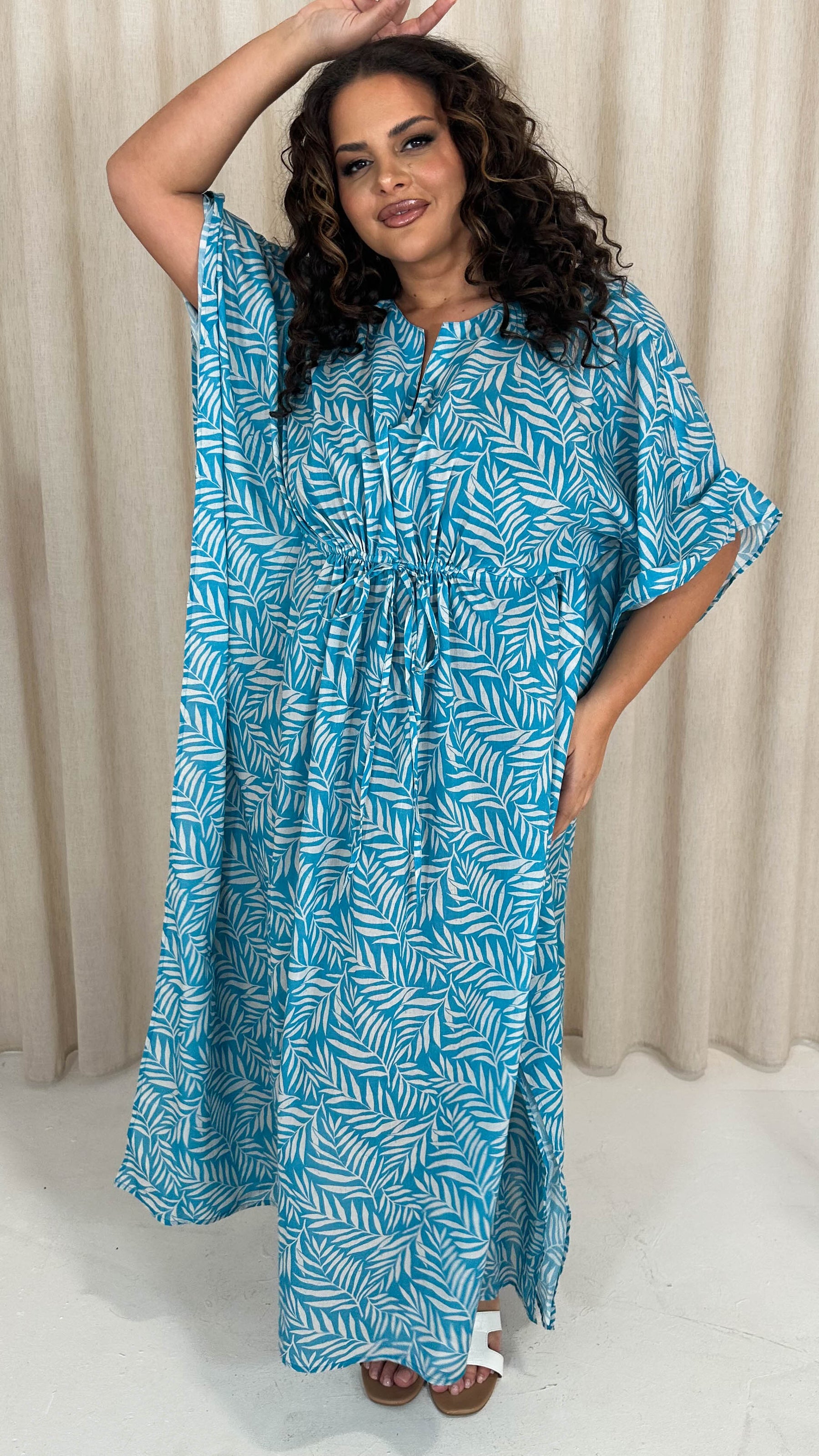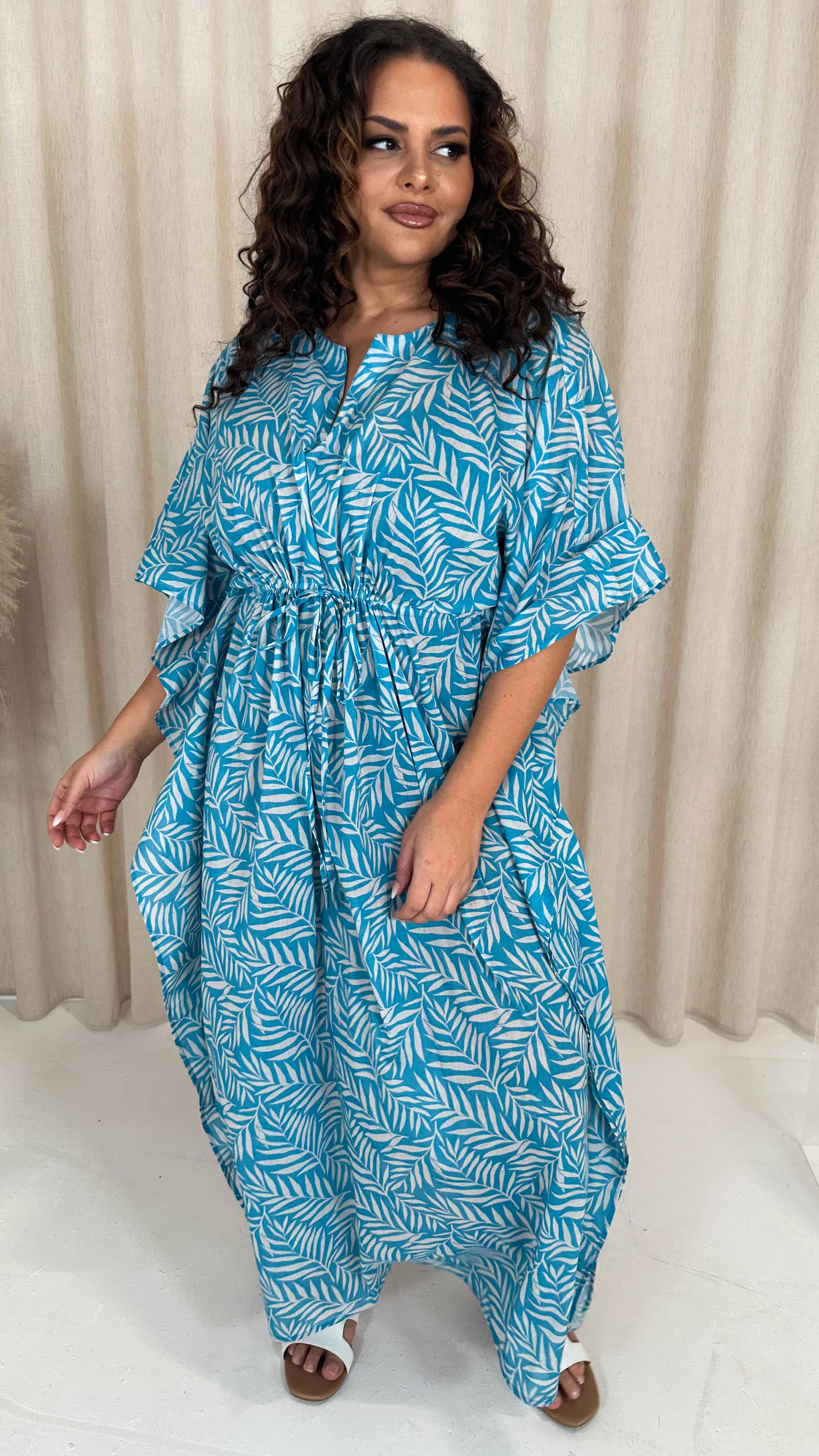 CurveWow Cotton Maxi Kaftan Blue Leaf