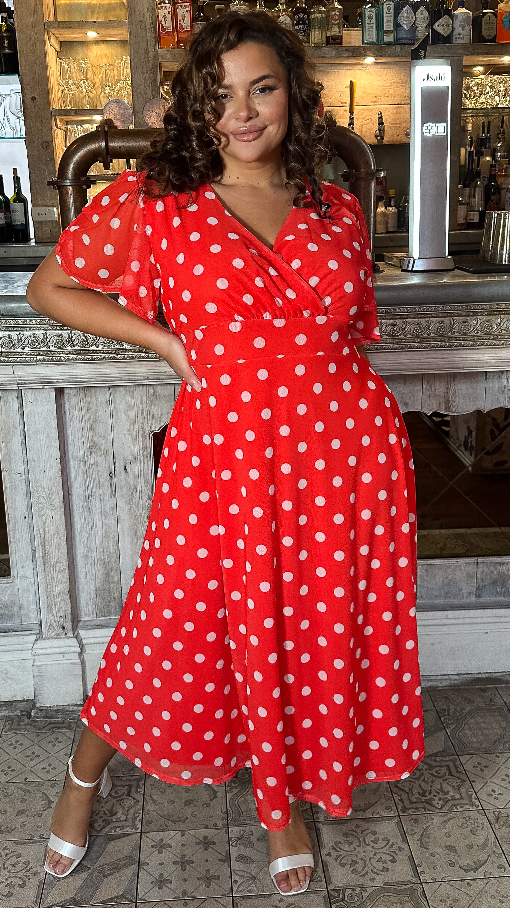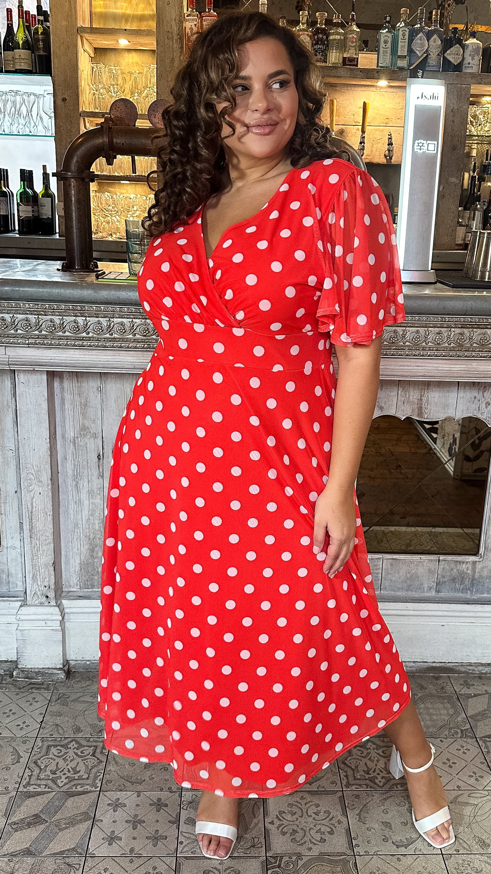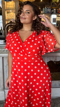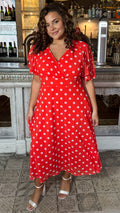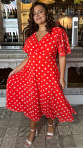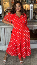 CurveWow Mesh Angel Sleeve Dress Bright Red Spot