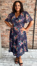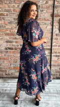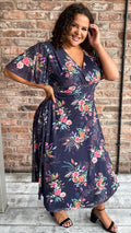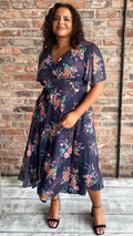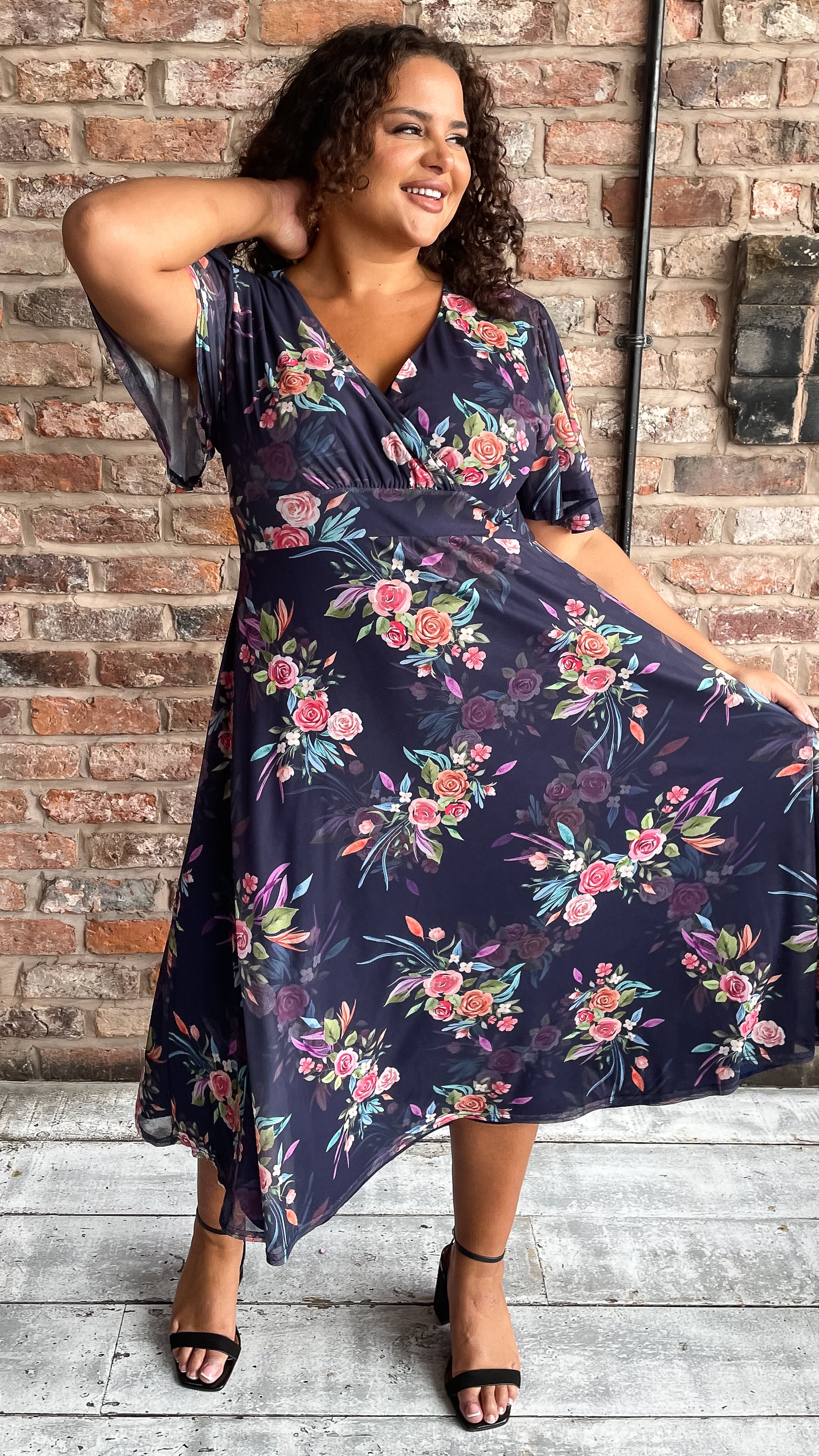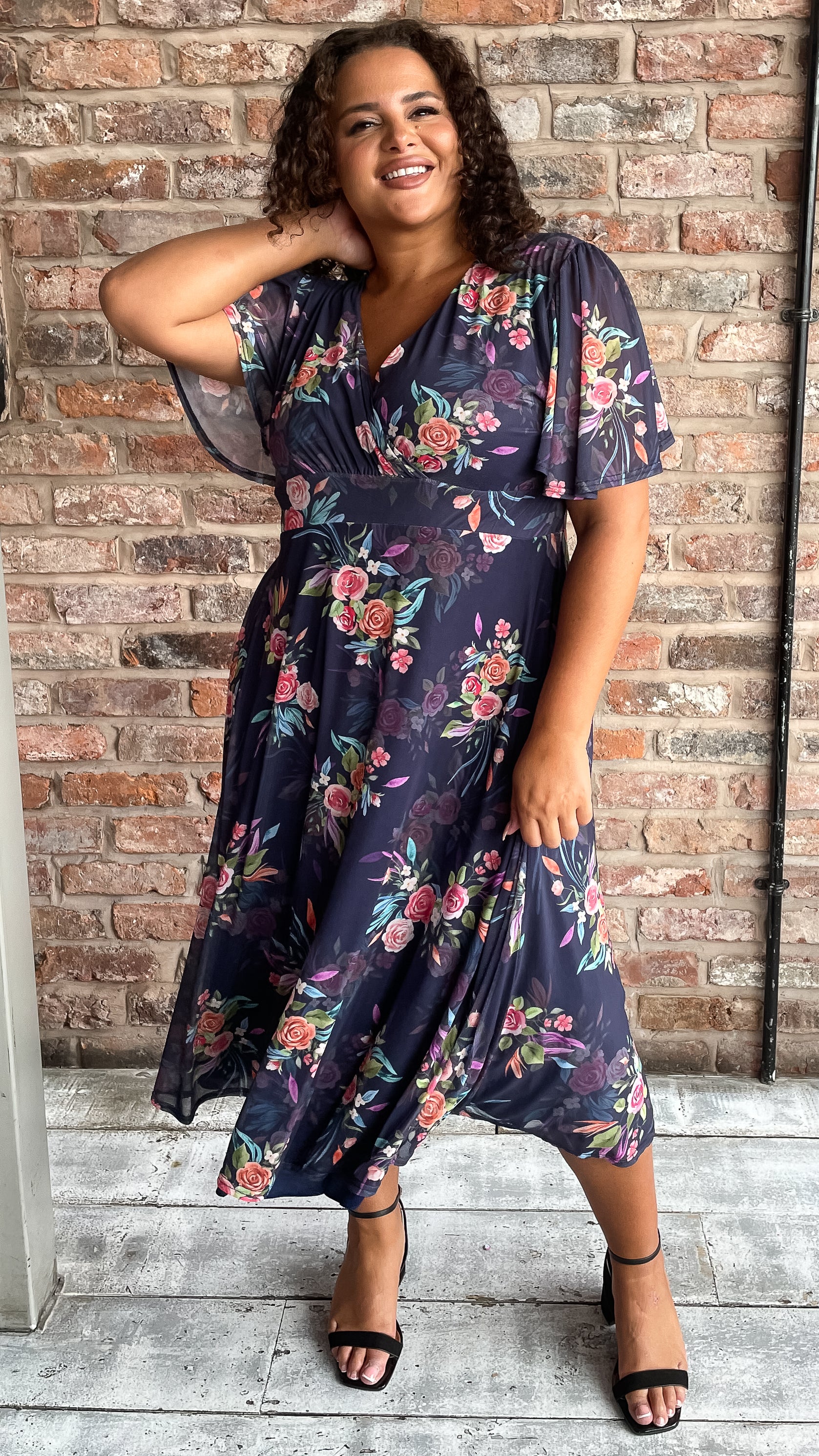CurveWow Mesh Angel Sleeve Dress Navy Multi Floral