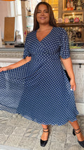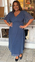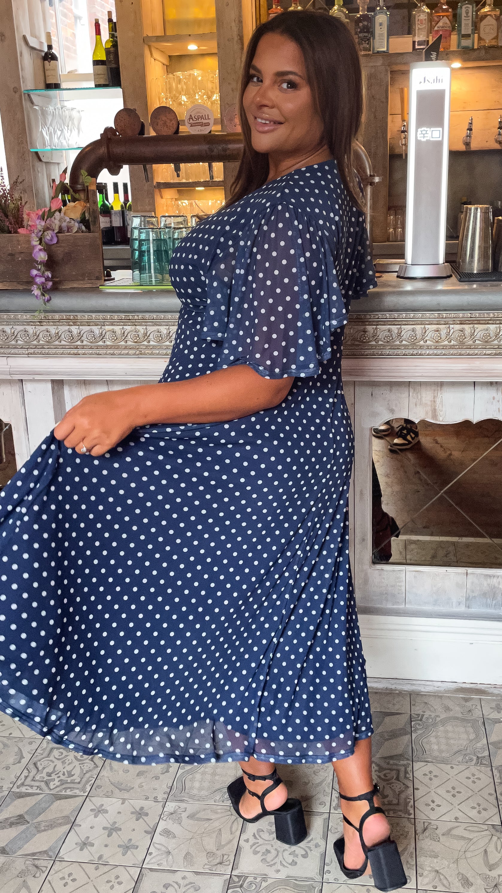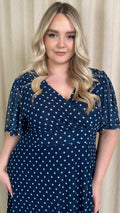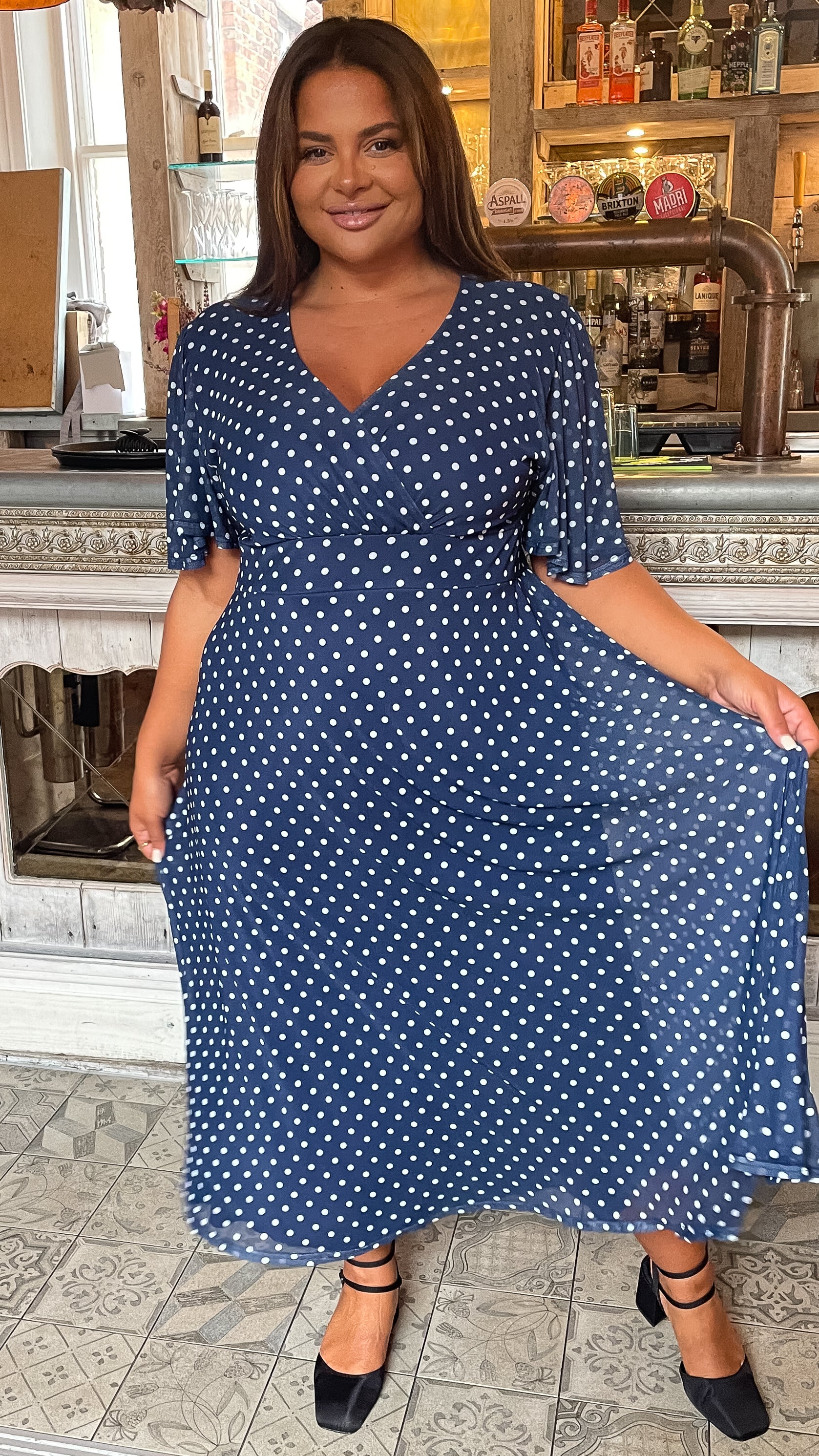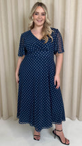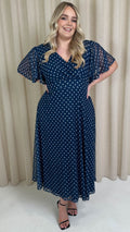 CurveWow Mesh Angel Sleeve Dress Navy Spot