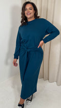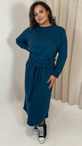 CurveWow Midi Jumper Dress With Tie Waist Dark Teal