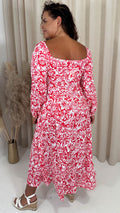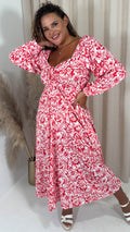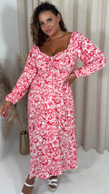 CurveWow Milkmaid Maxi Dress Red Paisley