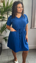 CurveWow Mini T-Shirt Dress With Drawstring Blue