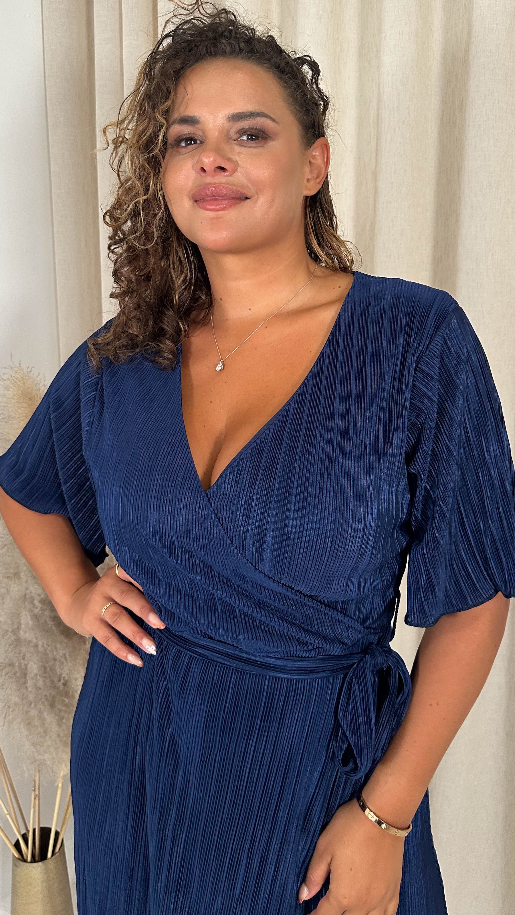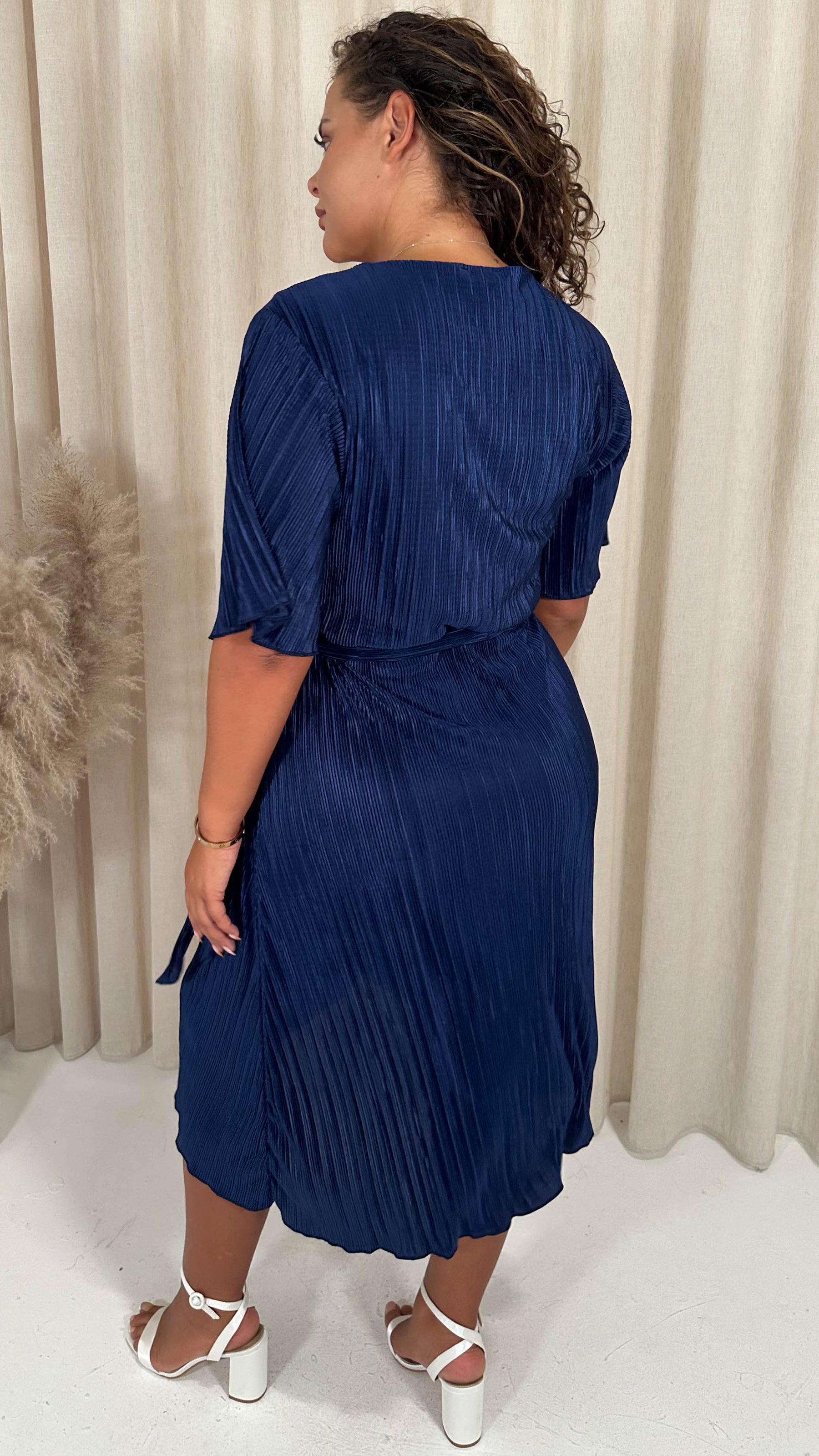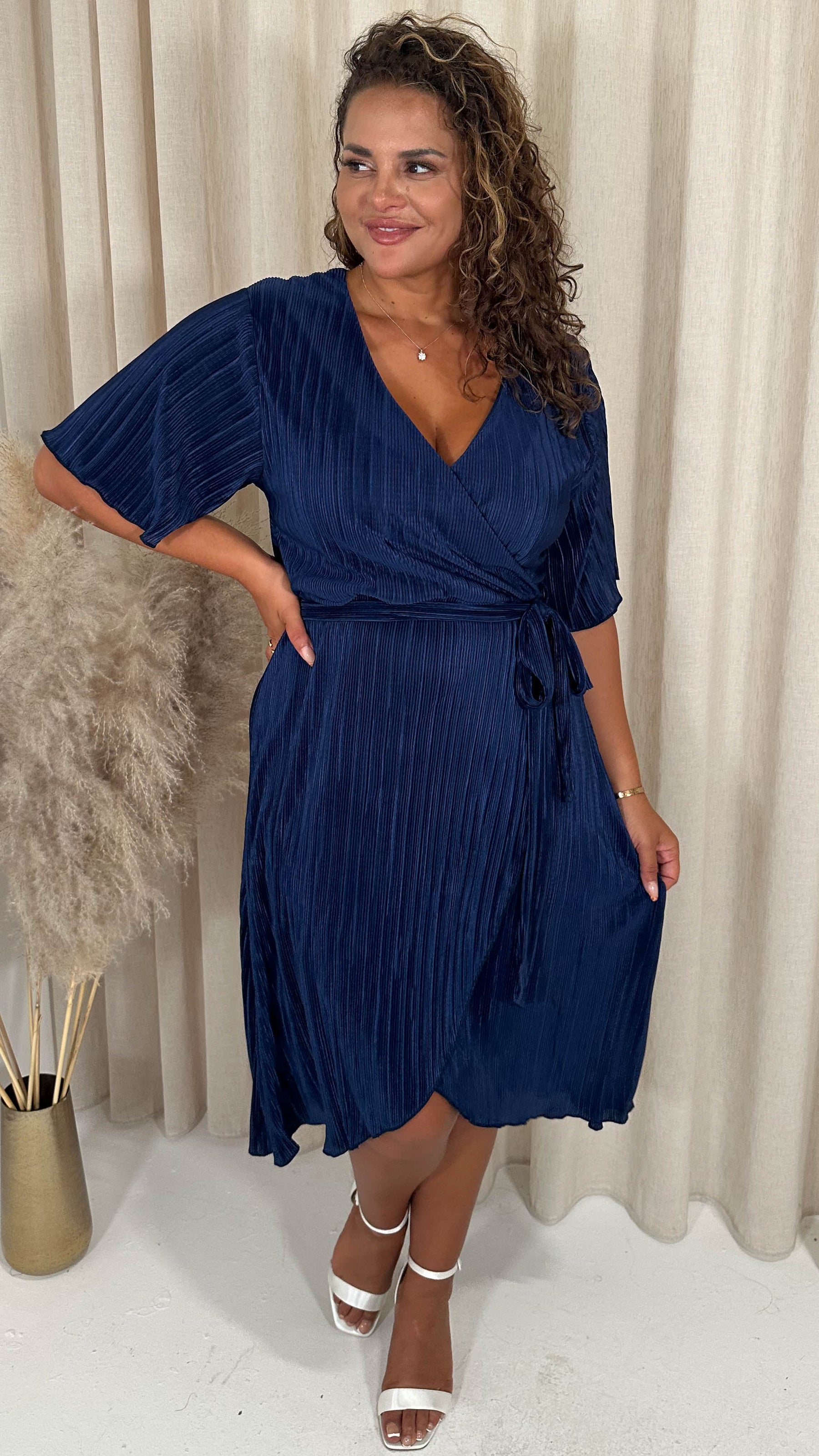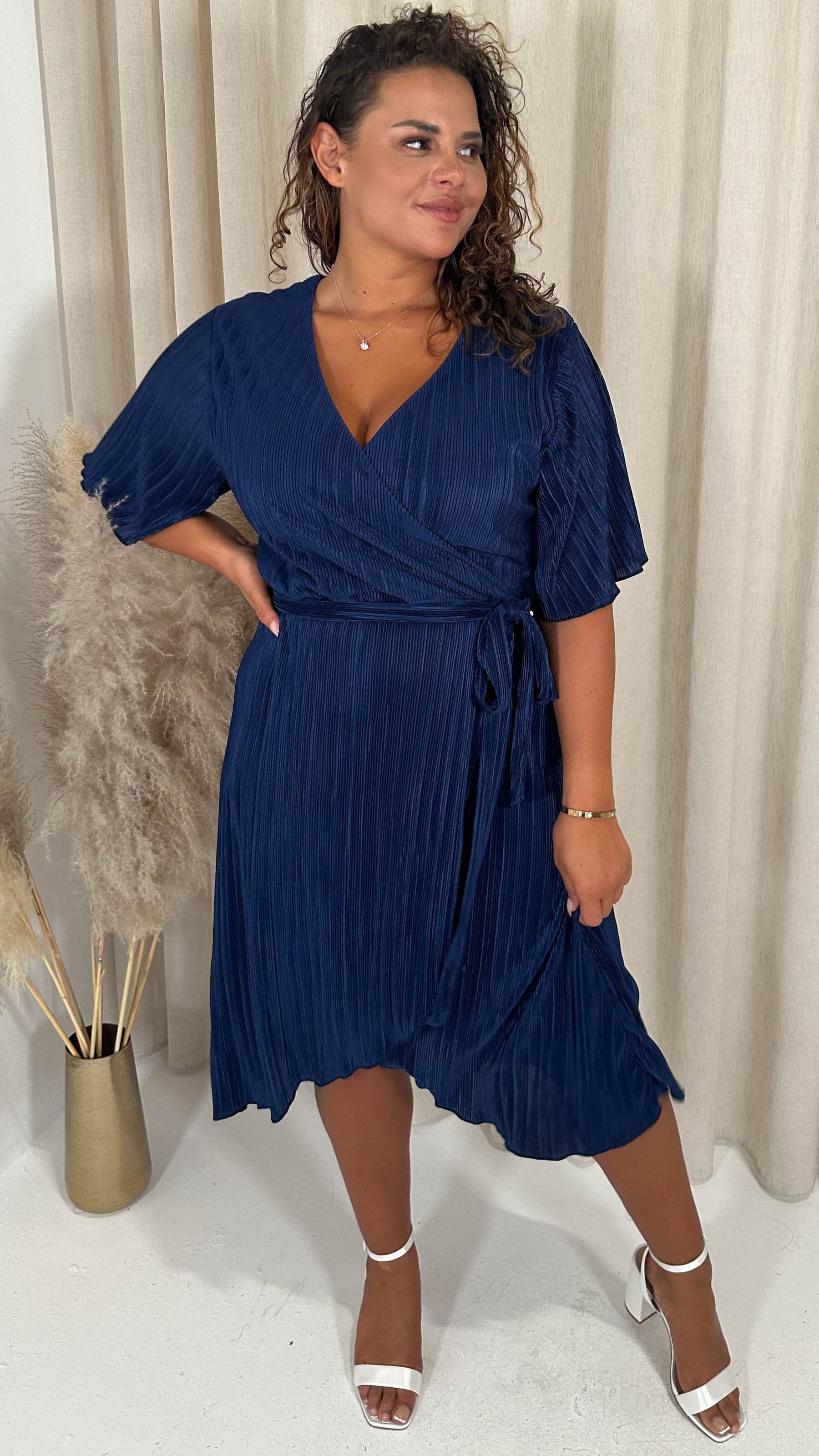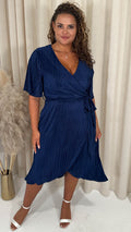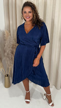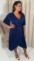 CurveWow Wrap Plisse Dress Navy