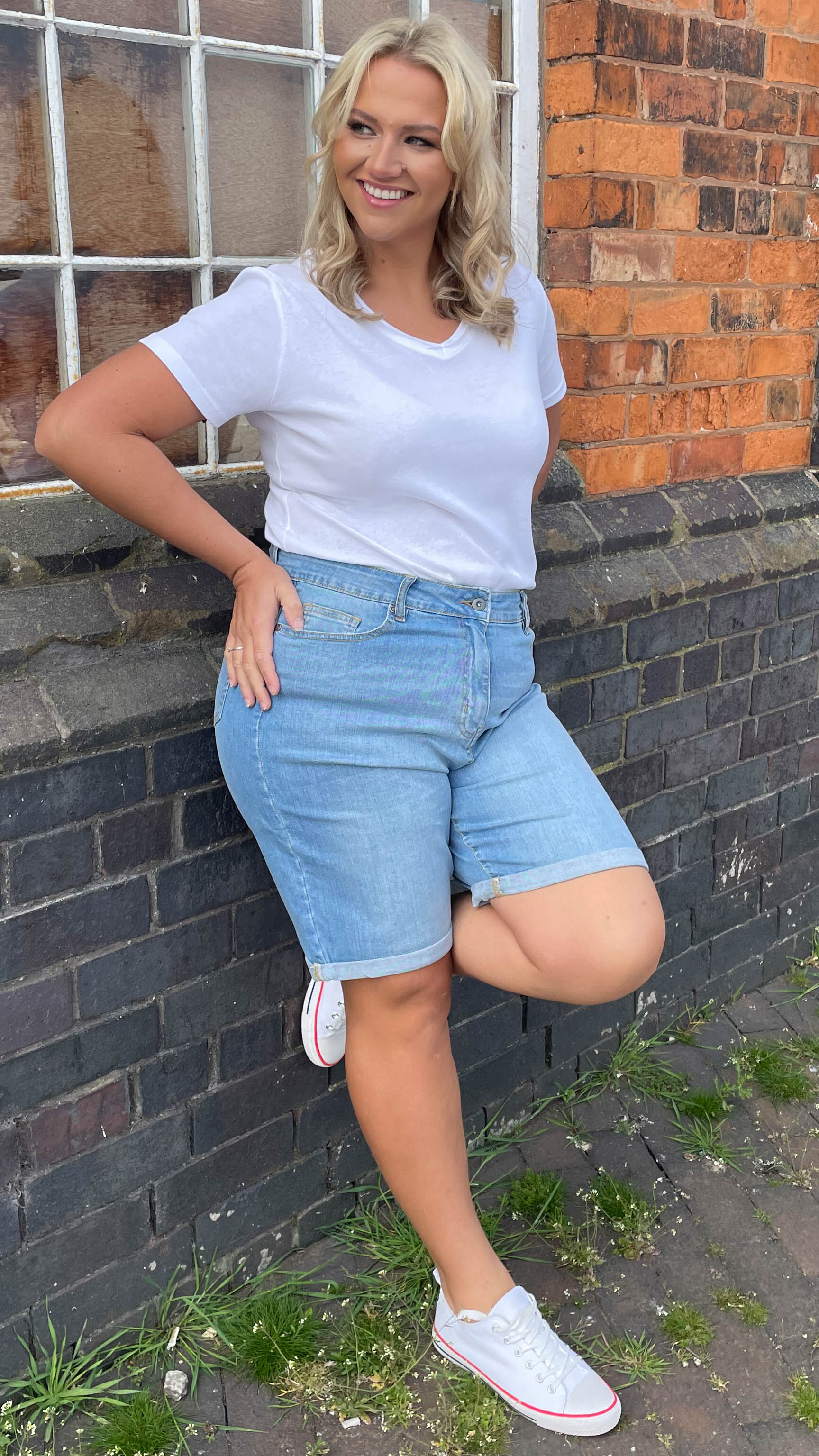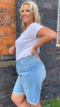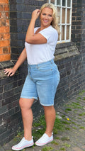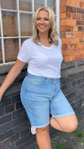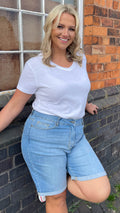 CurveWow Mom Denim Shorts - Light Blue Wash