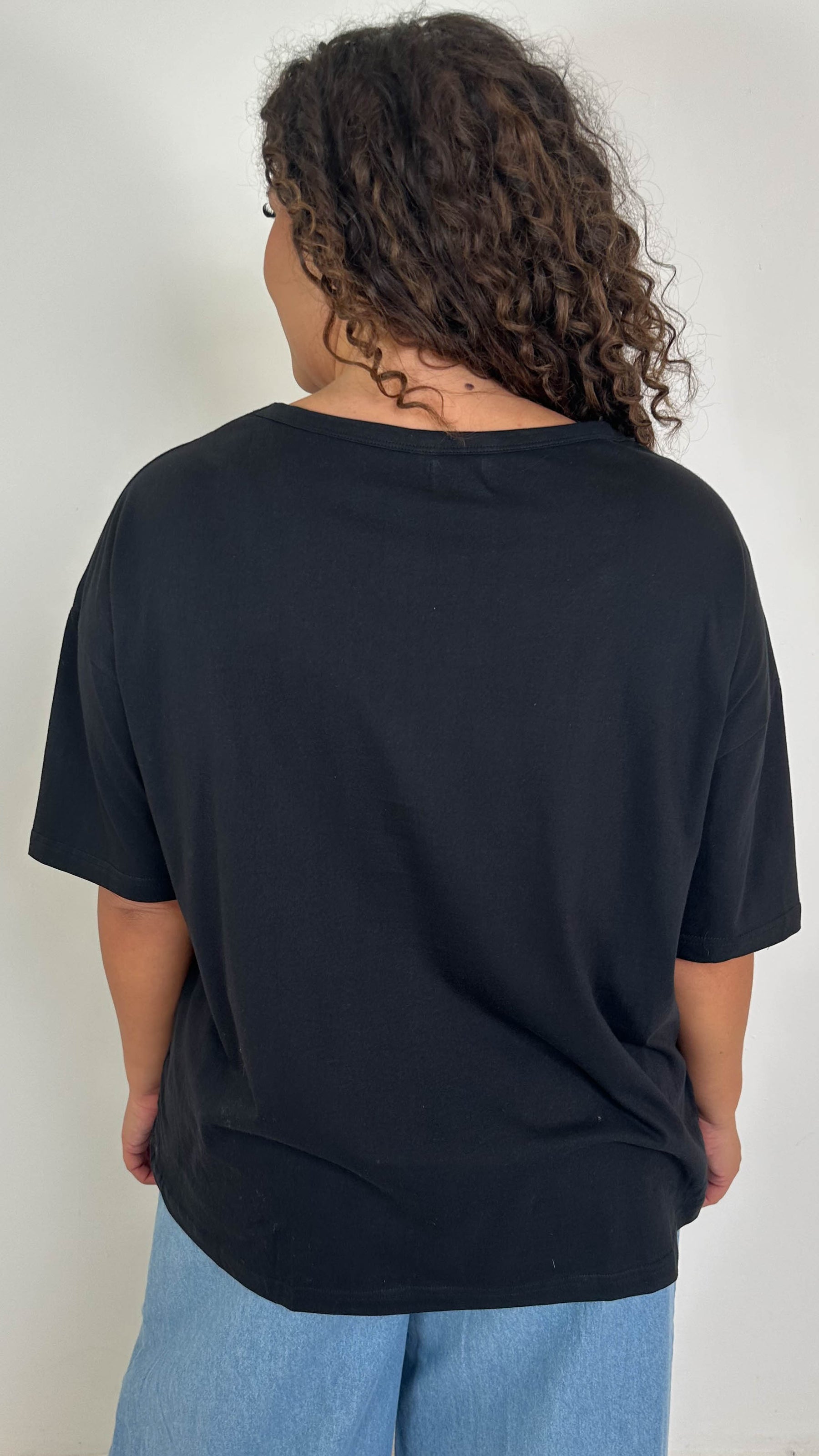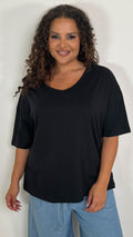 CurveWow Oversized V Neck Basic T-Shirt Black