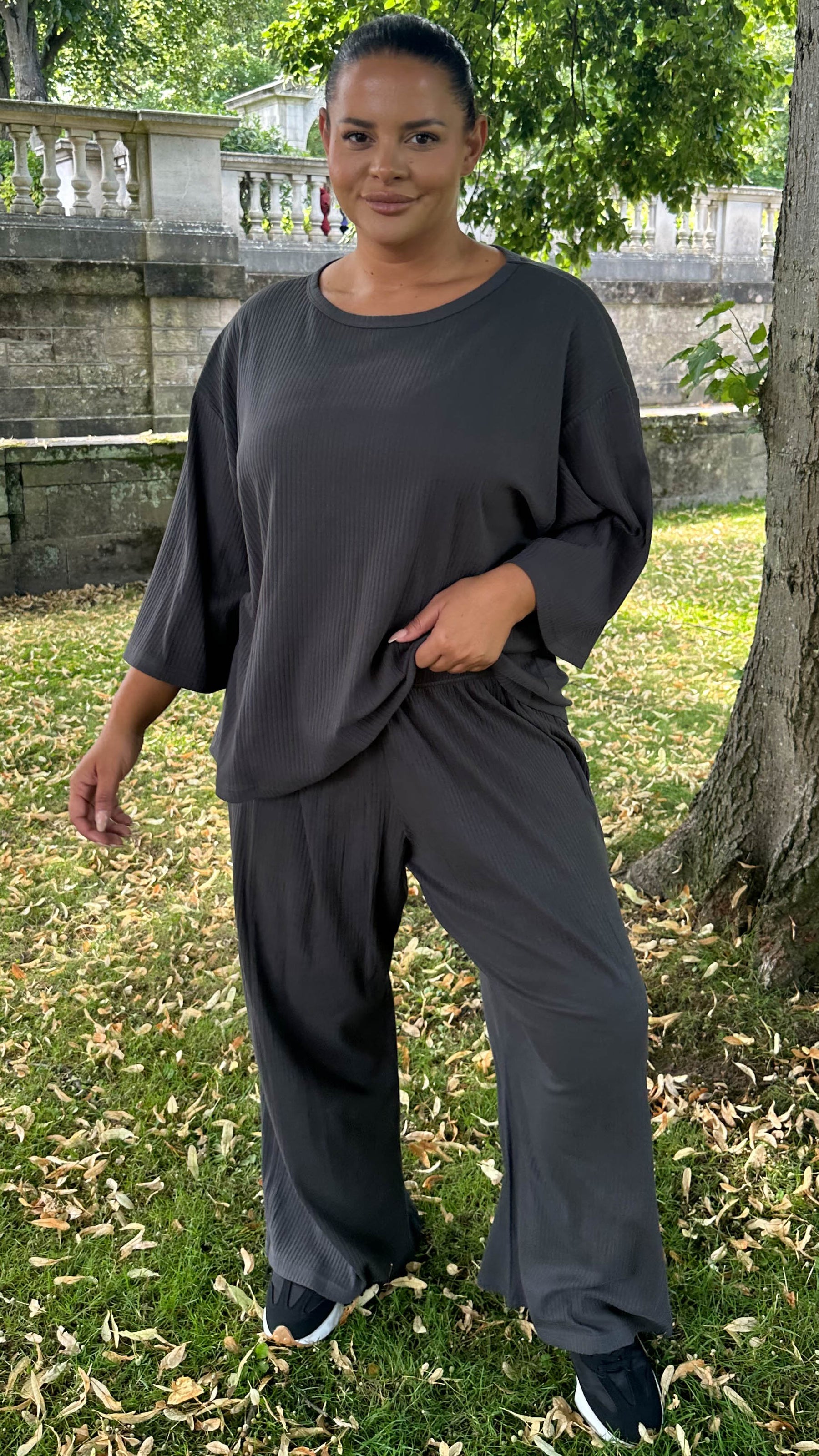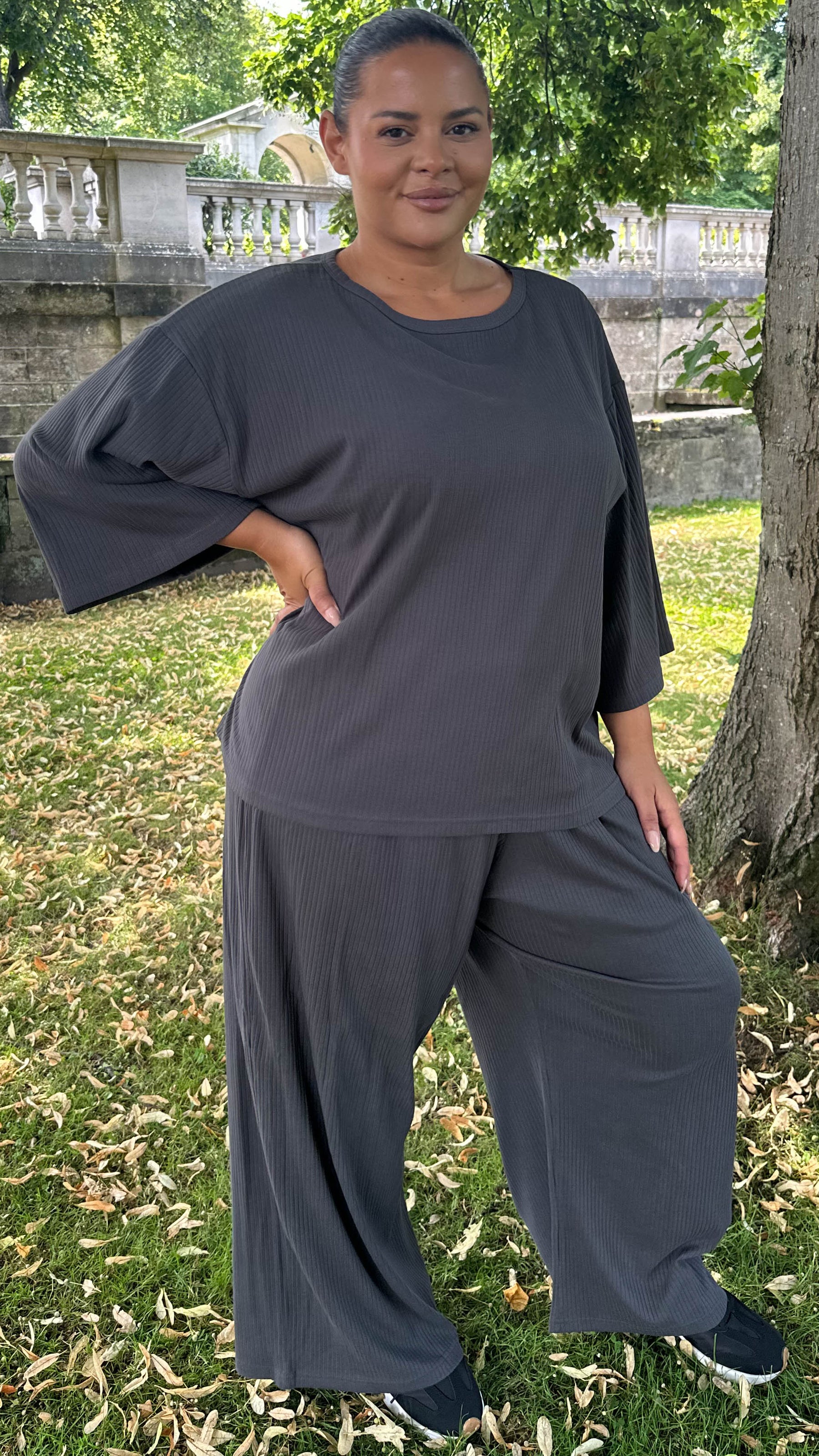 CurveWow Oversized Wide Leg Lounge Set Charcoal