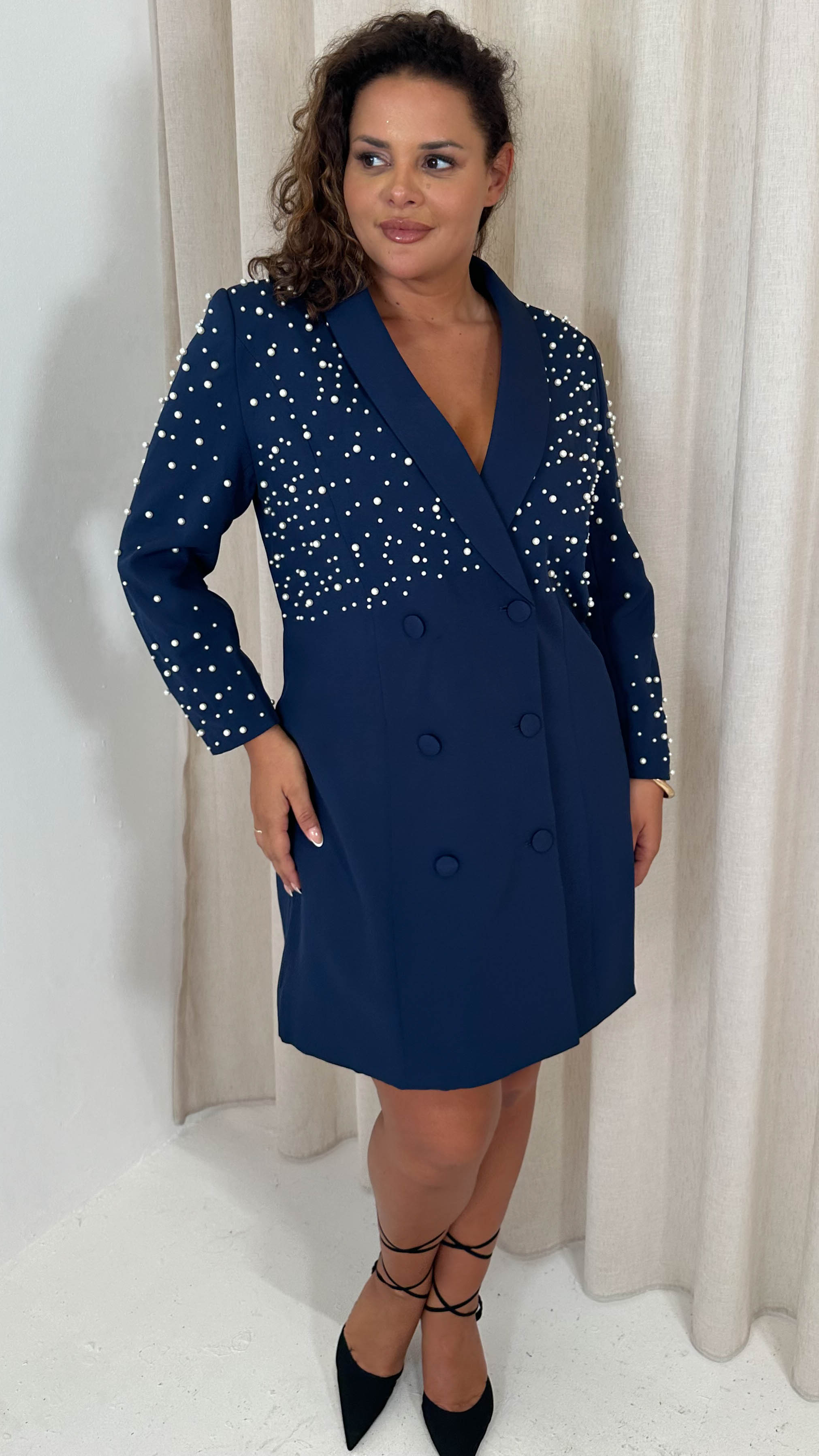 CurveWow Pearl Shoulder Blazer Dress Navy