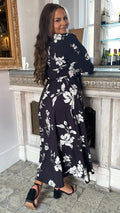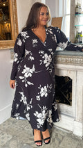 CurveWow Petite Long Sleeve Wrap Dress Black White Floral