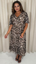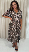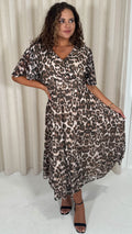 CurveWow Petite Mesh Angel Sleeve Dress Leopard