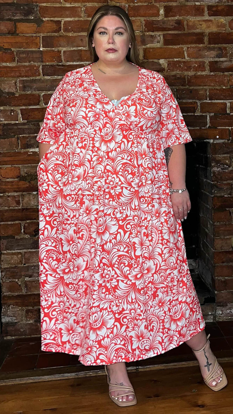CurveWow Petite Wrap Midi Dress Red Paisley
