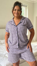 CurveWow Shirt & Shorts PJ Set Lilac Animal Print
