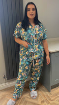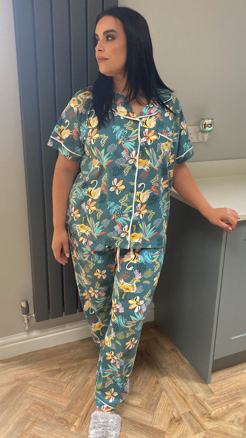 CurveWow Short Sleeve PJ Set Teal With Floral Print