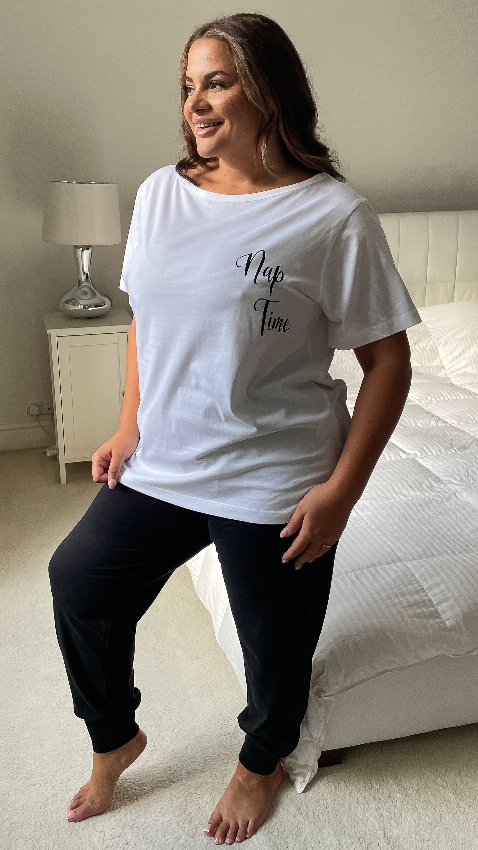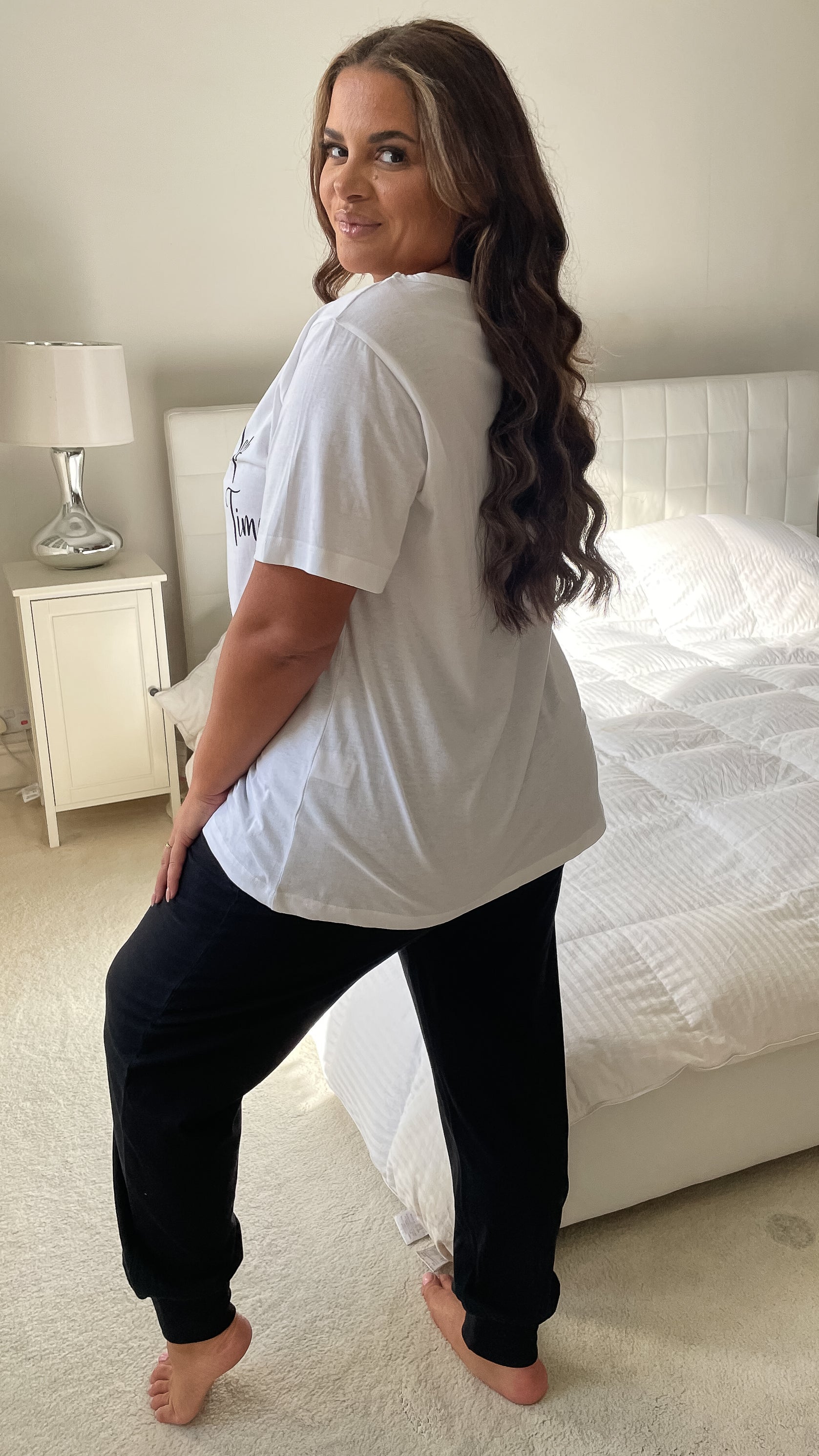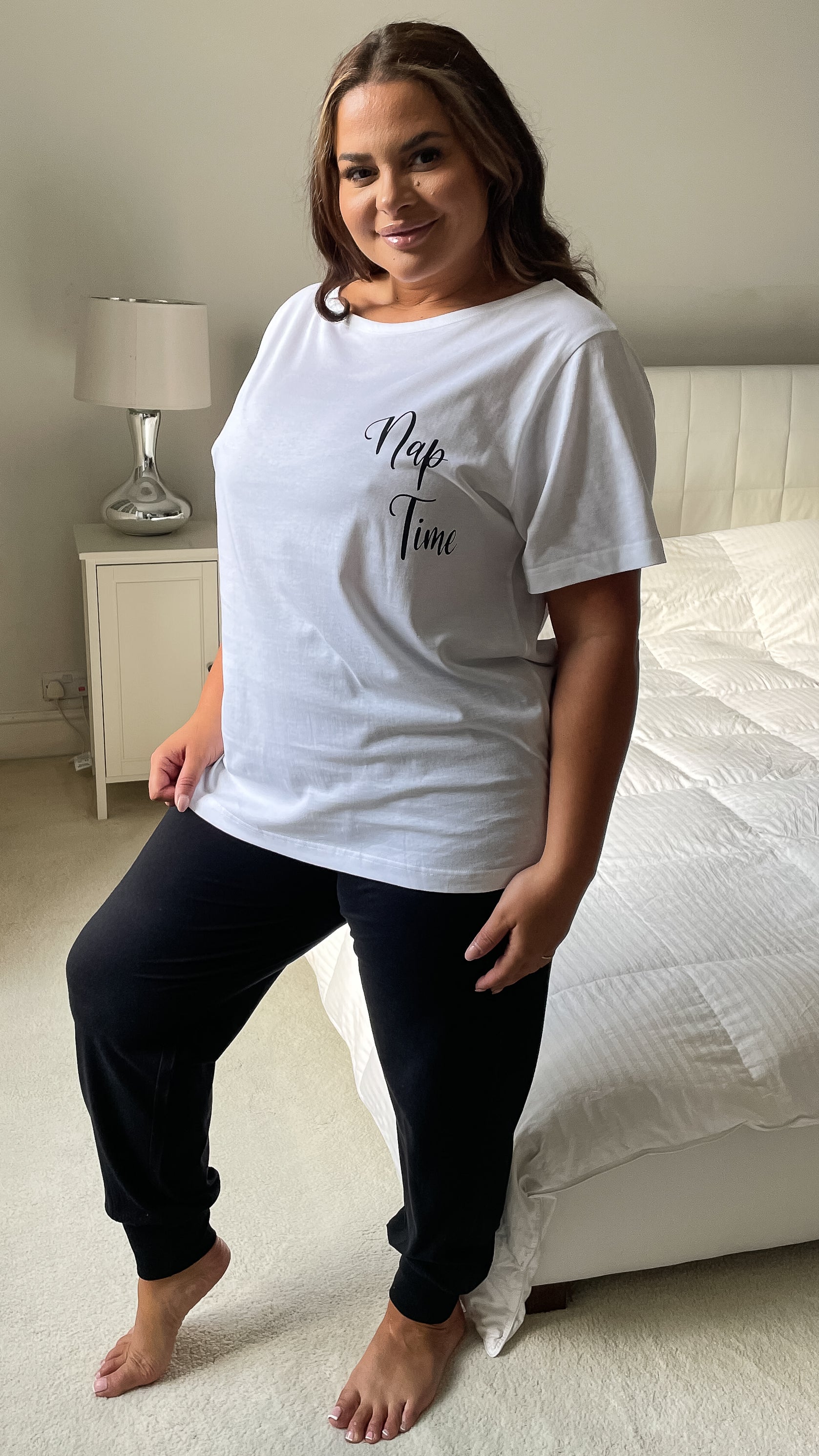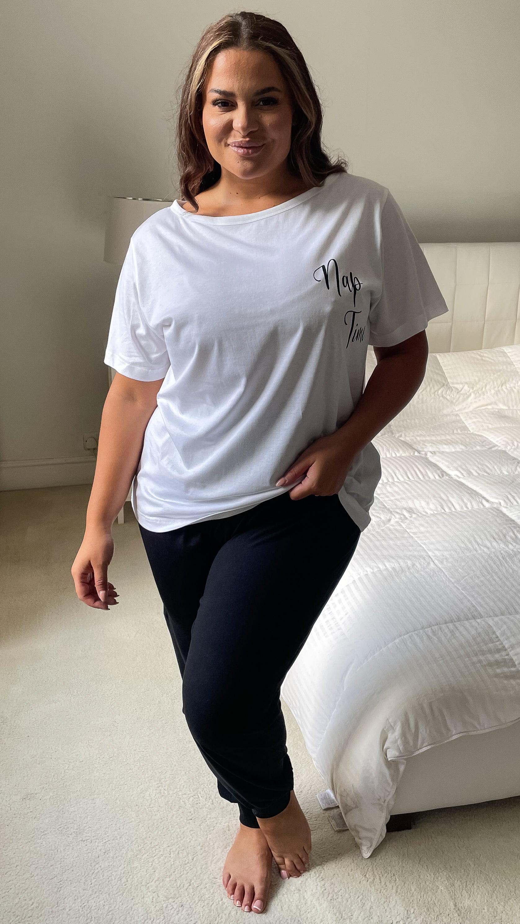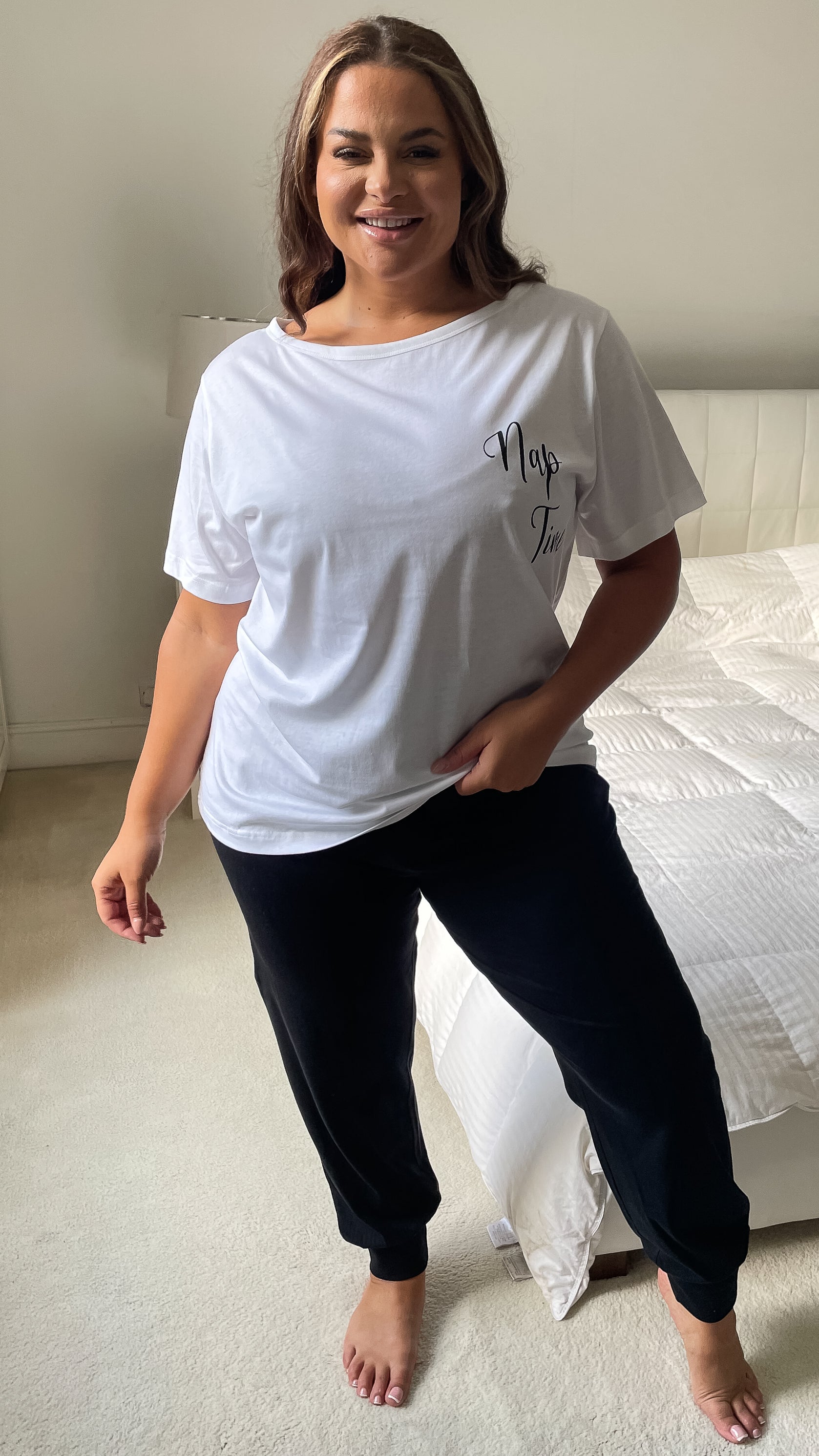 CurveWow 'Nap Time' Short Sleeve PJ Set Black/White