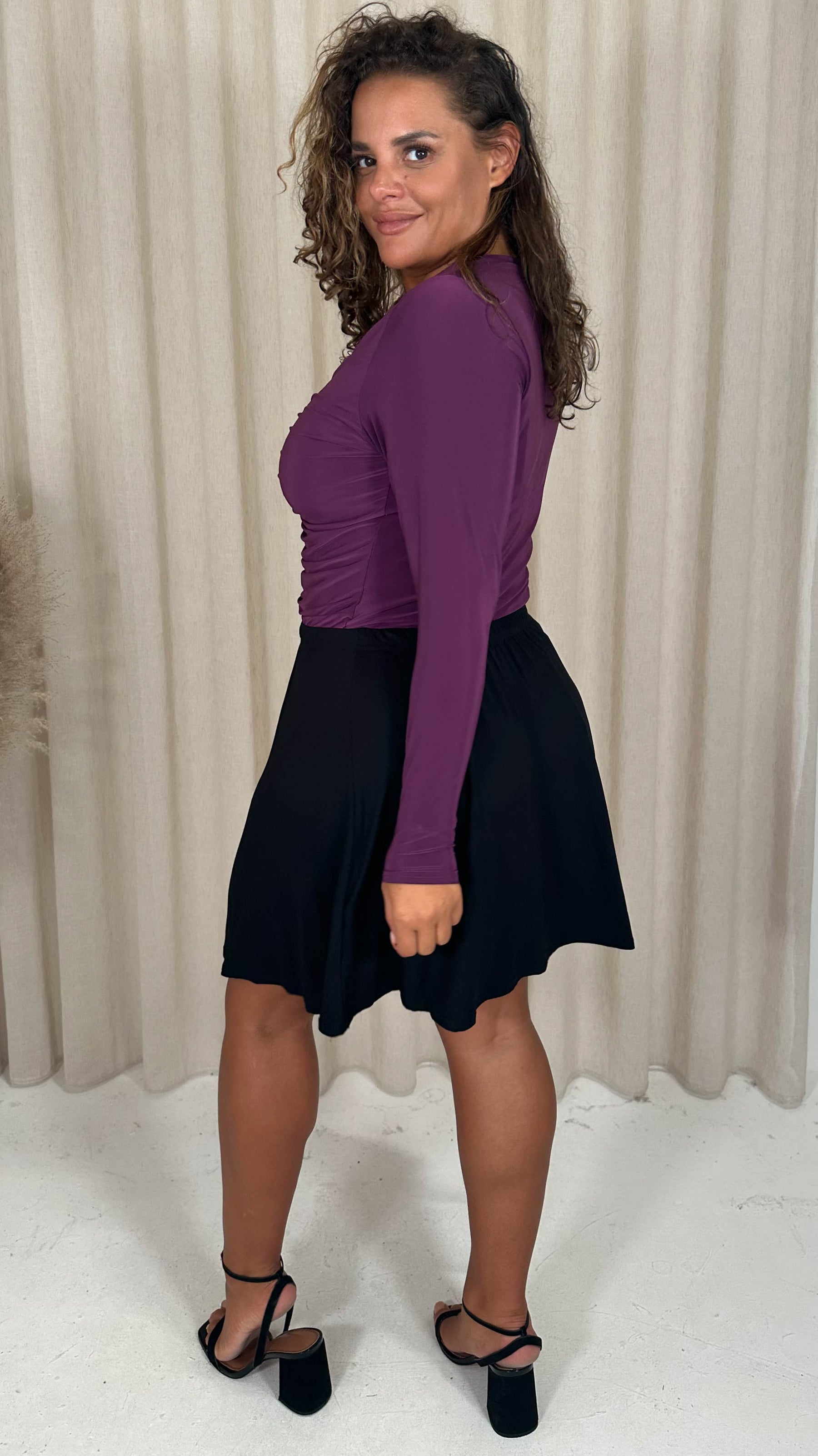 CurveWow Plain Skater Skirt Black