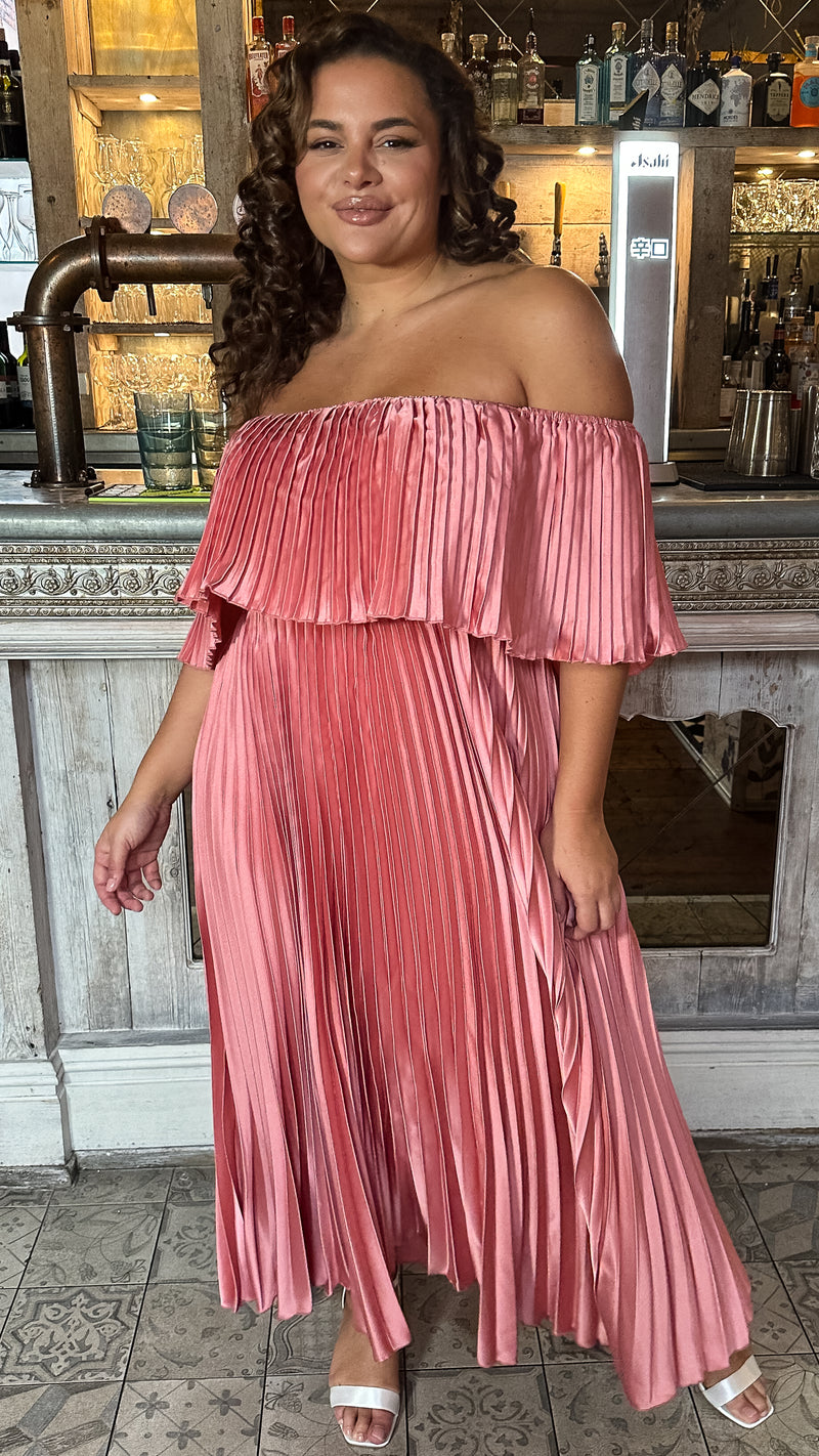 CurveWow Wrap Angel Sleeve Pleated Midi Dress Red Polka Dots