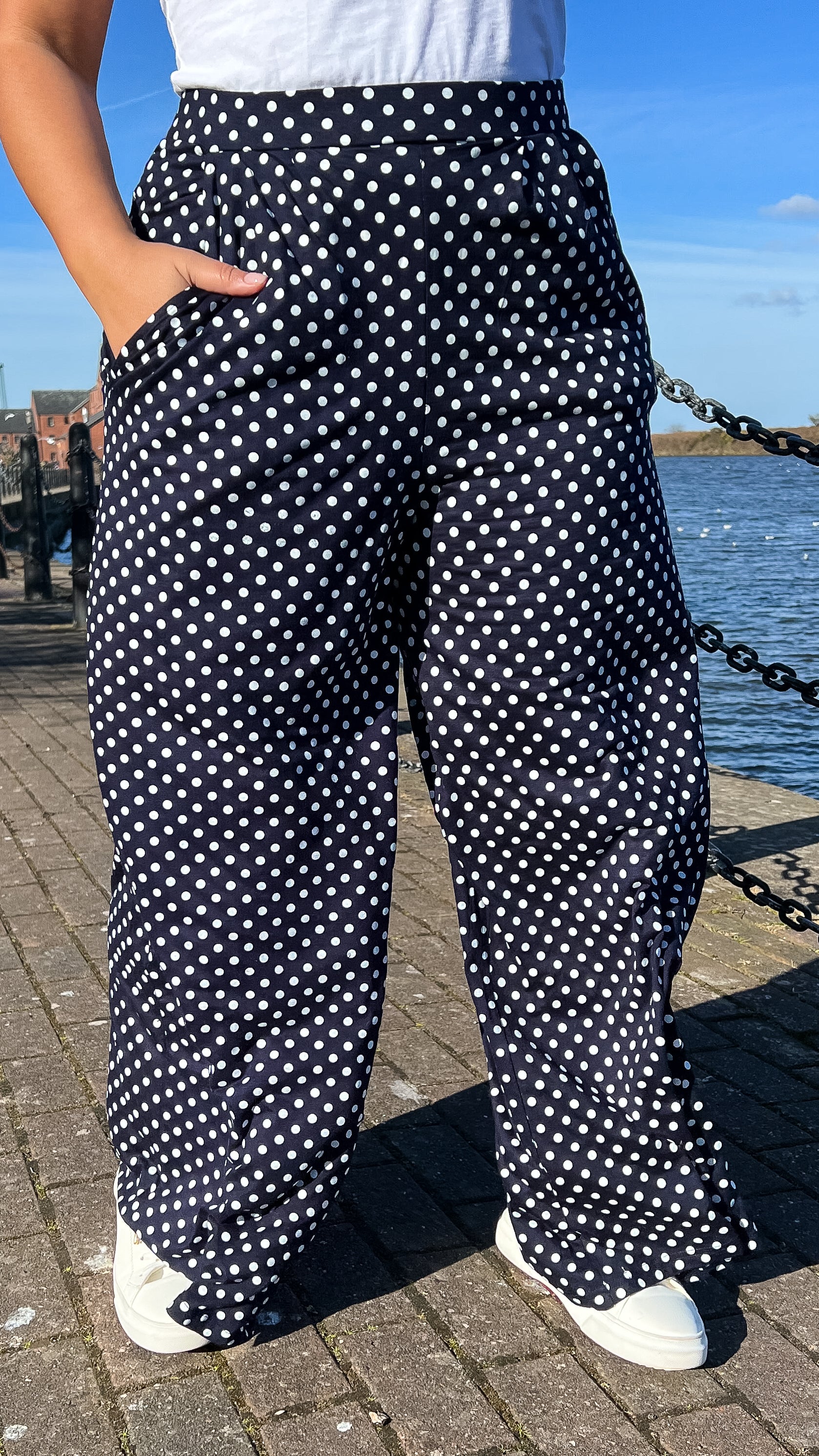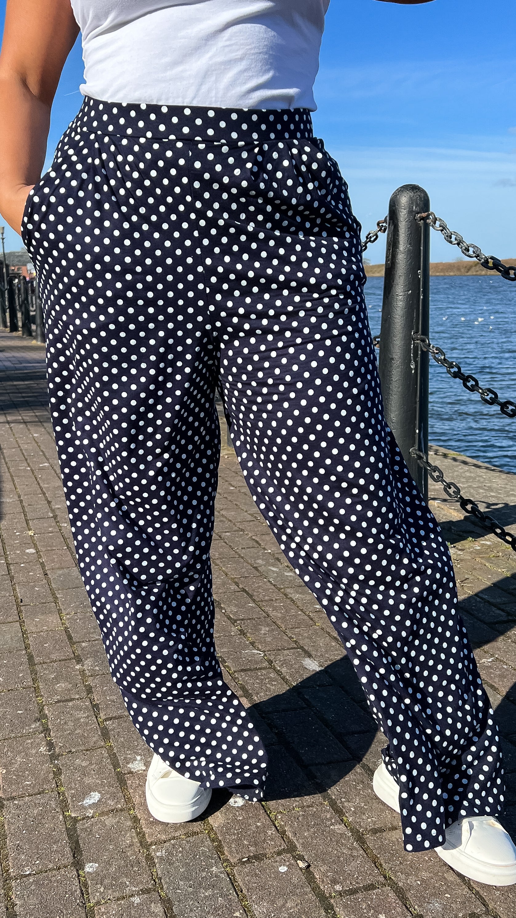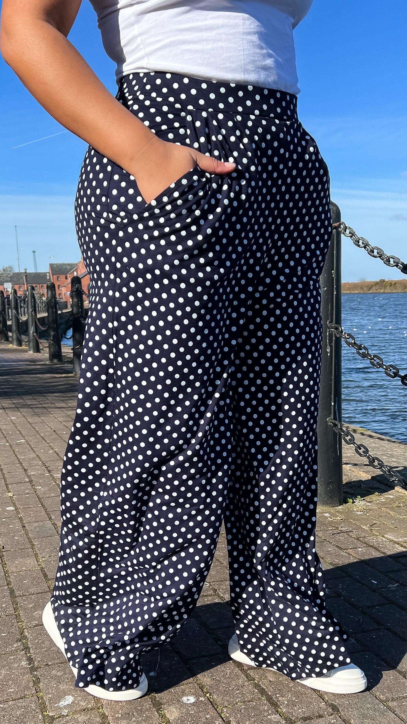 CurveWow Pleated Wide Leg Trousers Navy Ivory Spot