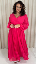 CurveWow Pleated Wrap Maxi Dress Dark Fuchsia